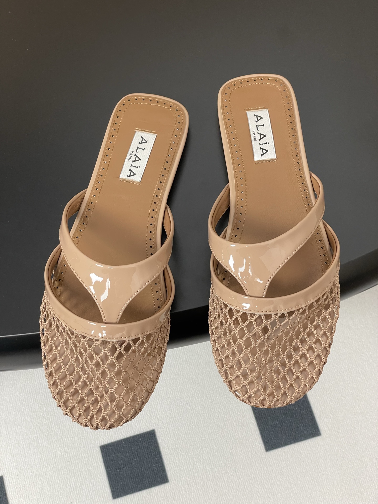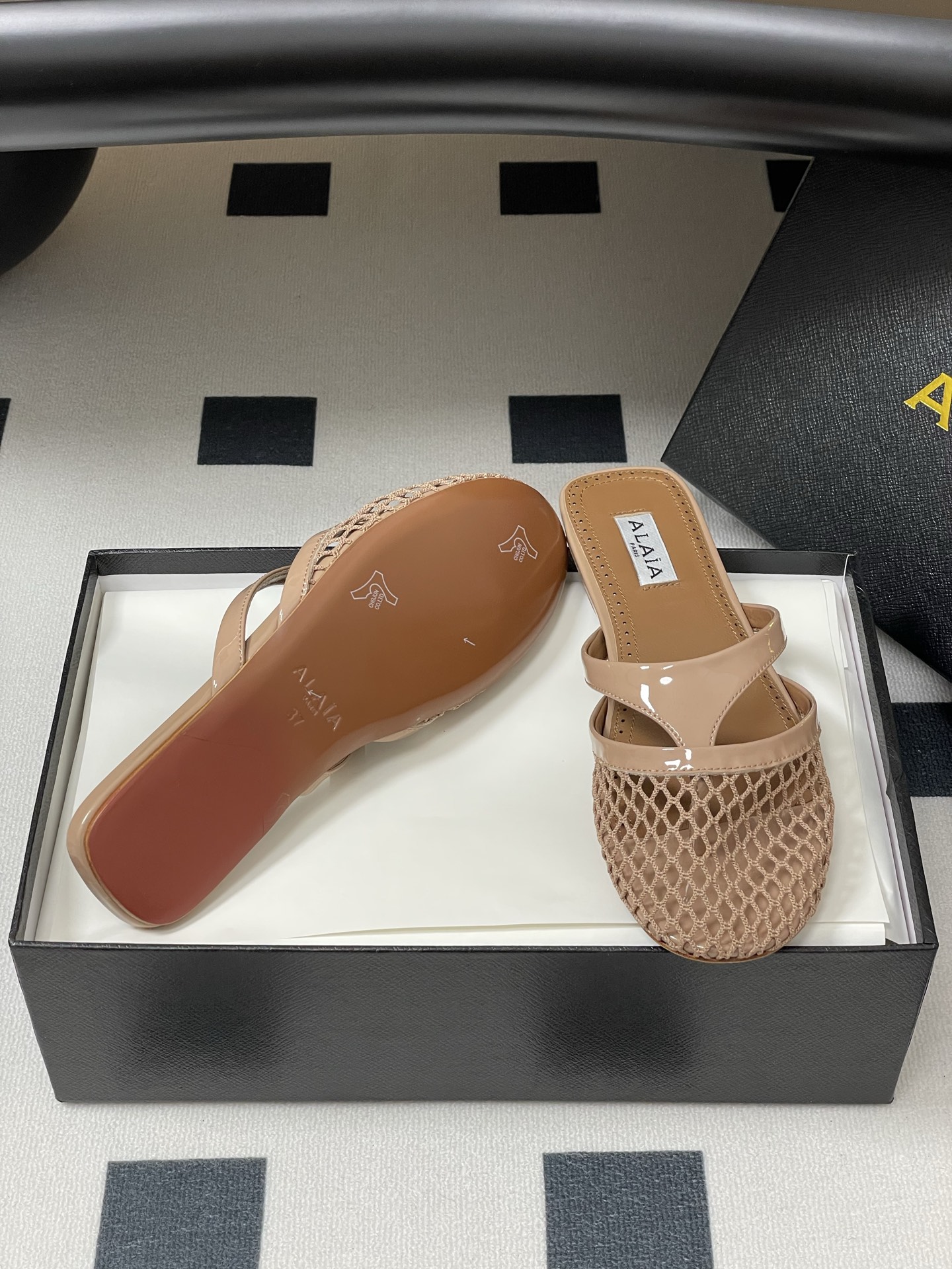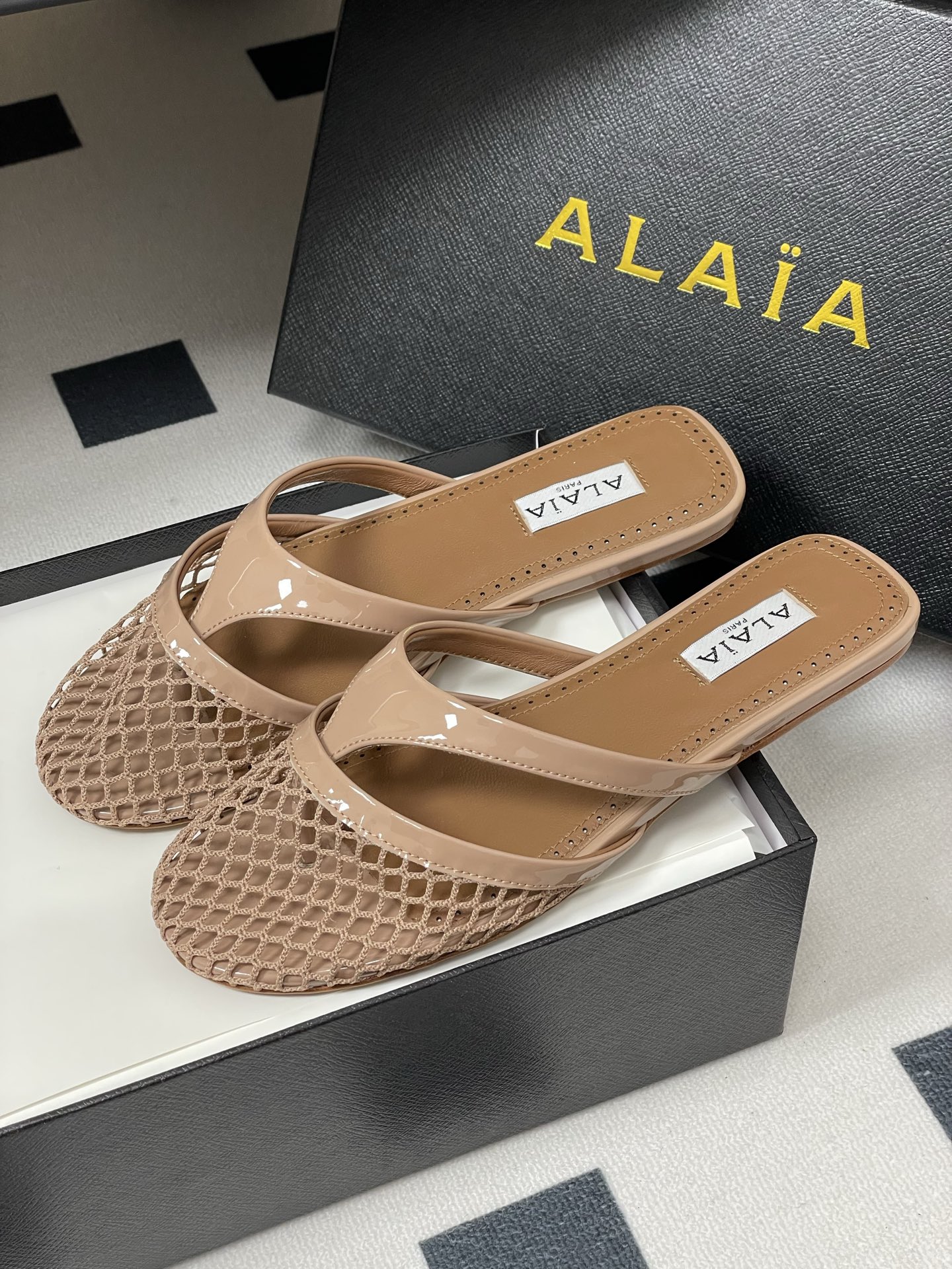 這款鞋子是AAAAA 1:1 質量(非常棒). 使用了和原版一模一樣的材料. 商標部分也保持了和Alaia一樣. 圖片拍攝是實物鞋子拍攝, 您所收到的實物保證和我們圖片一模一樣.