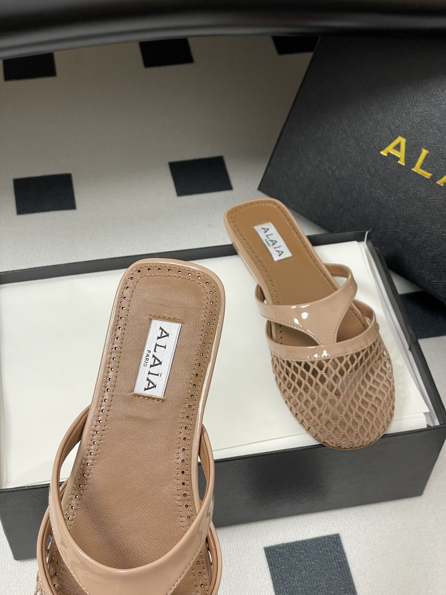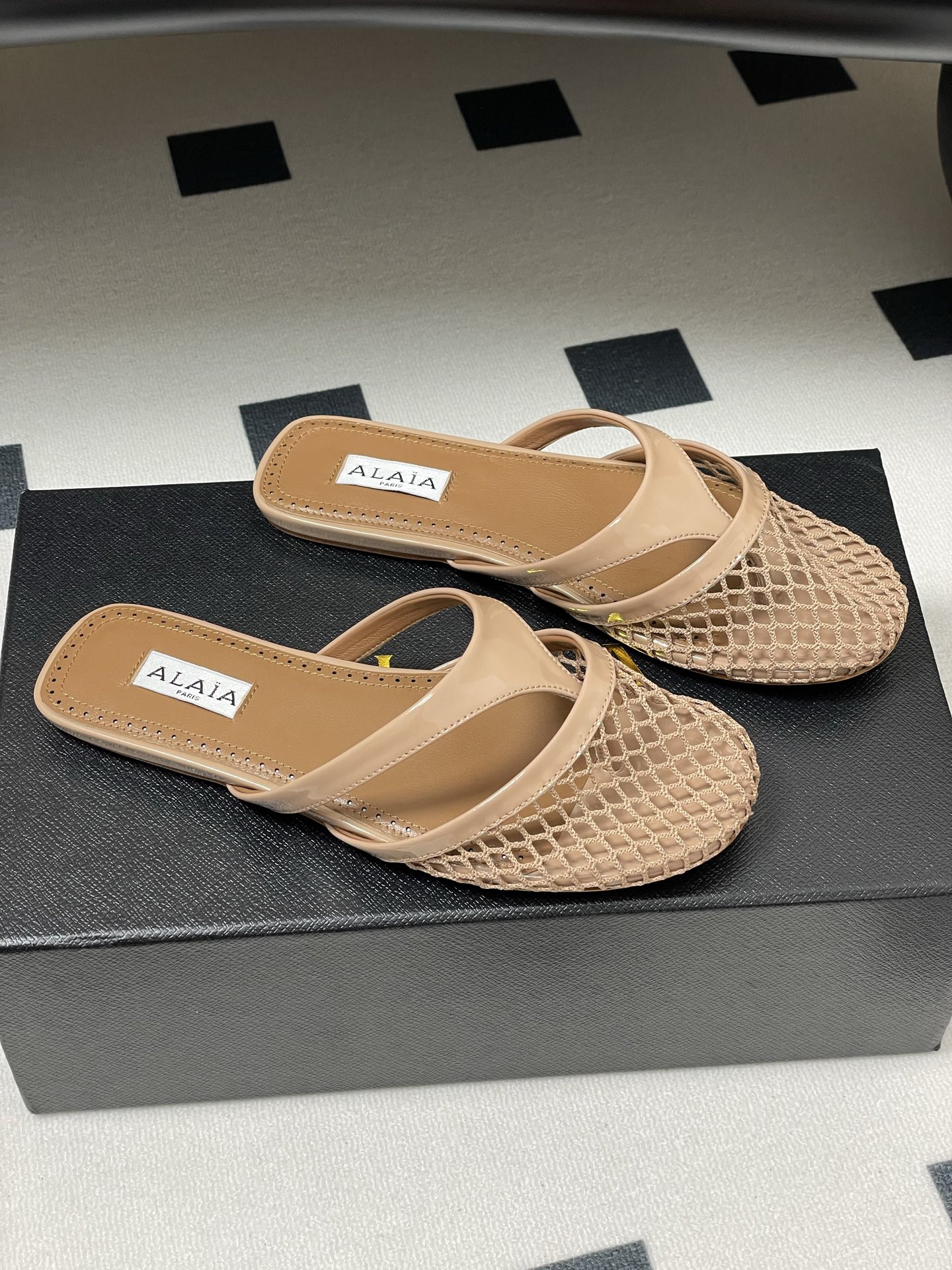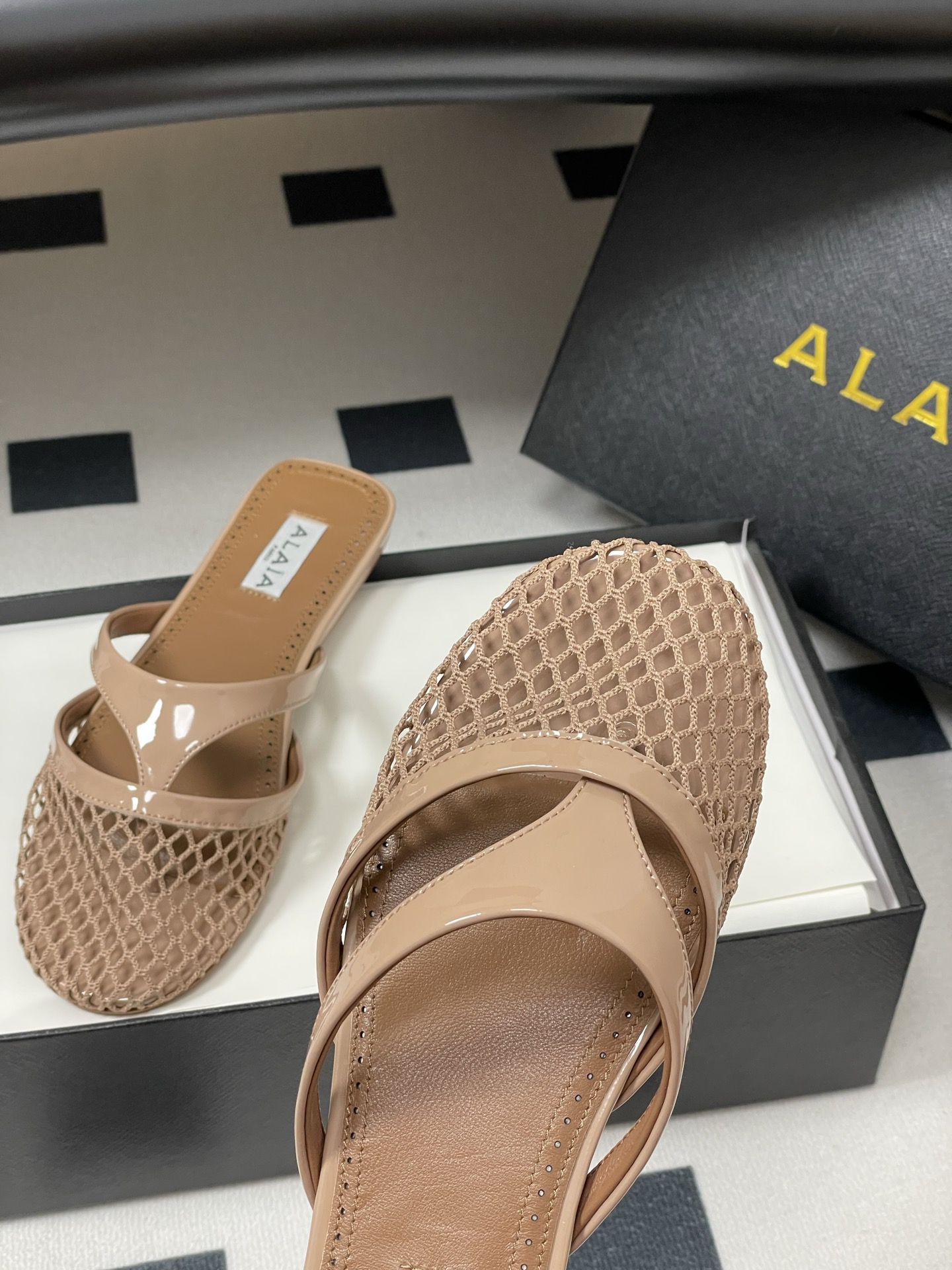 這款鞋子是AAAAA 1:1 質量(非常棒). 使用了和原版一模一樣的材料. 商標部分也保持了和Alaia一樣. 圖片拍攝是實物鞋子拍攝, 您所收到的實物保證和我們圖片一模一樣.