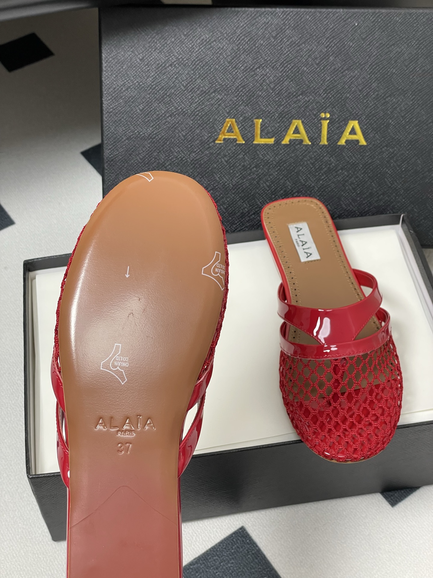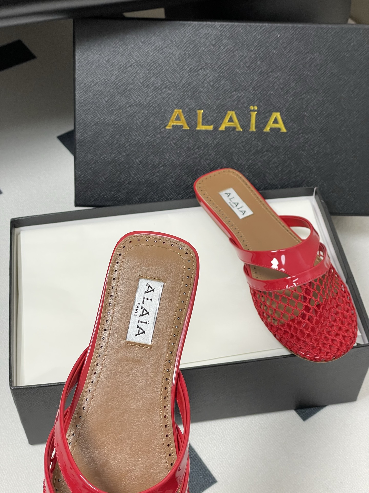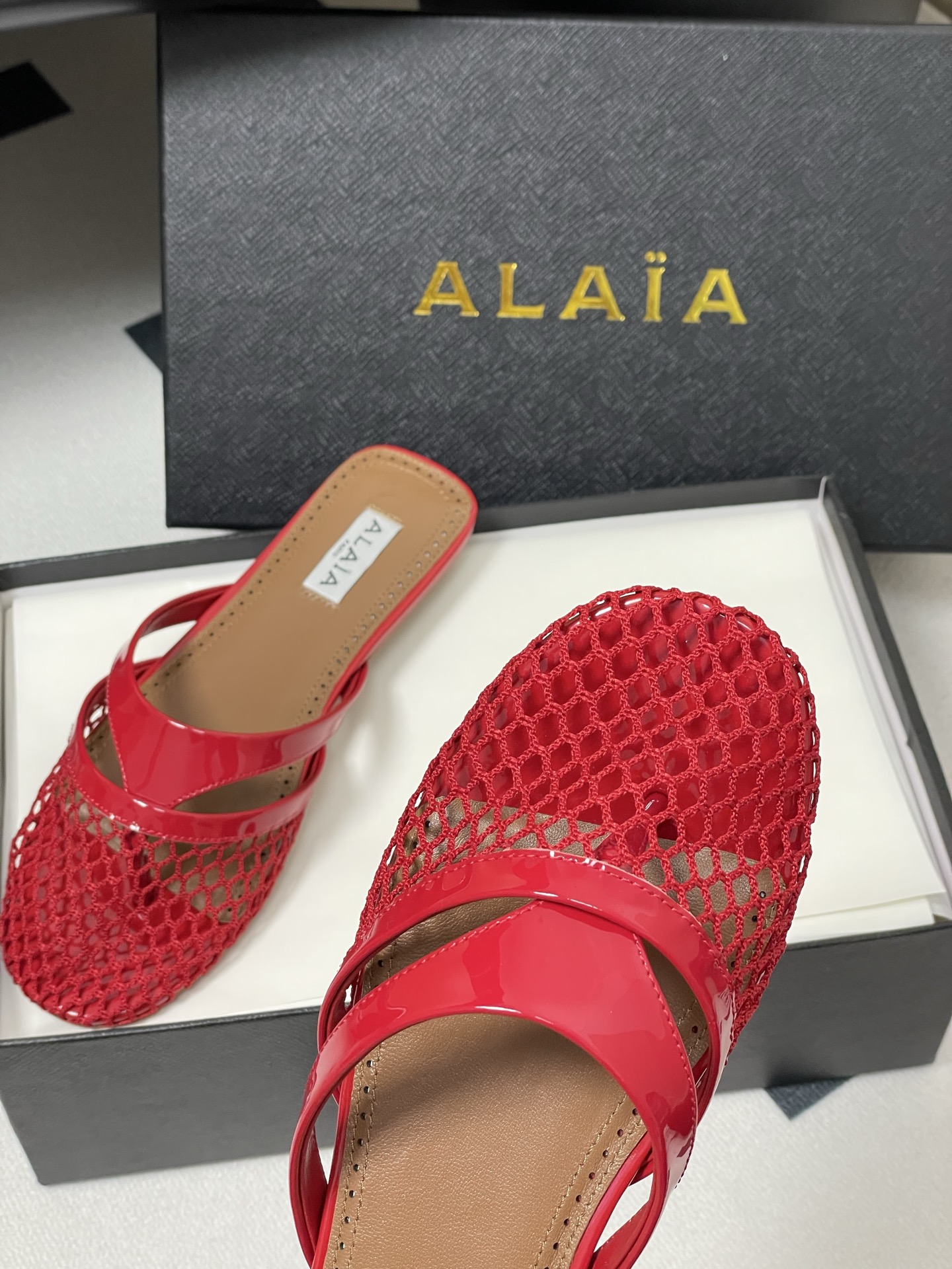 這款鞋子是AAAAA 1:1 質量(非常棒). 使用了和原版一模一樣的材料. 商標部分也保持了和Alaia一樣. 圖片拍攝是實物鞋子拍攝, 您所收到的實物保證和我們圖片一模一樣.