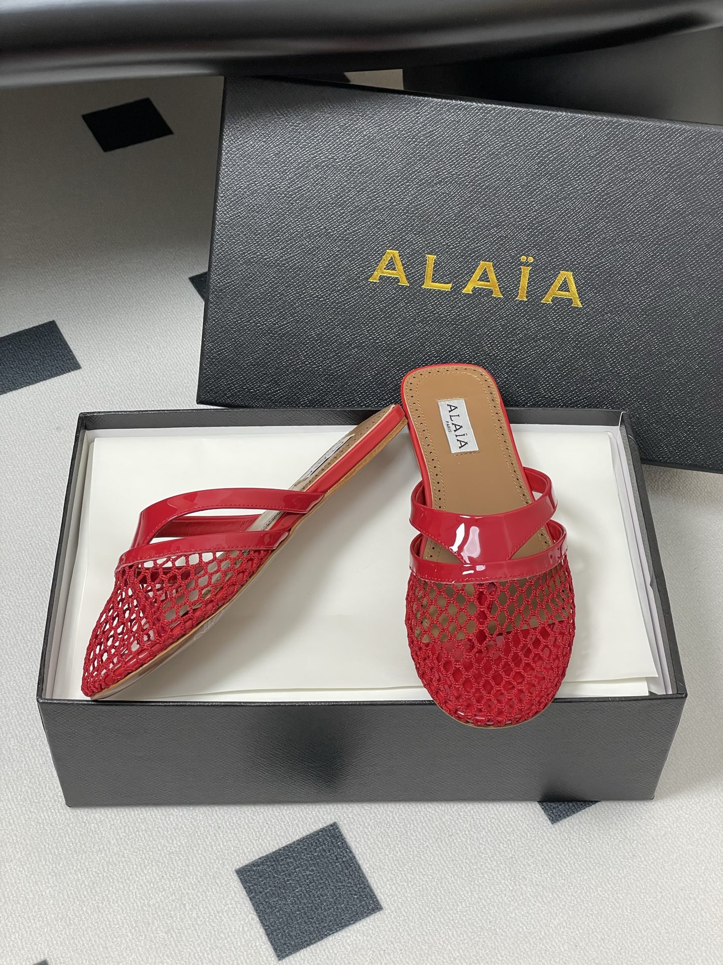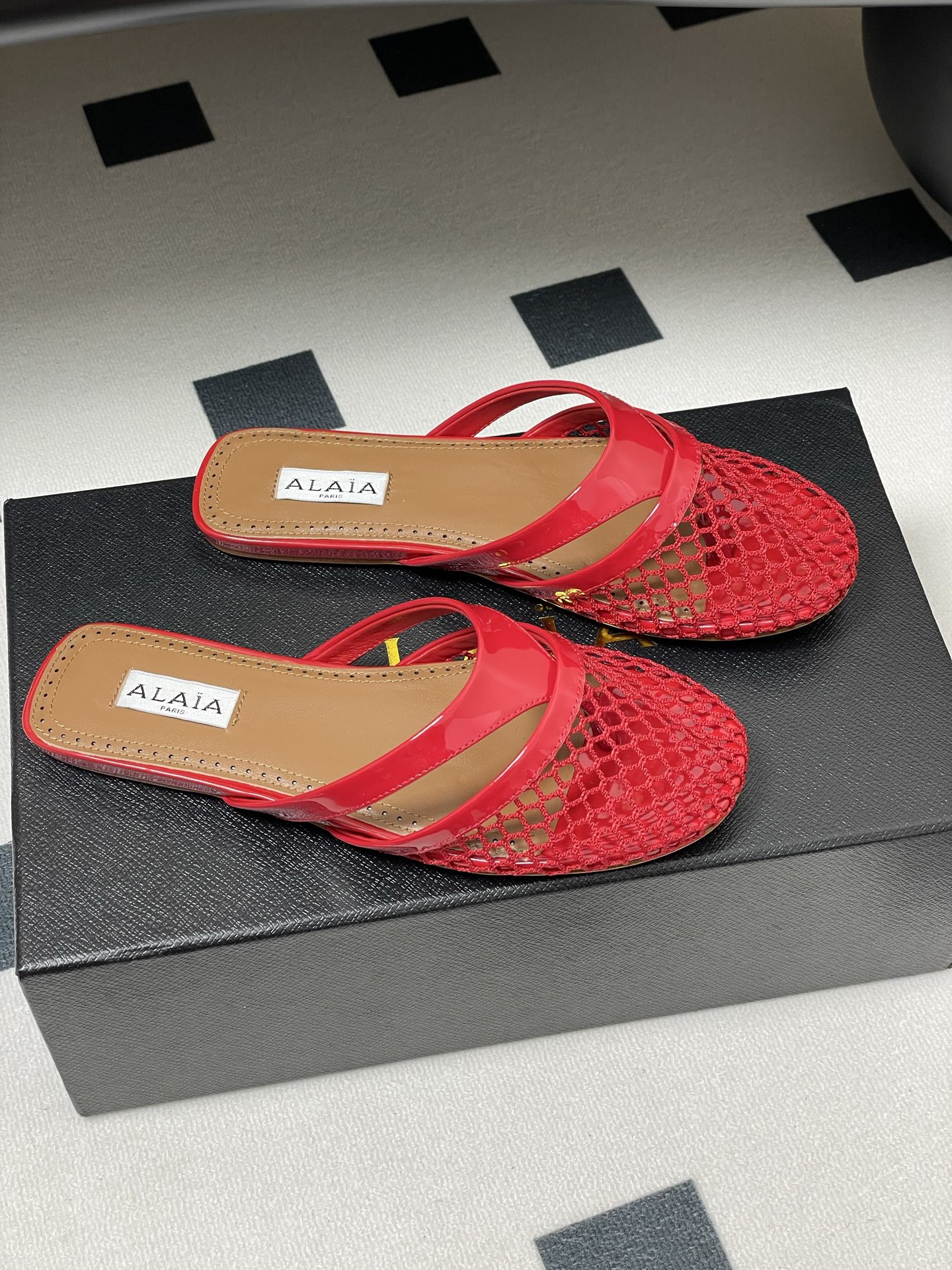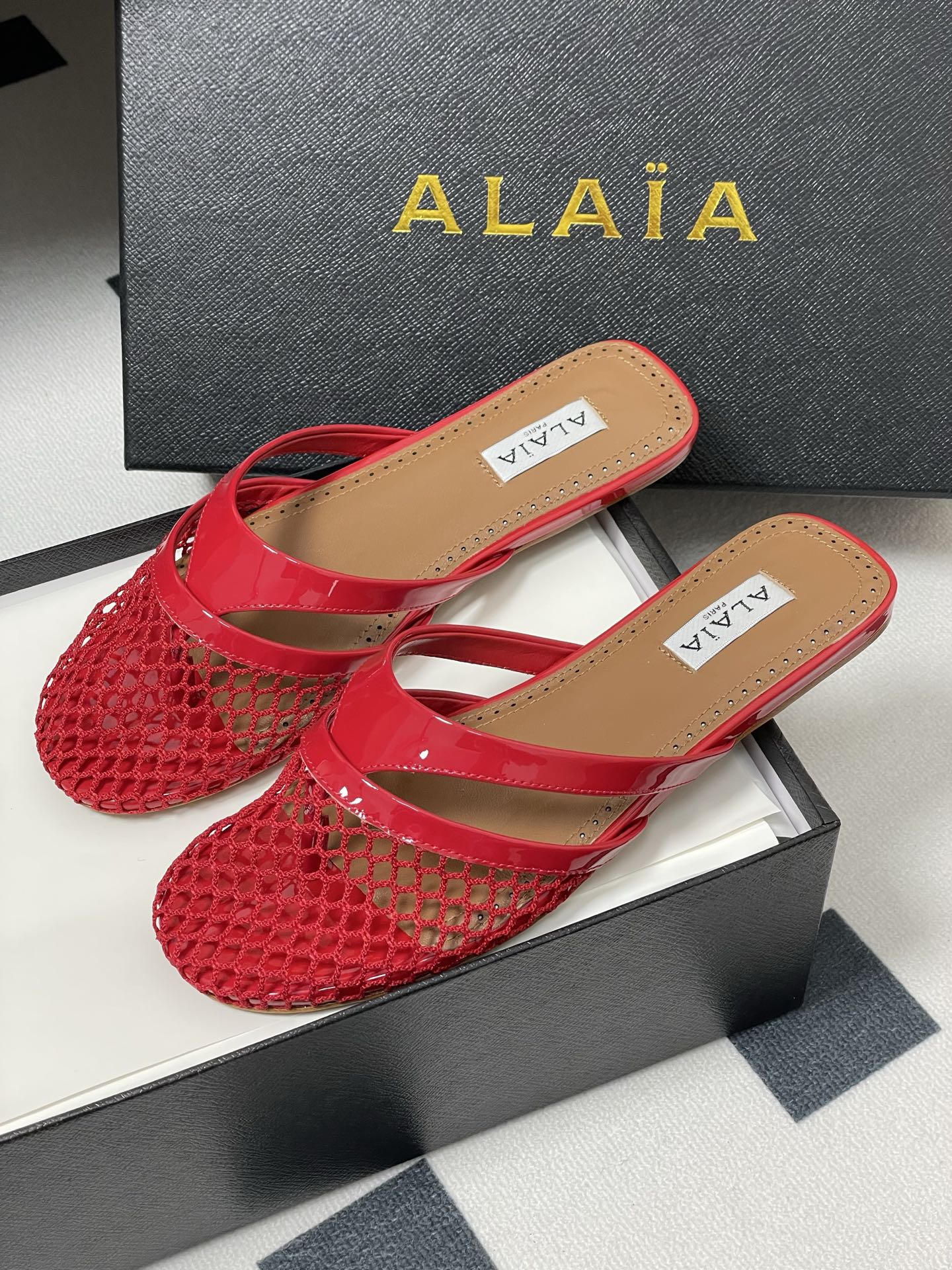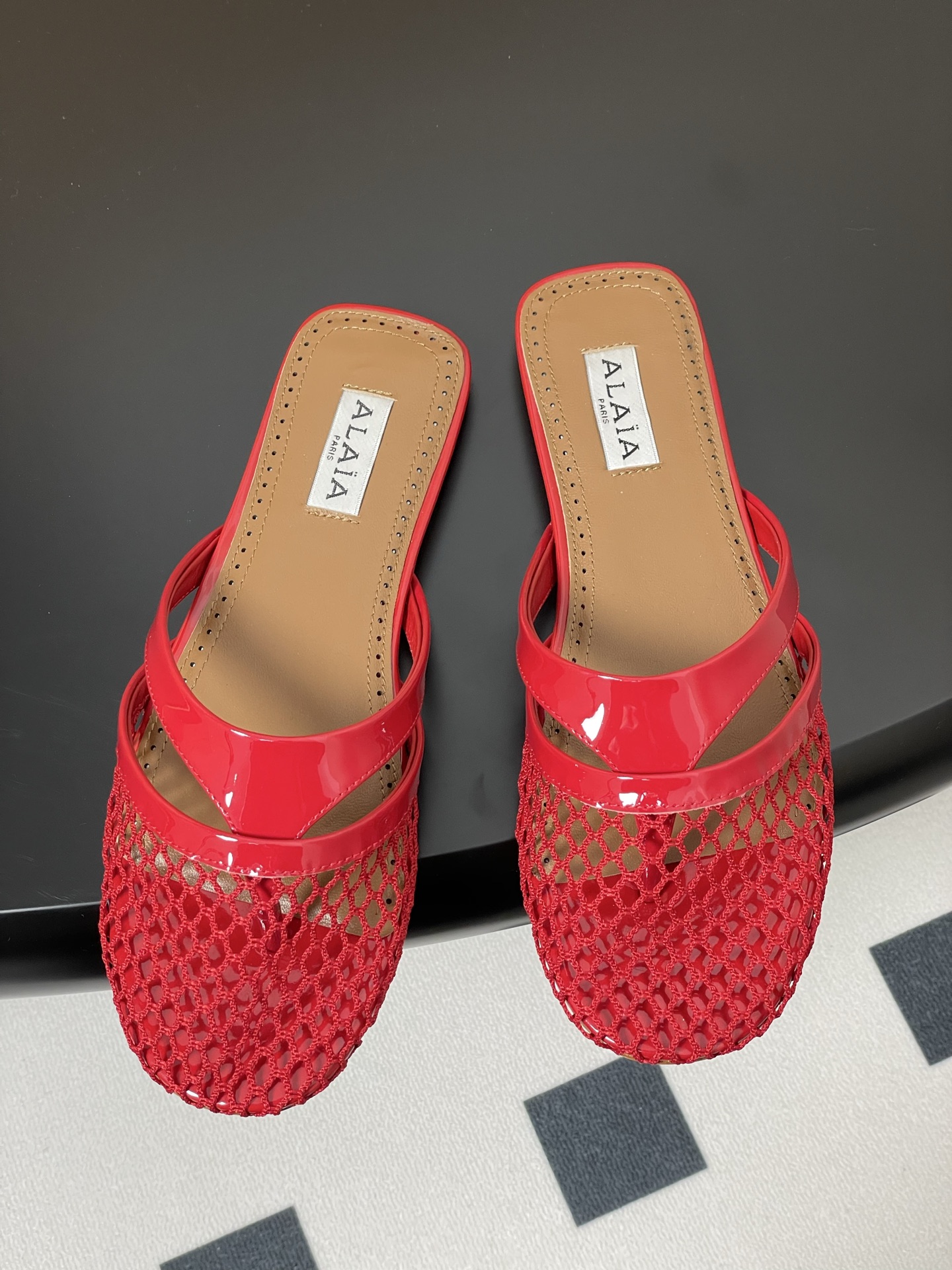 這款鞋子是AAAAA 1:1 質量(非常棒). 使用了和原版一模一樣的材料. 商標部分也保持了和Alaia一樣. 圖片拍攝是實物鞋子拍攝, 您所收到的實物保證和我們圖片一模一樣.