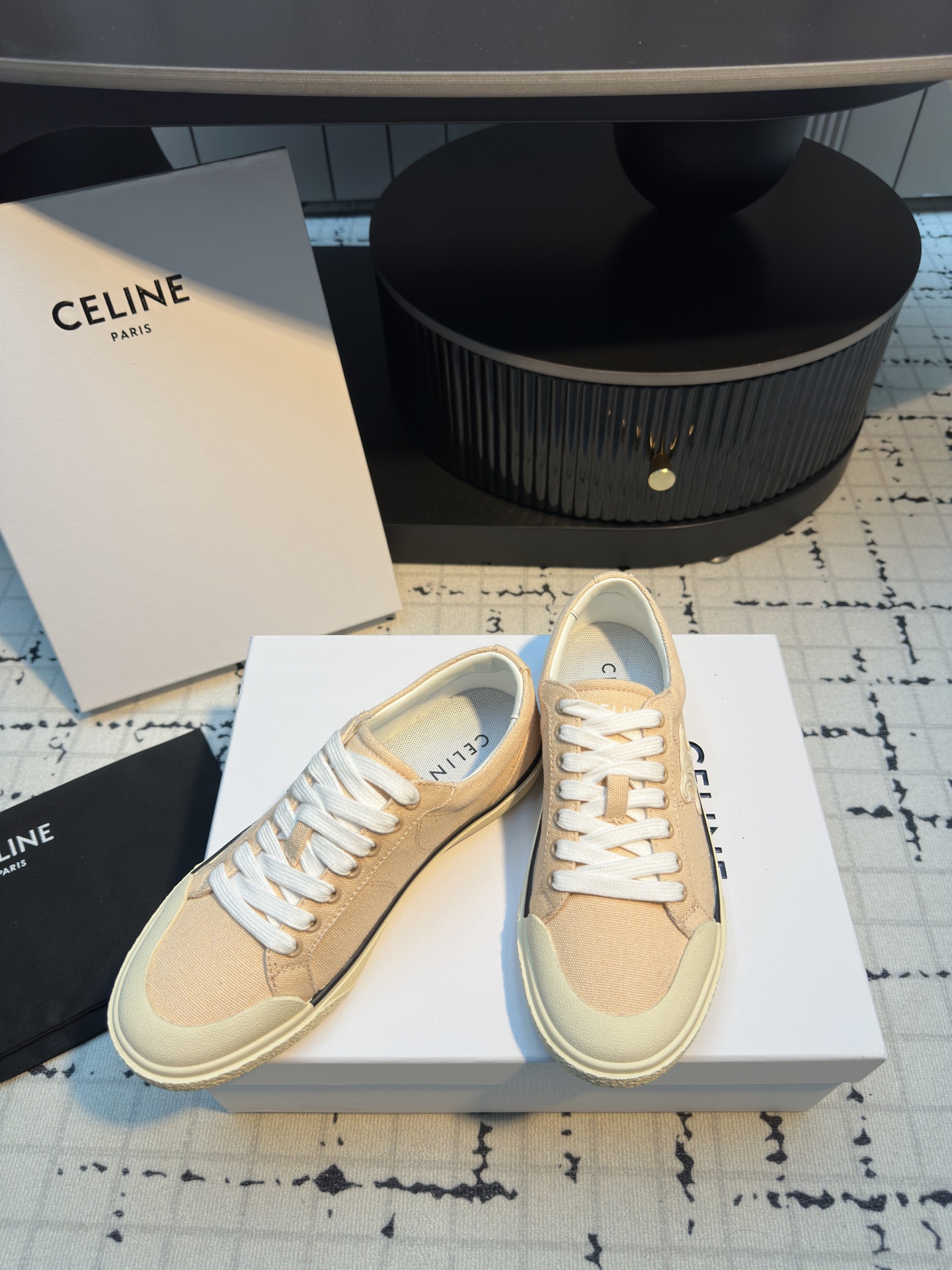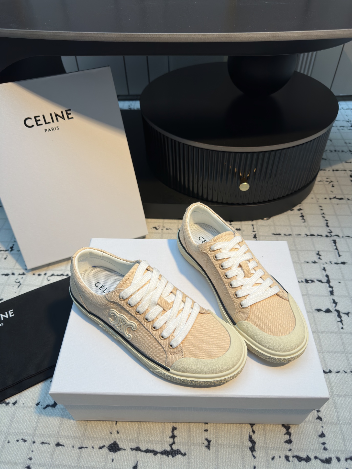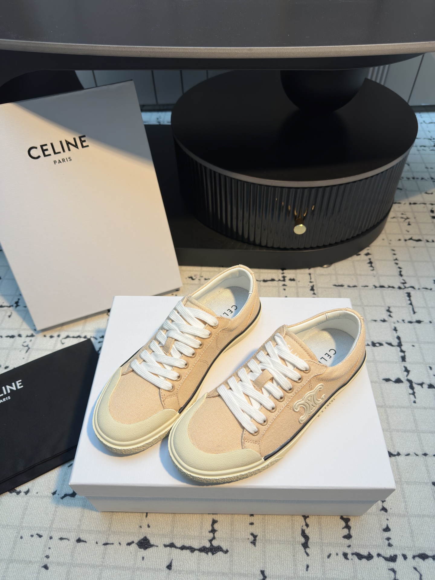 這款鞋子是AAAAA 1:1 質量(非常棒). 使用了和原版一模一樣的材料. 商標部分也保持了和思琳/赛琳/Celine一樣. 圖片拍攝是實物鞋子拍攝, 您所收到的實物保證和我們圖片一模一樣.