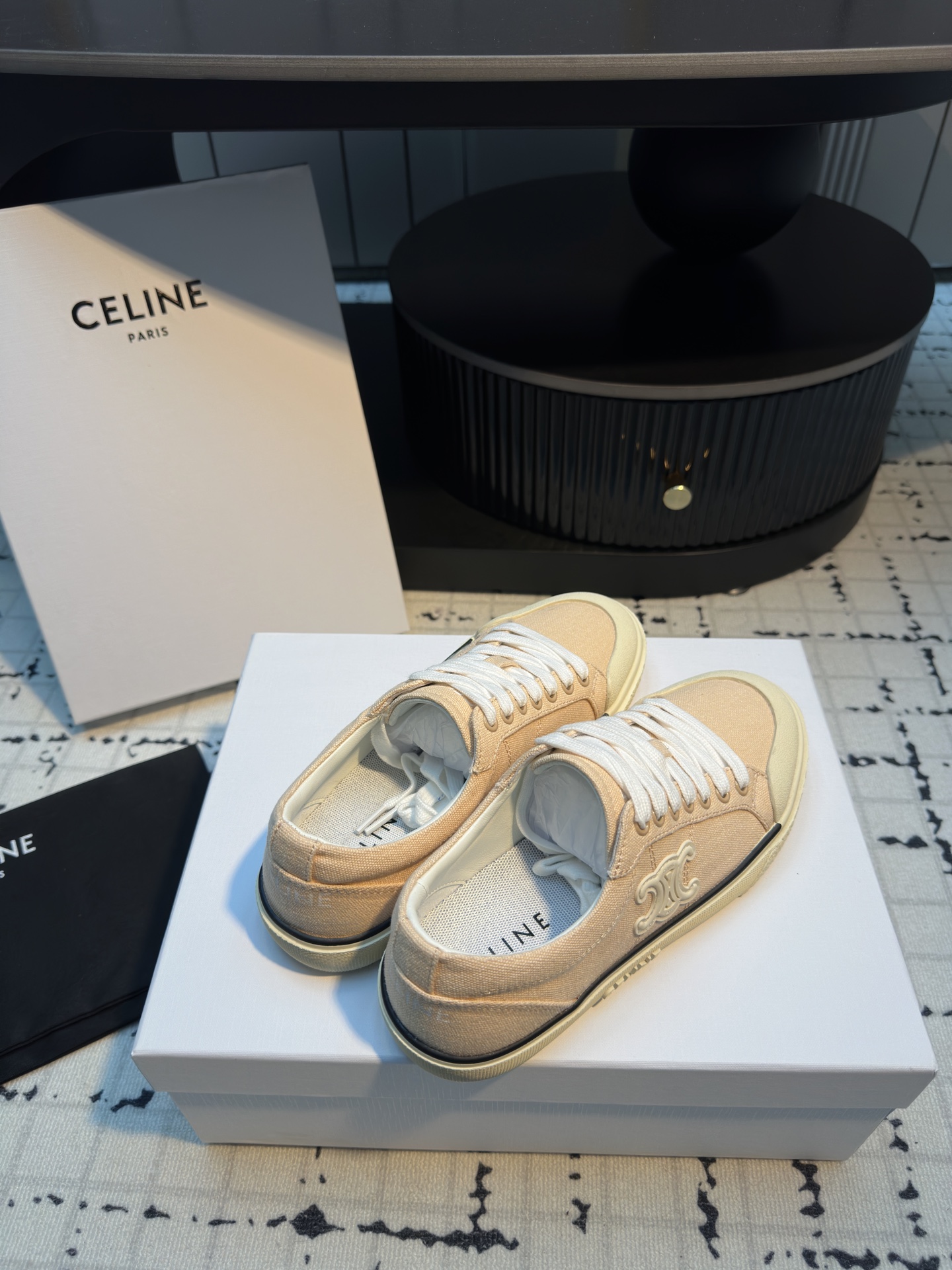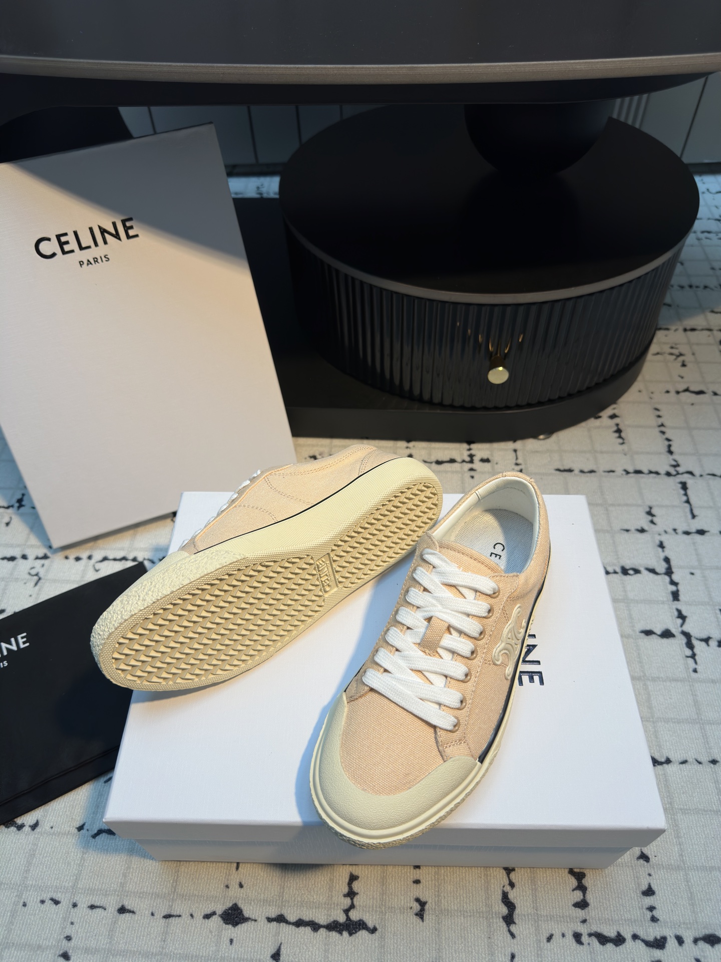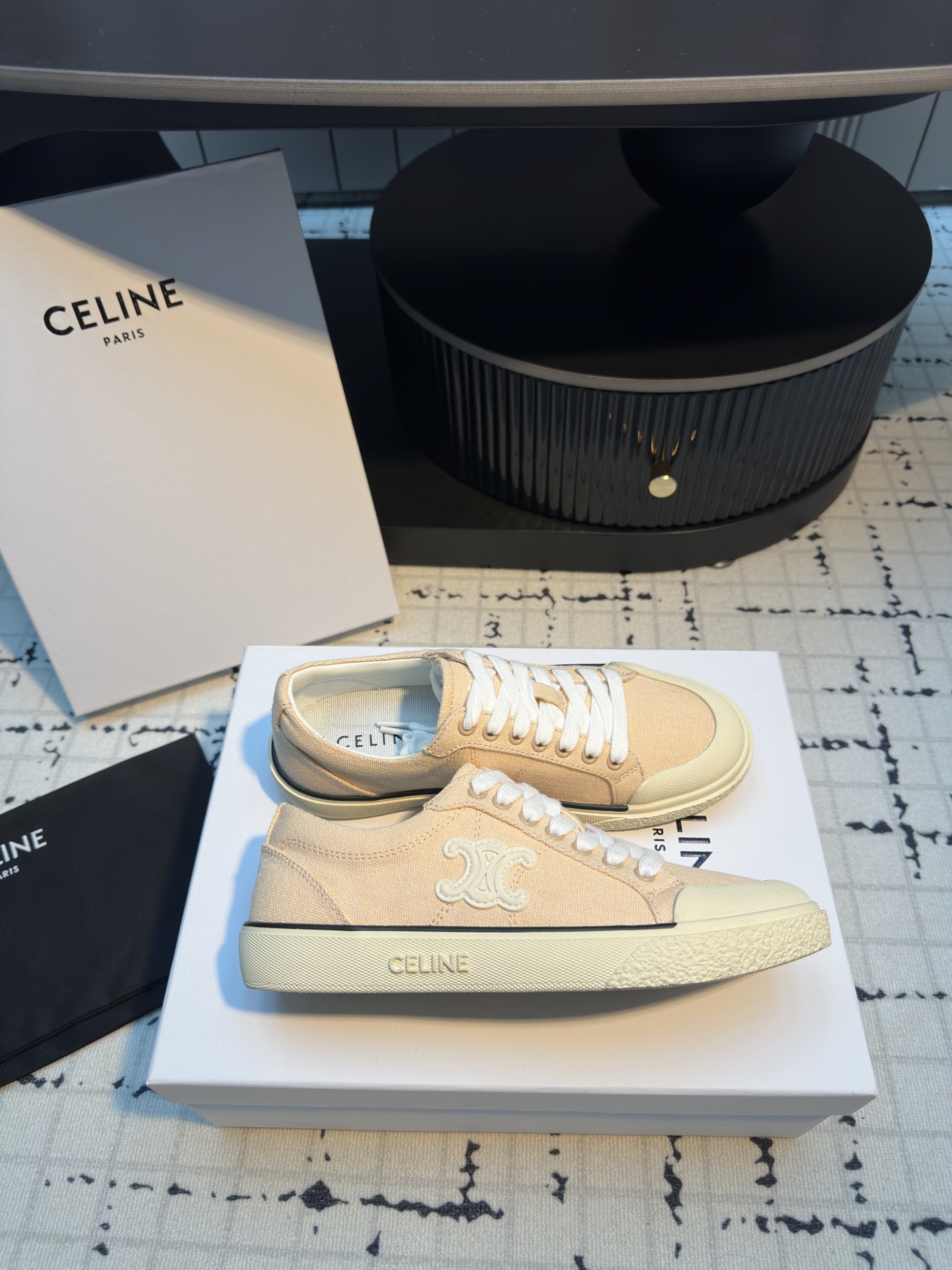這款鞋子是AAAAA 1:1 質量(非常棒). 使用了和原版一模一樣的材料. 商標部分也保持了和思琳/赛琳/Celine一樣. 圖片拍攝是實物鞋子拍攝, 您所收到的實物保證和我們圖片一模一樣.