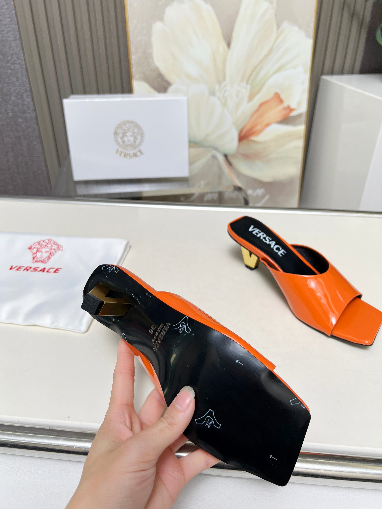 這款鞋子是AAAAA 1:1 質量(非常棒). 使用了和原版一模一樣的材料. 商標部分也保持了和范思哲/Versace一樣. 圖片拍攝是實物鞋子拍攝, 您所收到的實物保證和我們圖片一模一樣.