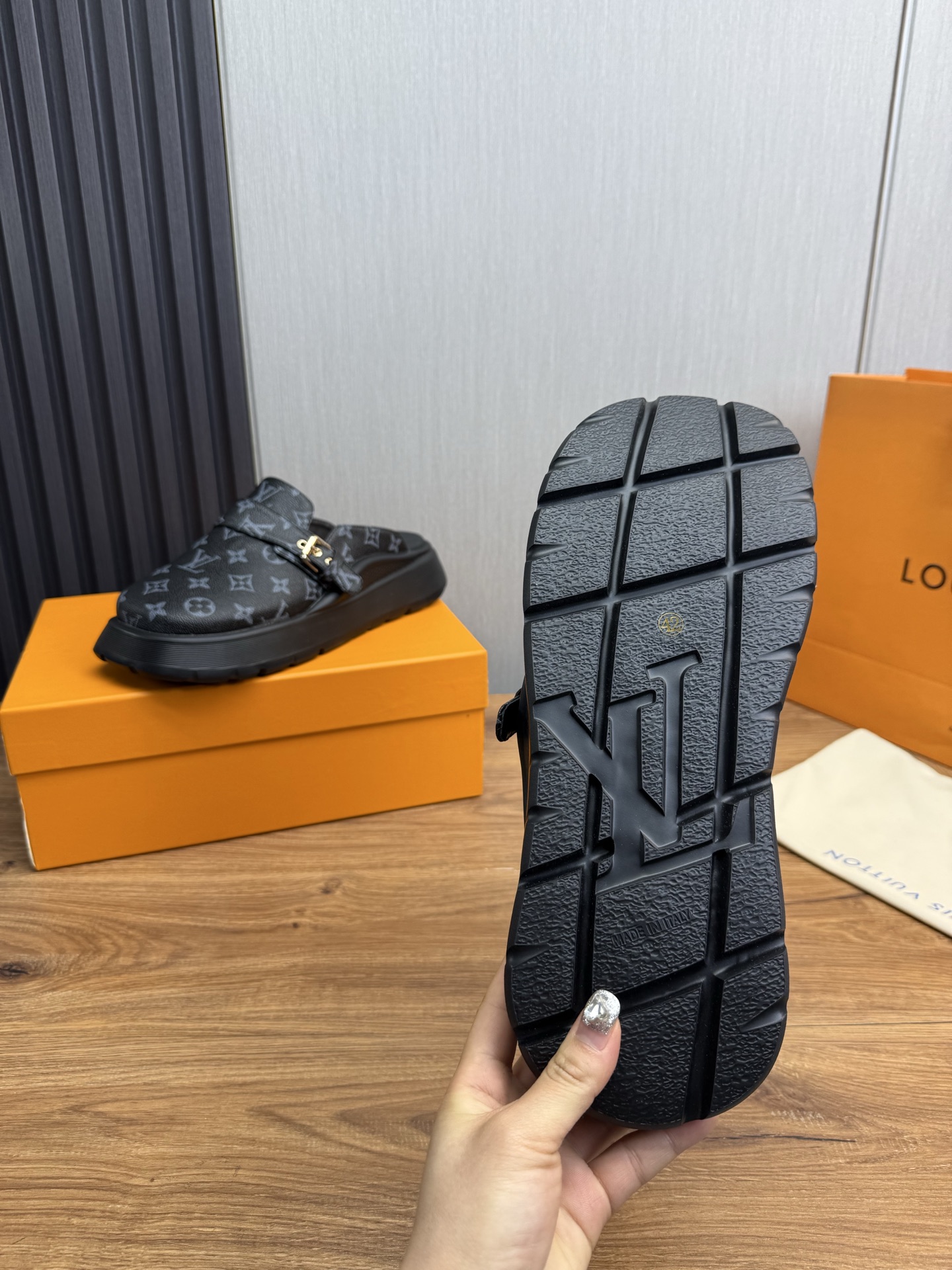 這款鞋子是AAAAA 1:1 質量(非常棒). 使用了和原版一模一樣的材料. 商標部分也保持了和路易威登/Louis Vuitton一樣. 圖片拍攝是實物鞋子拍攝, 您所收到的實物保證和我們圖片一模一樣.