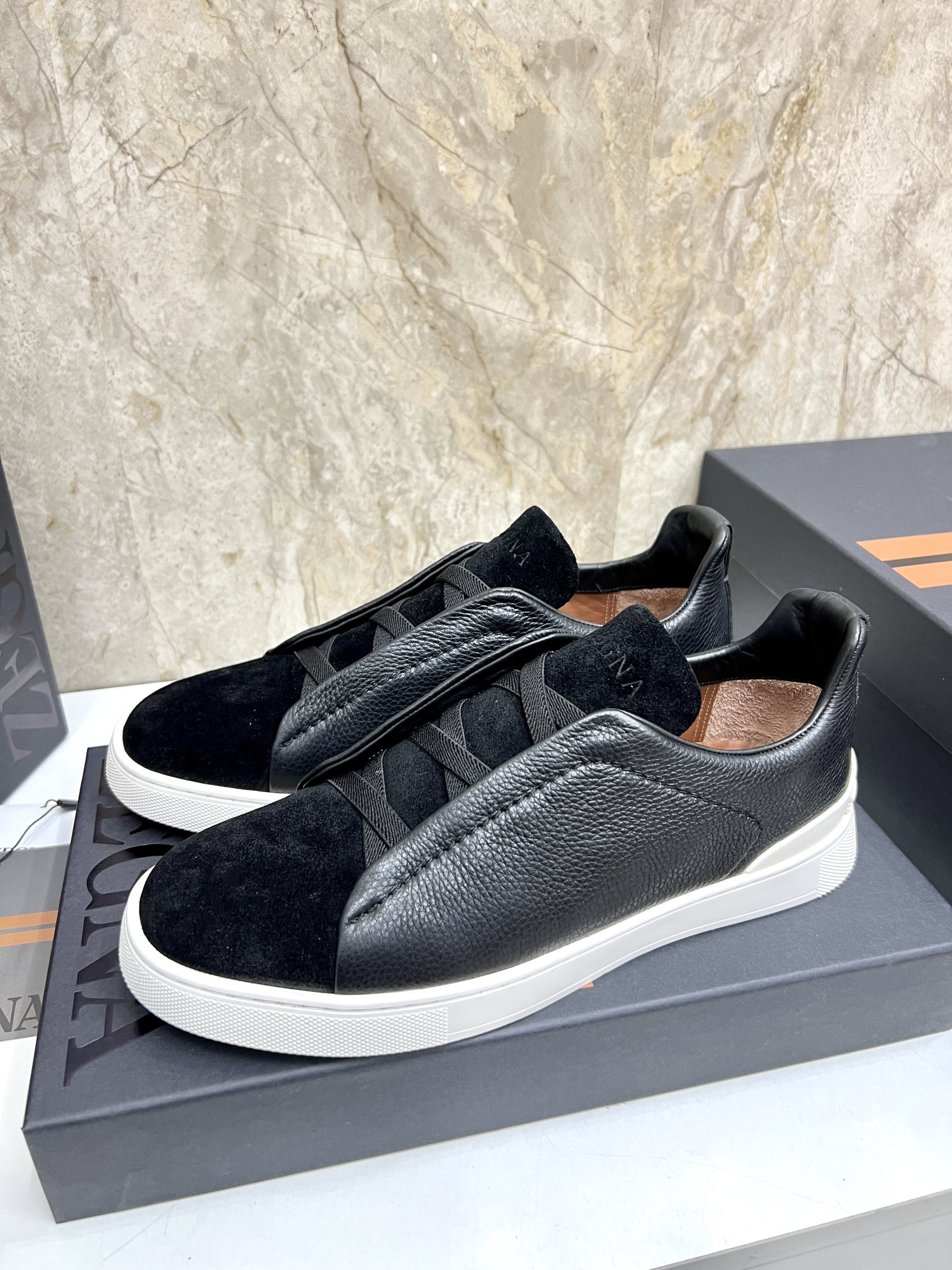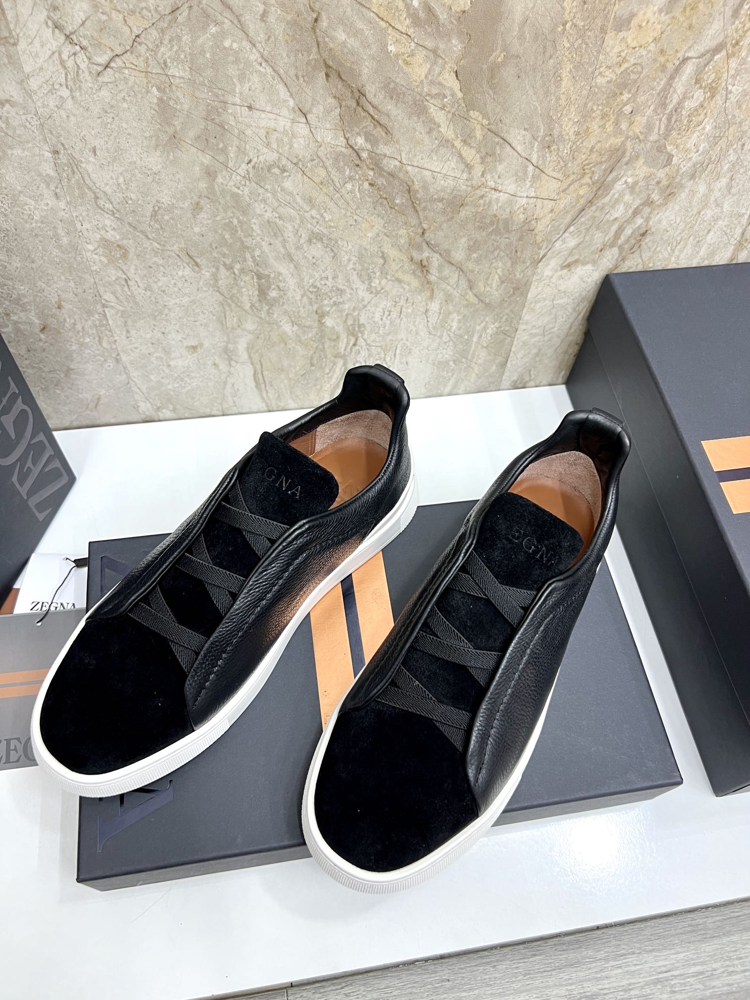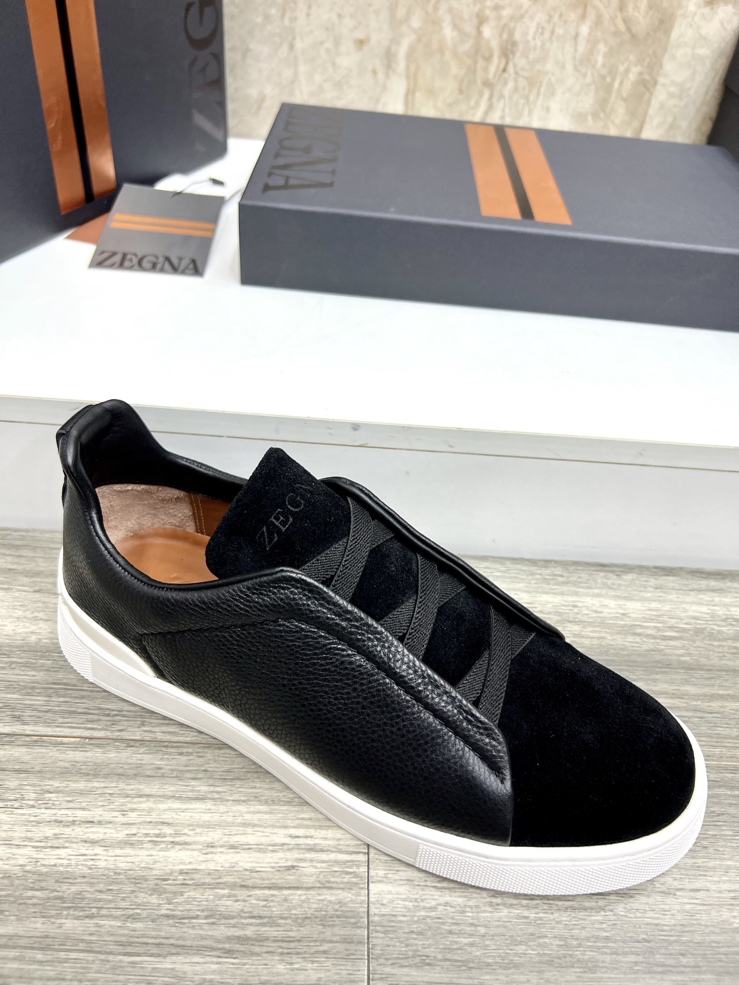 這款鞋子是AAAAA 1:1 質量(非常棒). 使用了和原版一模一樣的材料. 商標部分也保持了和Zegna一樣. 圖片拍攝是實物鞋子拍攝, 您所收到的實物保證和我們圖片一模一樣.