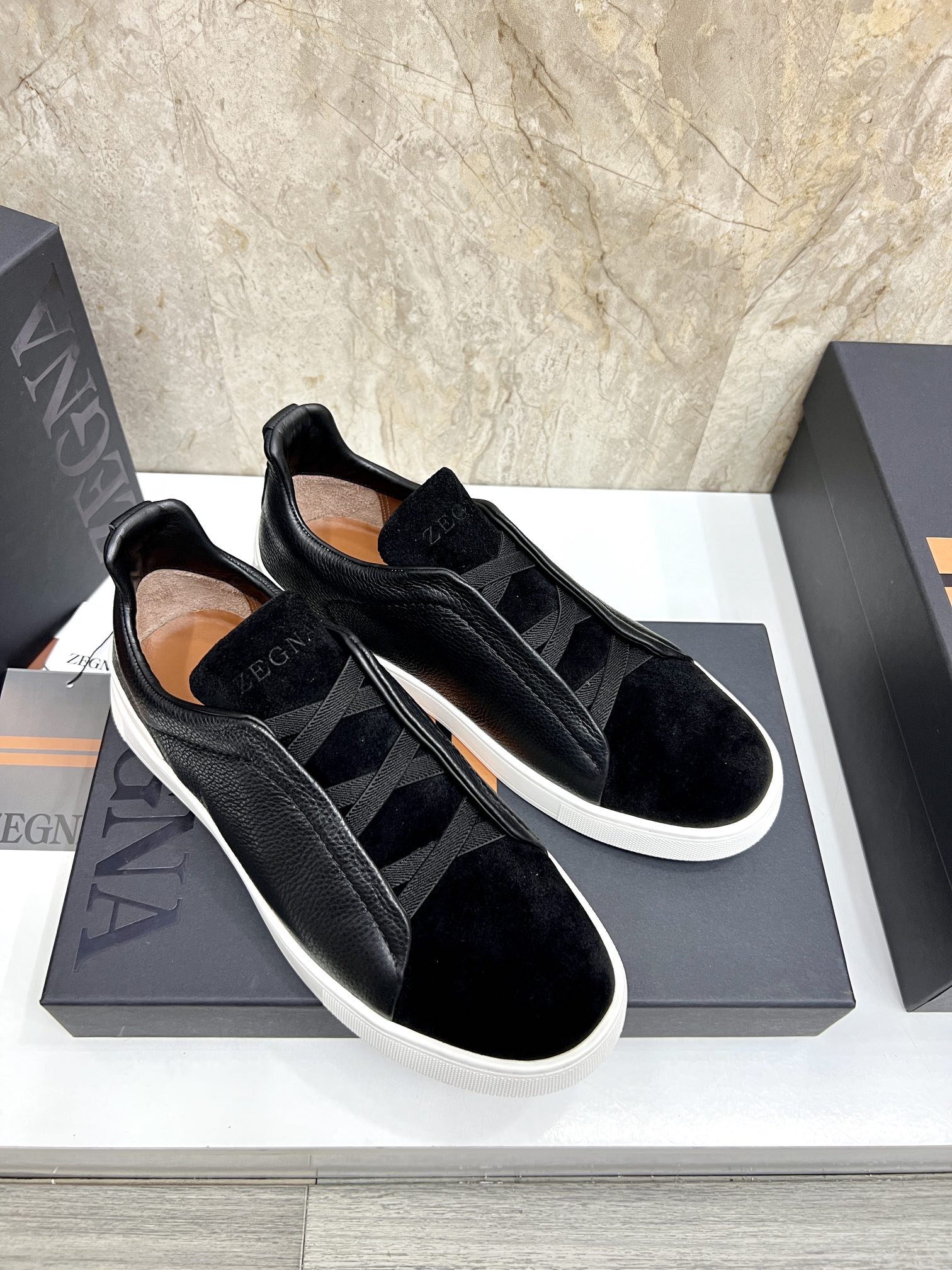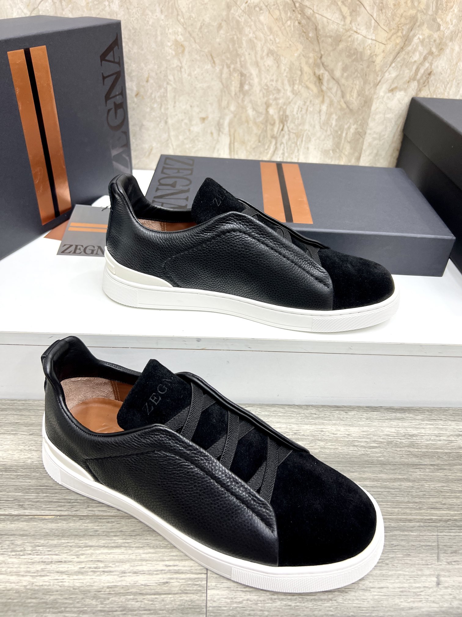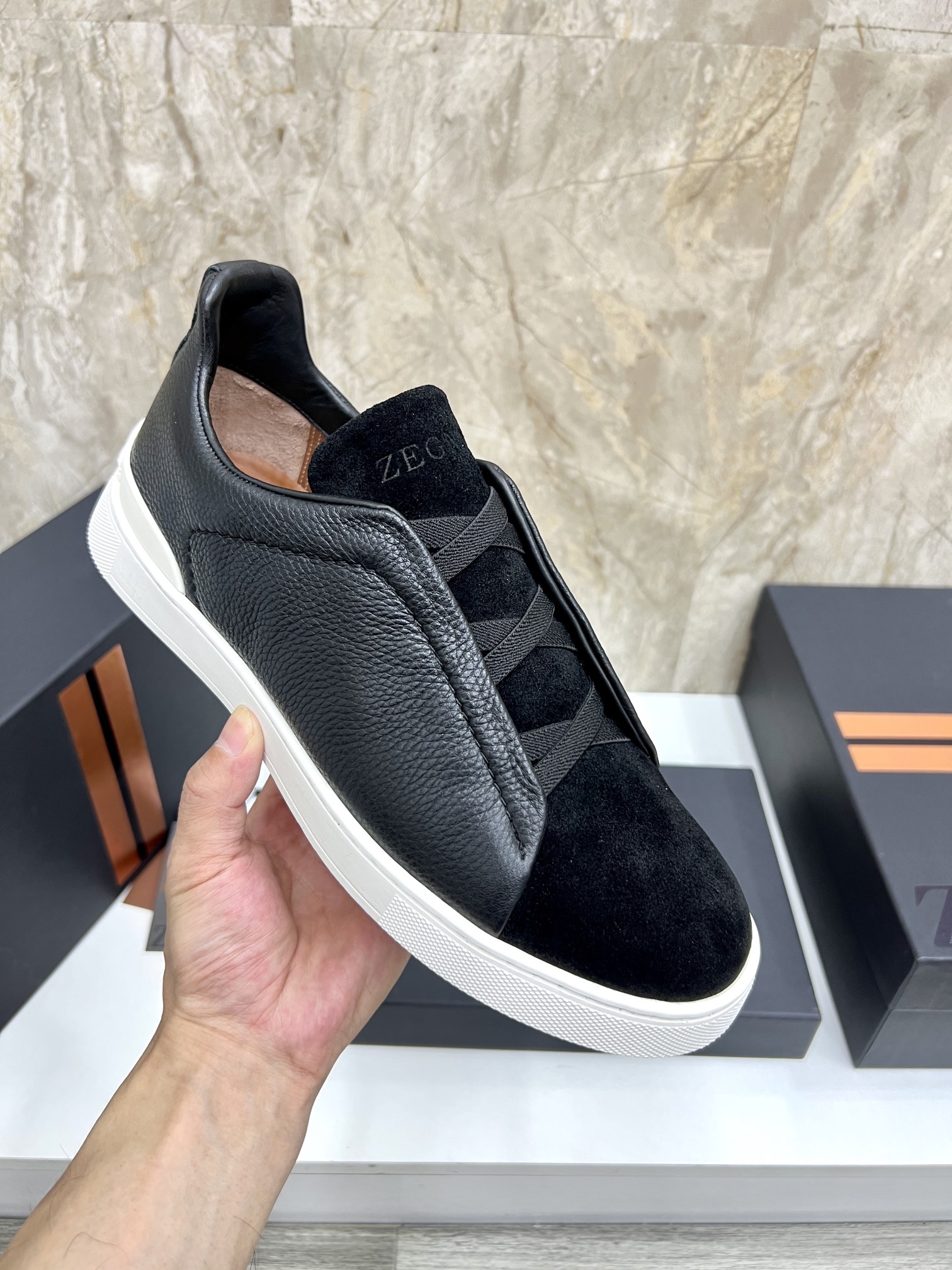 這款鞋子是AAAAA 1:1 質量(非常棒). 使用了和原版一模一樣的材料. 商標部分也保持了和Zegna一樣. 圖片拍攝是實物鞋子拍攝, 您所收到的實物保證和我們圖片一模一樣.