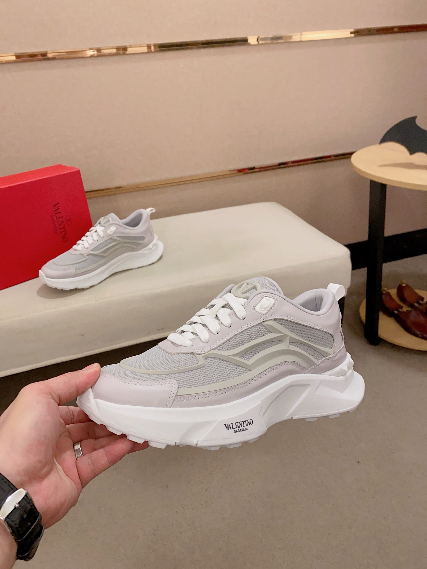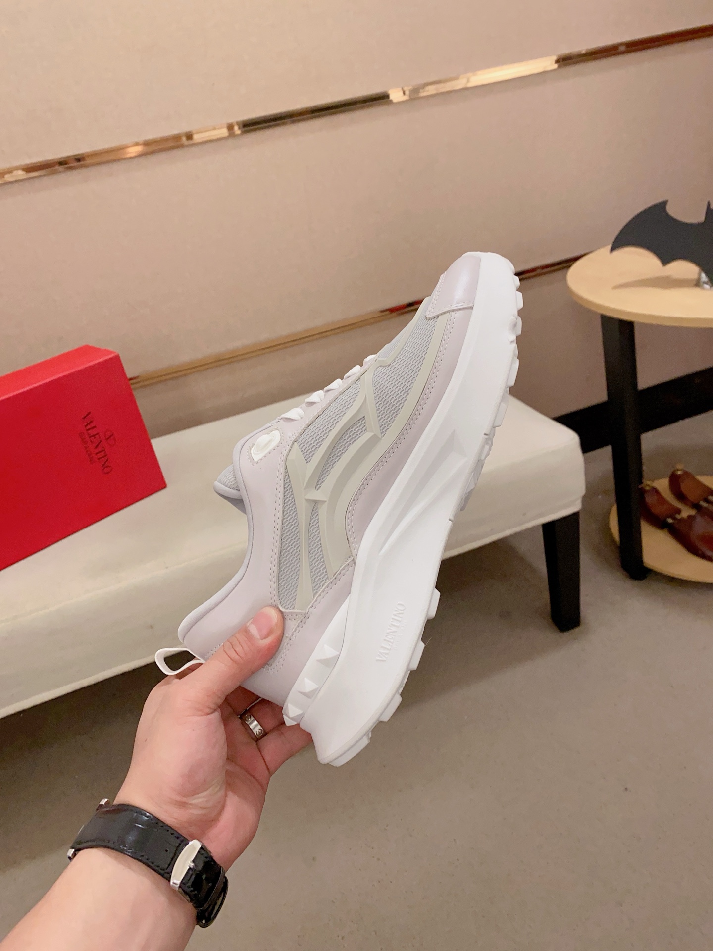 這款鞋子是AAAAA 1:1 質量(非常棒). 使用了和原版一模一樣的材料. 商標部分也保持了和瓦倫蒂諾/Valentino一樣. 圖片拍攝是實物鞋子拍攝, 您所收到的實物保證和我們圖片一模一樣.