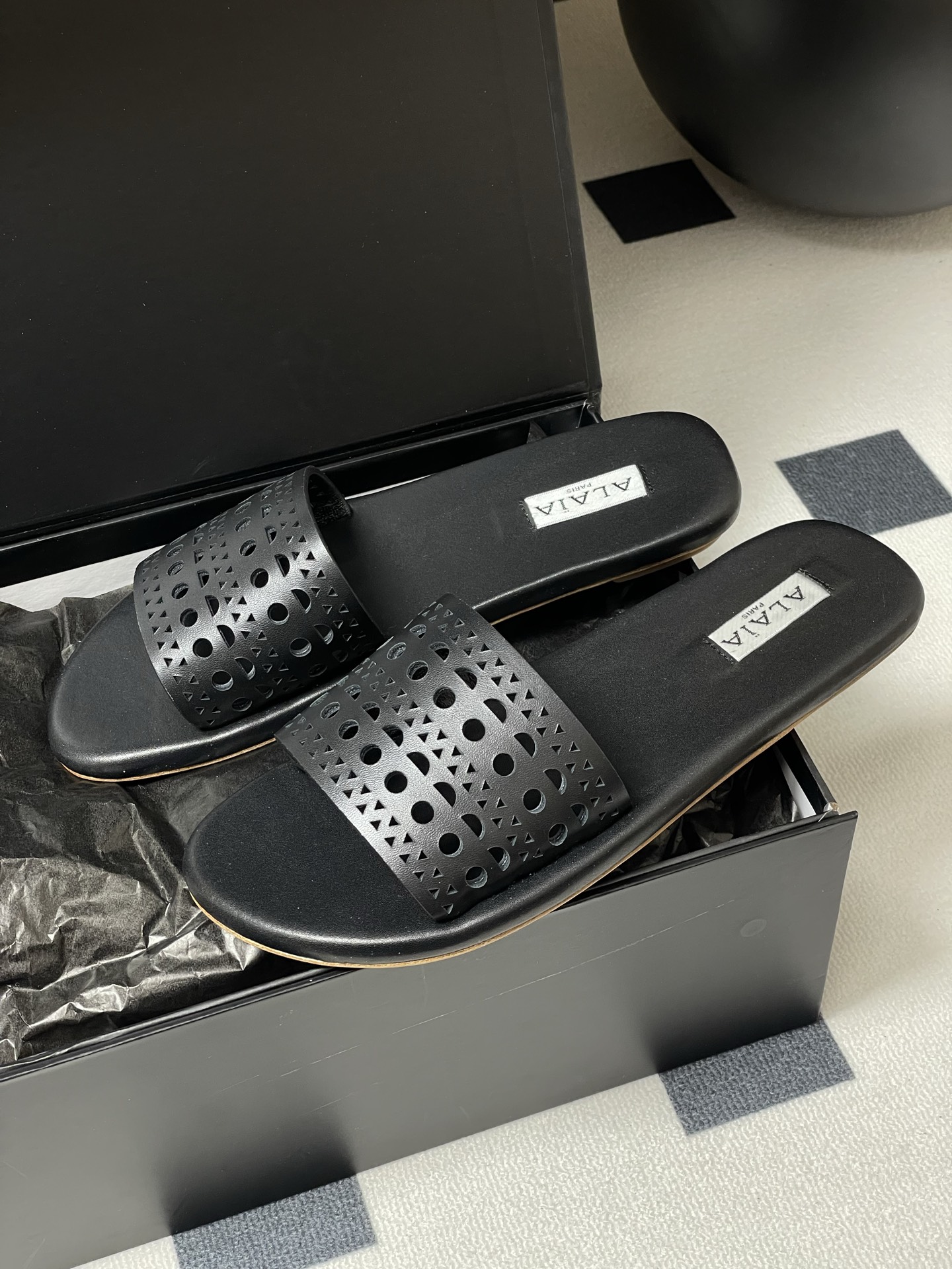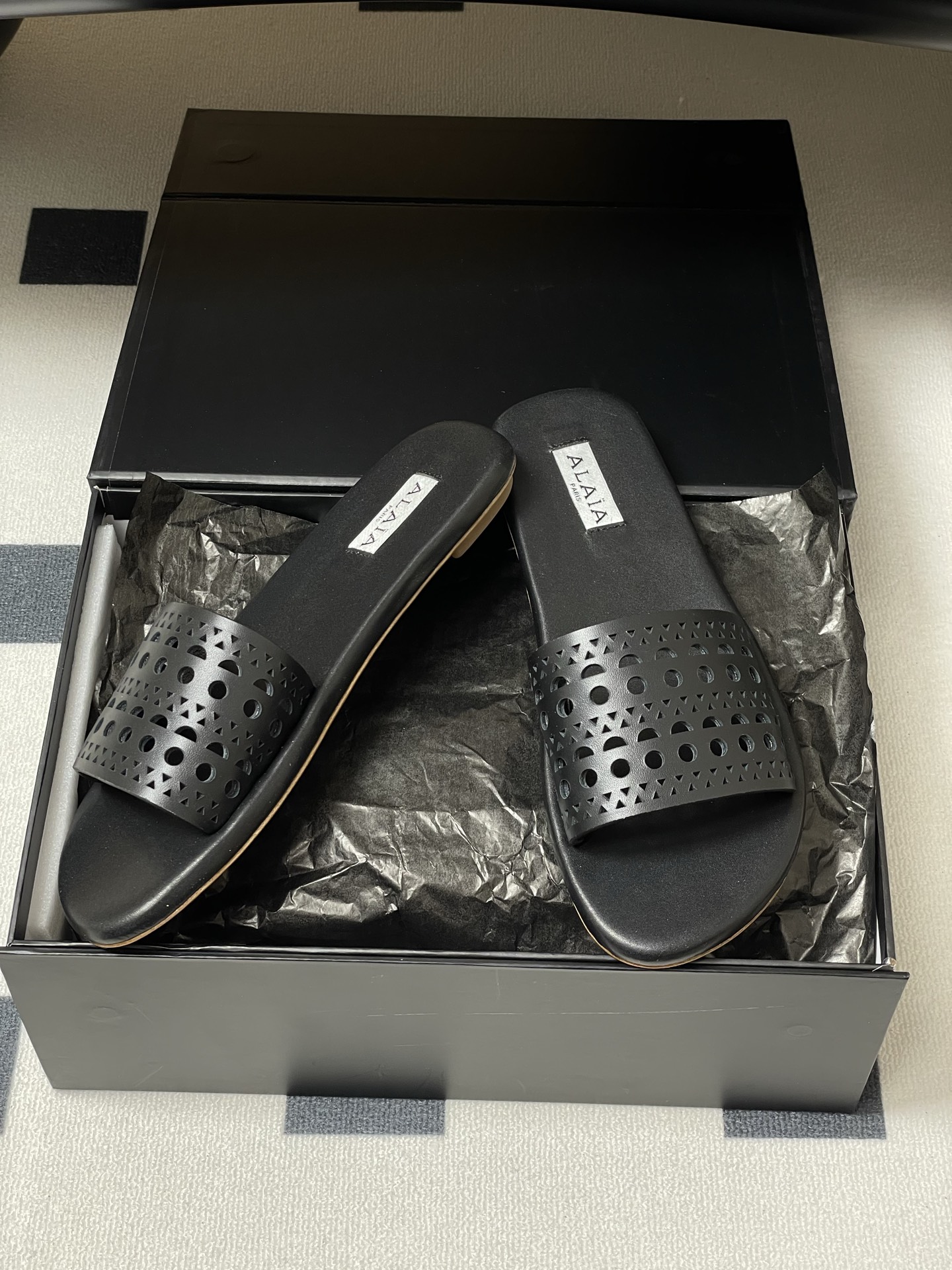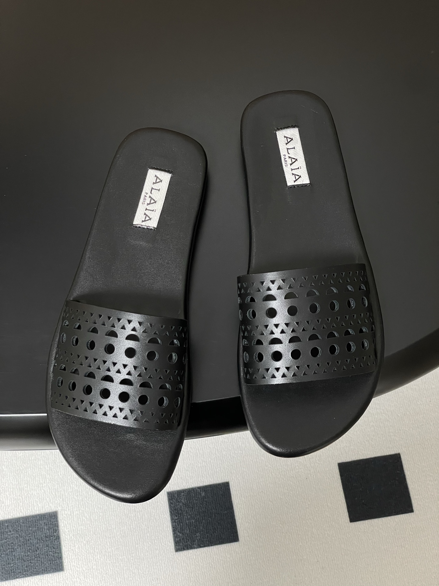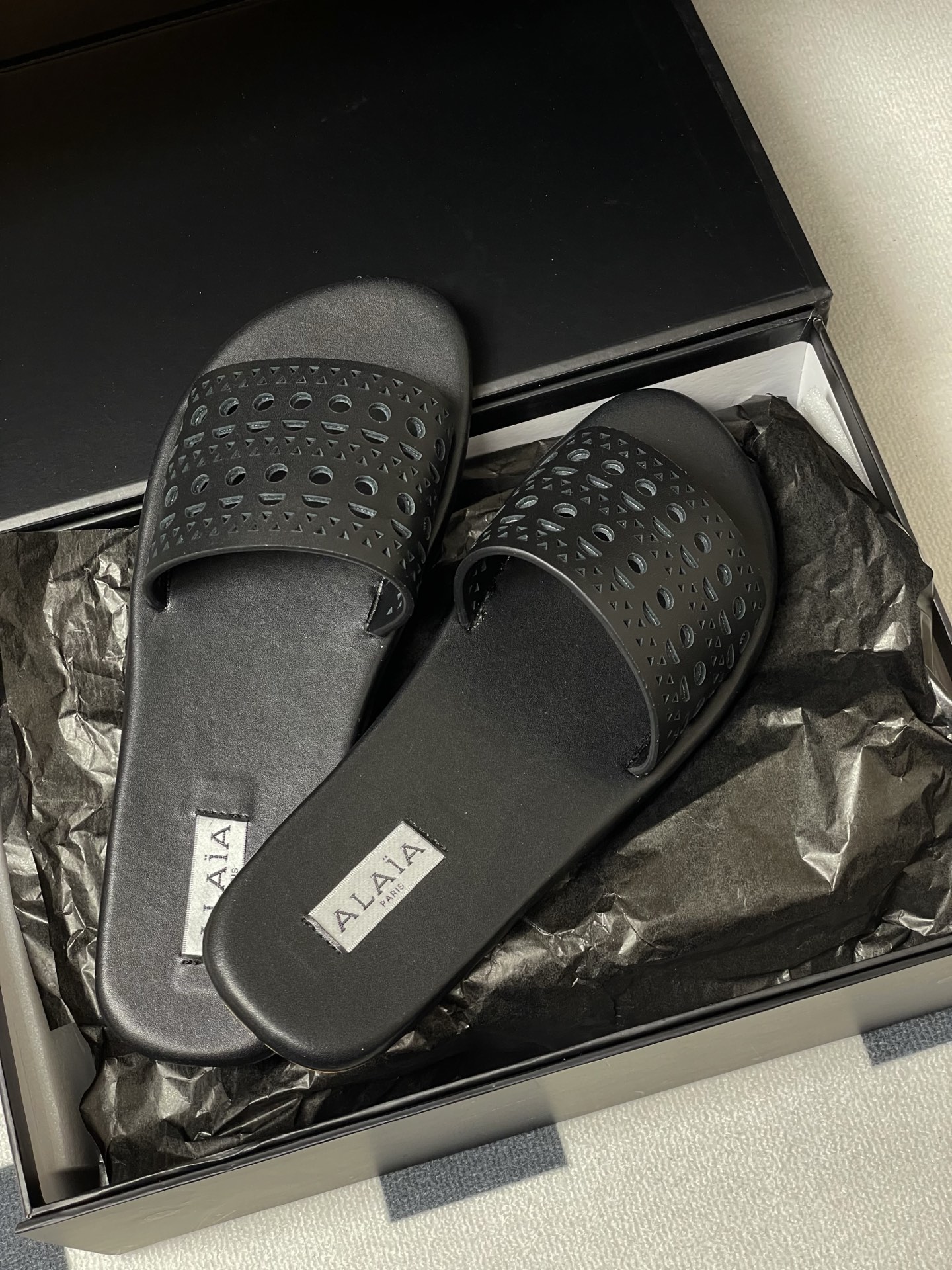 這款鞋子是AAAAA 1:1 質量(非常棒). 使用了和原版一模一樣的材料. 商標部分也保持了和Alaia一樣. 圖片拍攝是實物鞋子拍攝, 您所收到的實物保證和我們圖片一模一樣.