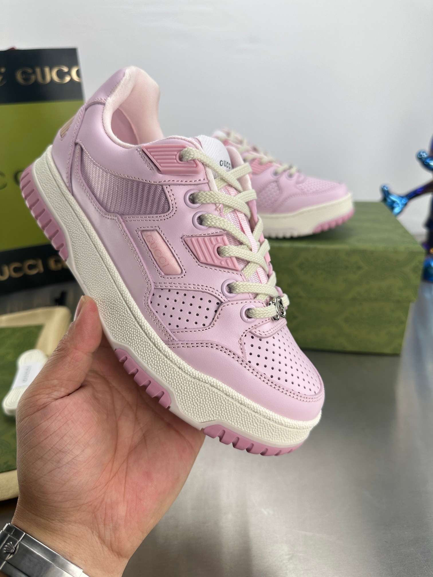 這款鞋子是AAAAA 1:1 質量(非常棒). 使用了和原版一模一樣的材料. 商標部分也保持了和古奇/Gucci一樣. 圖片拍攝是實物鞋子拍攝, 您所收到的實物保證和我們圖片一模一樣.