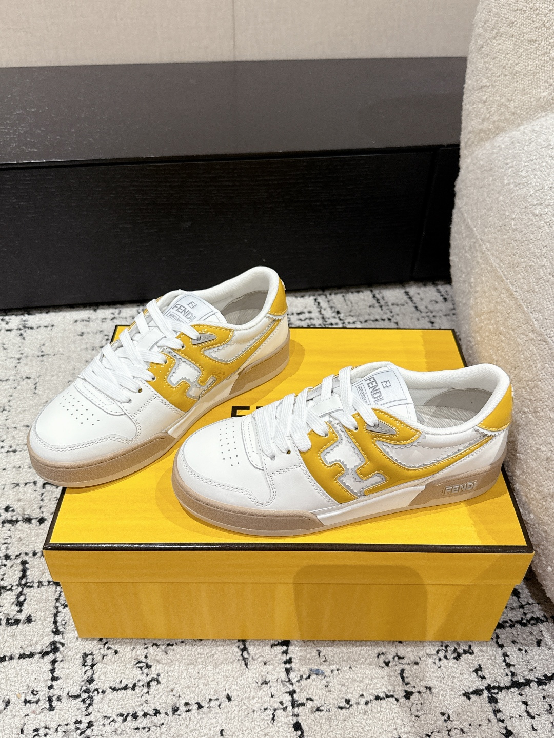 這款鞋子是AAAAA 1:1 質量(非常棒). 使用了和原版一模一樣的材料. 商標部分也保持了和芬迪/Fendi一樣. 圖片拍攝是實物鞋子拍攝, 您所收到的實物保證和我們圖片一模一樣.