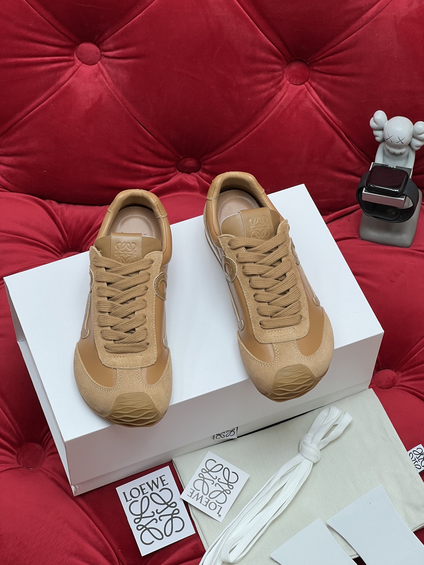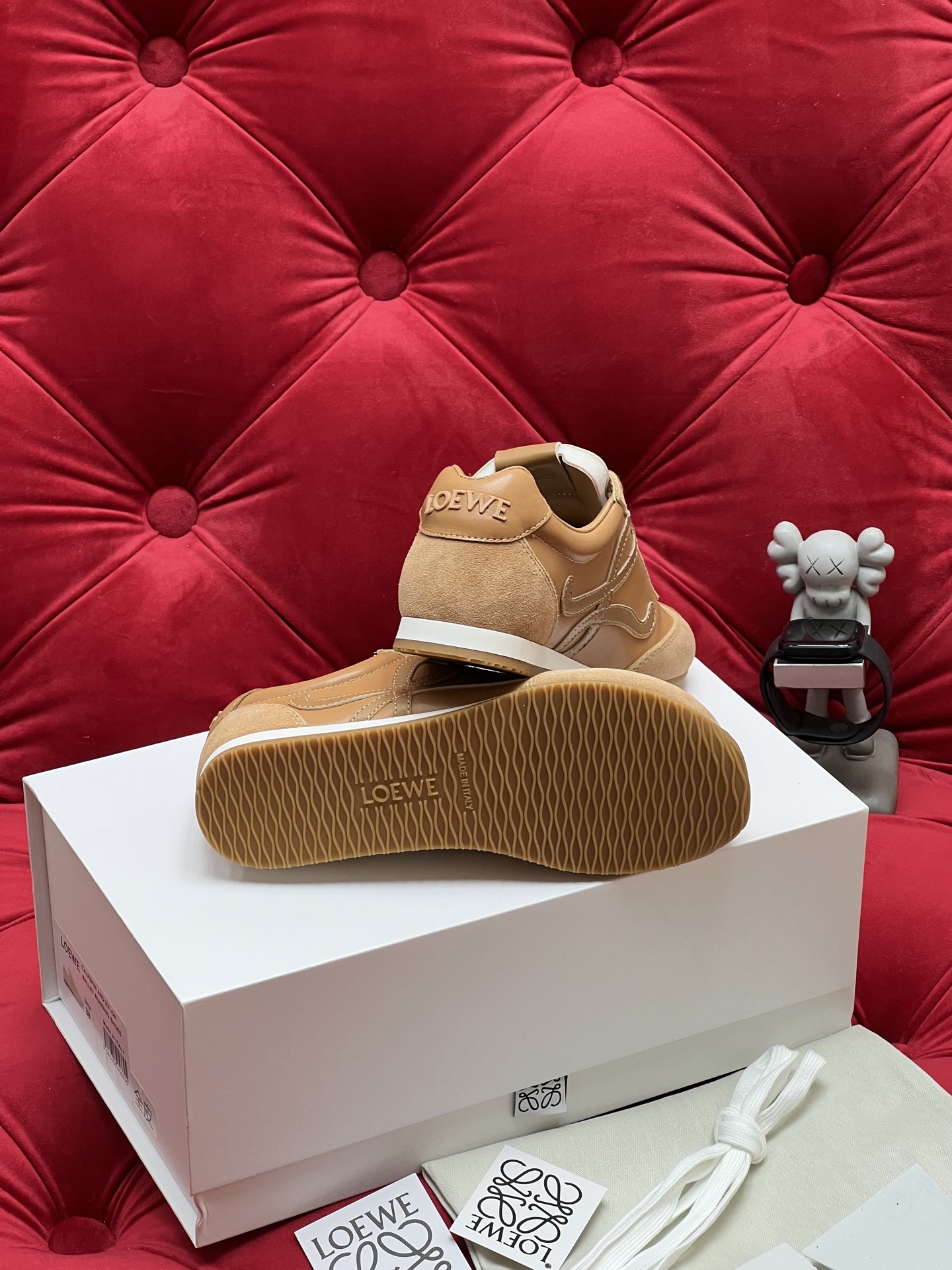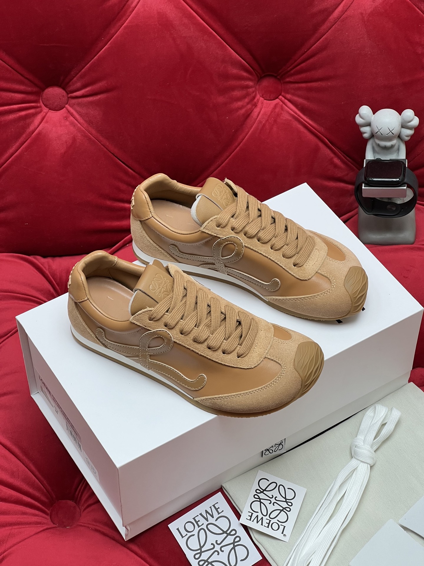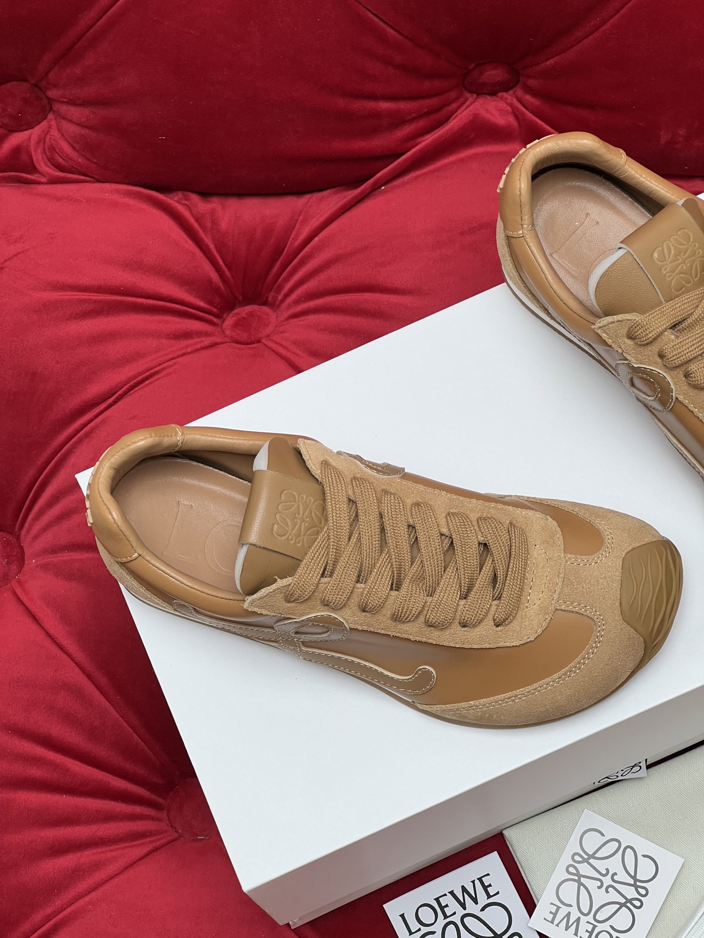 這款鞋子是AAAAA 1:1 質量(非常棒). 使用了和原版一模一樣的材料. 商標部分也保持了和Loewe一樣. 圖片拍攝是實物鞋子拍攝, 您所收到的實物保證和我們圖片一模一樣.