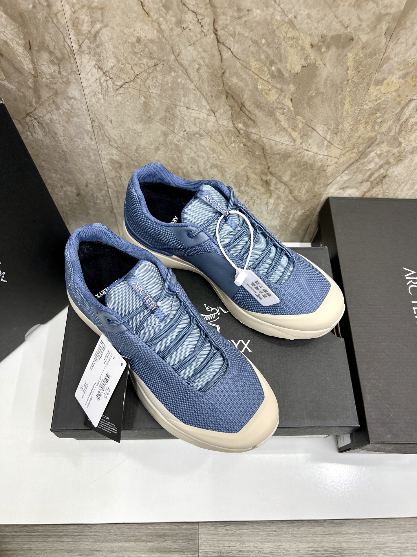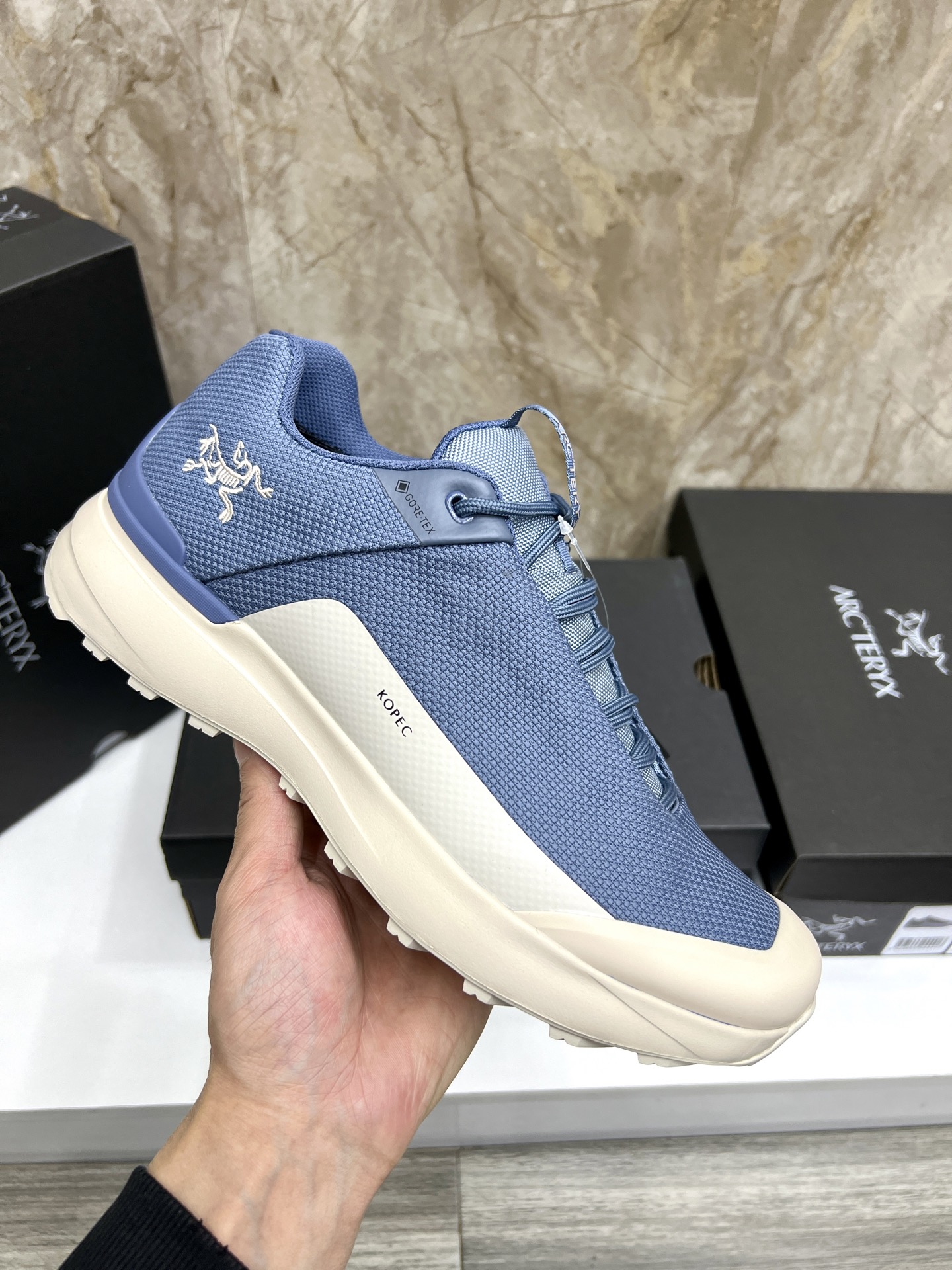 這款鞋子是AAAAA 1:1 質量(非常棒). 使用了和原版一模一樣的材料. 商標部分也保持了和ARC'TERYX一樣. 圖片拍攝是實物鞋子拍攝, 您所收到的實物保證和我們圖片一模一樣.