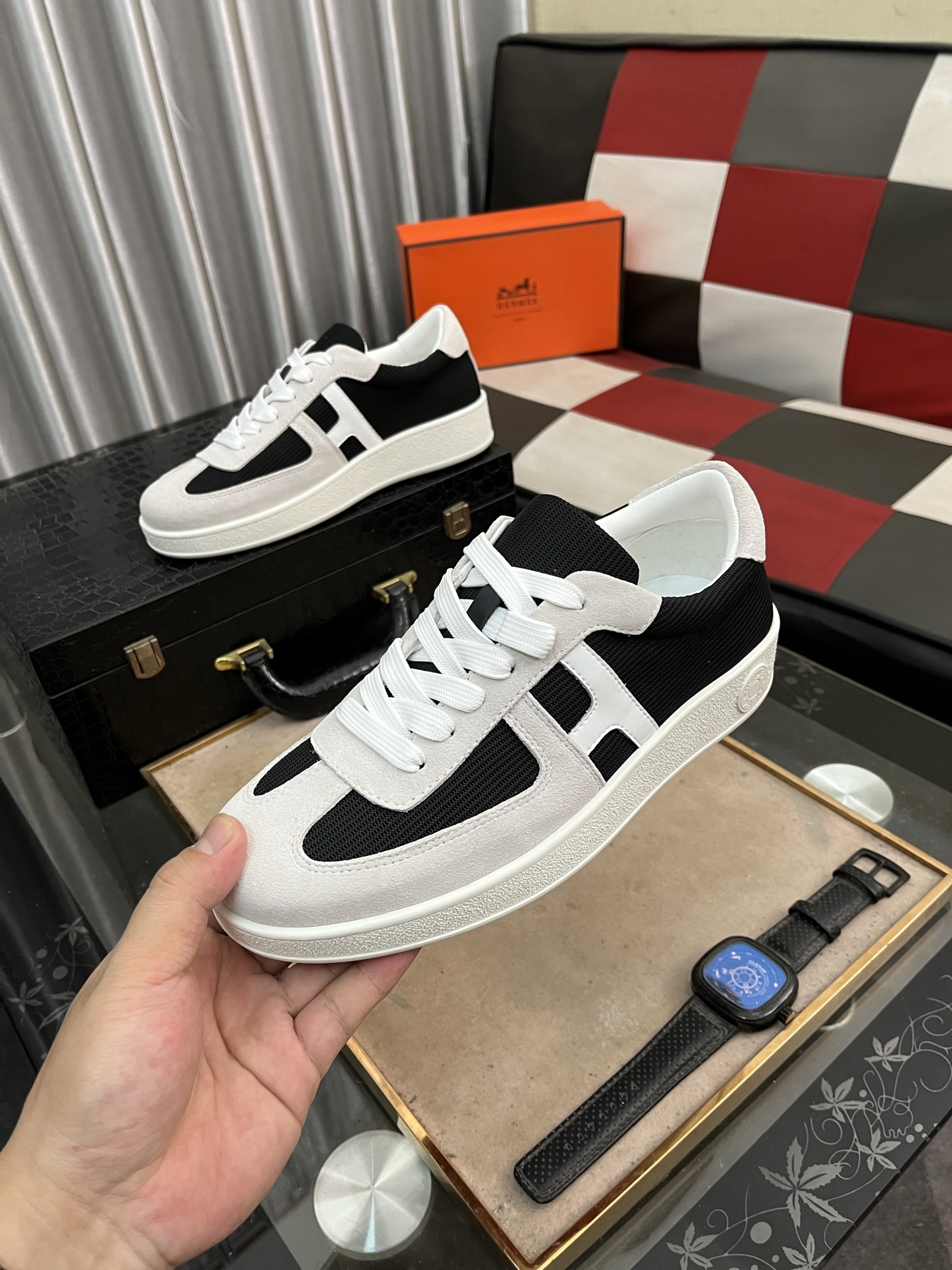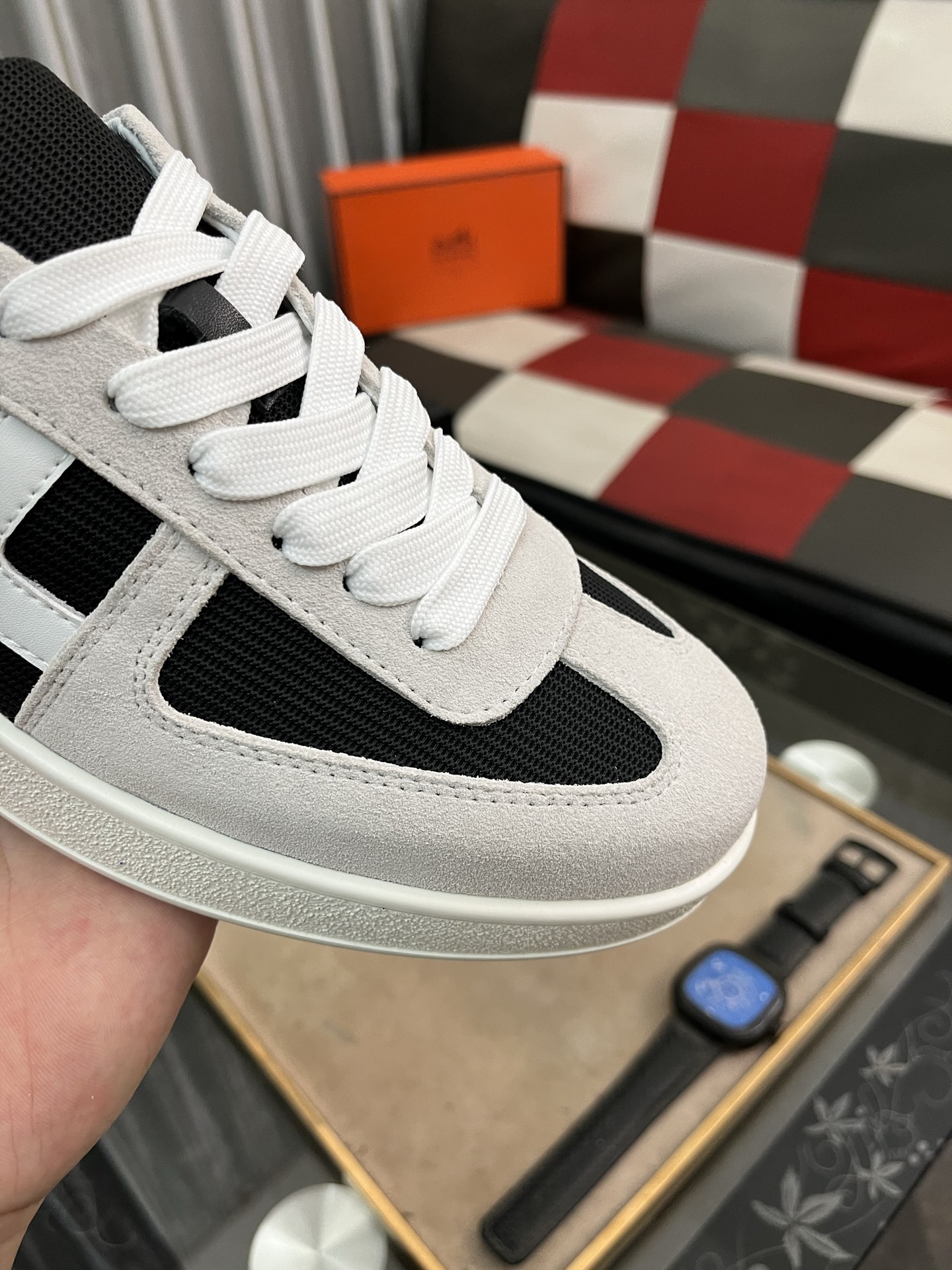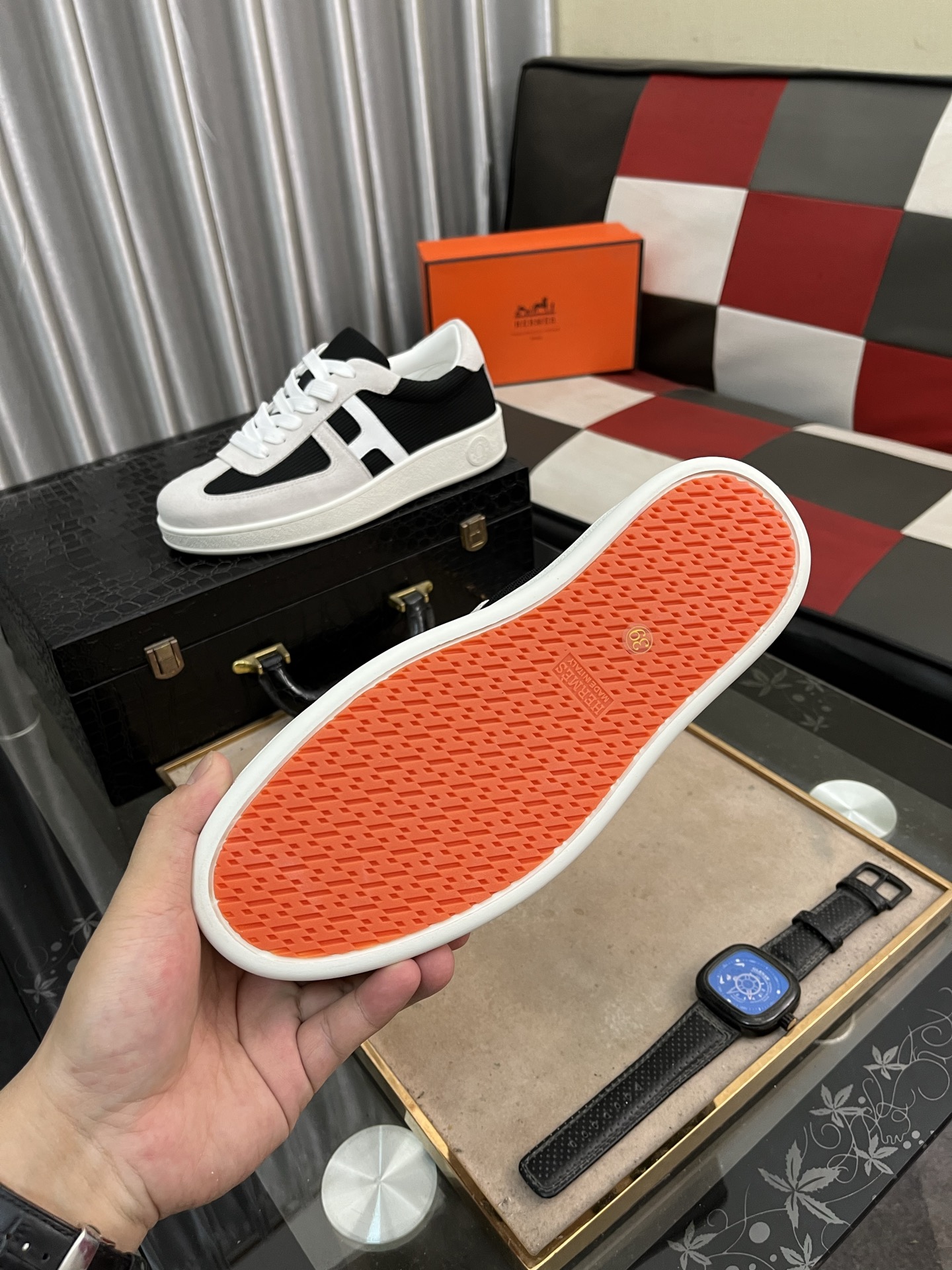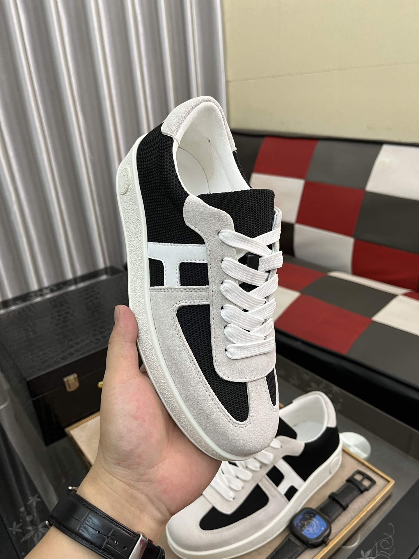 這款鞋子是AAAAA 1:1 質量(非常棒). 使用了和原版一模一樣的材料. 商標部分也保持了和愛馬仕/Hermes一樣. 圖片拍攝是實物鞋子拍攝, 您所收到的實物保證和我們圖片一模一樣.