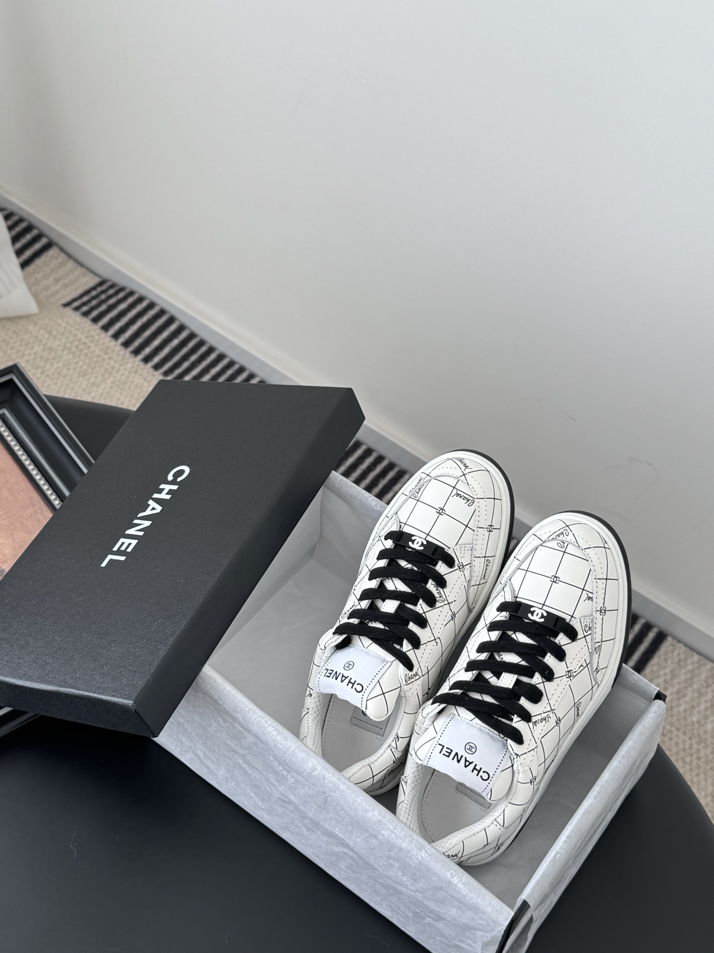 這款鞋子是AAAAA 1:1 質量(非常棒). 使用了和原版一模一樣的材料. 商標部分也保持了和香奈兒/Chanel一樣. 圖片拍攝是實物鞋子拍攝, 您所收到的實物保證和我們圖片一模一樣.