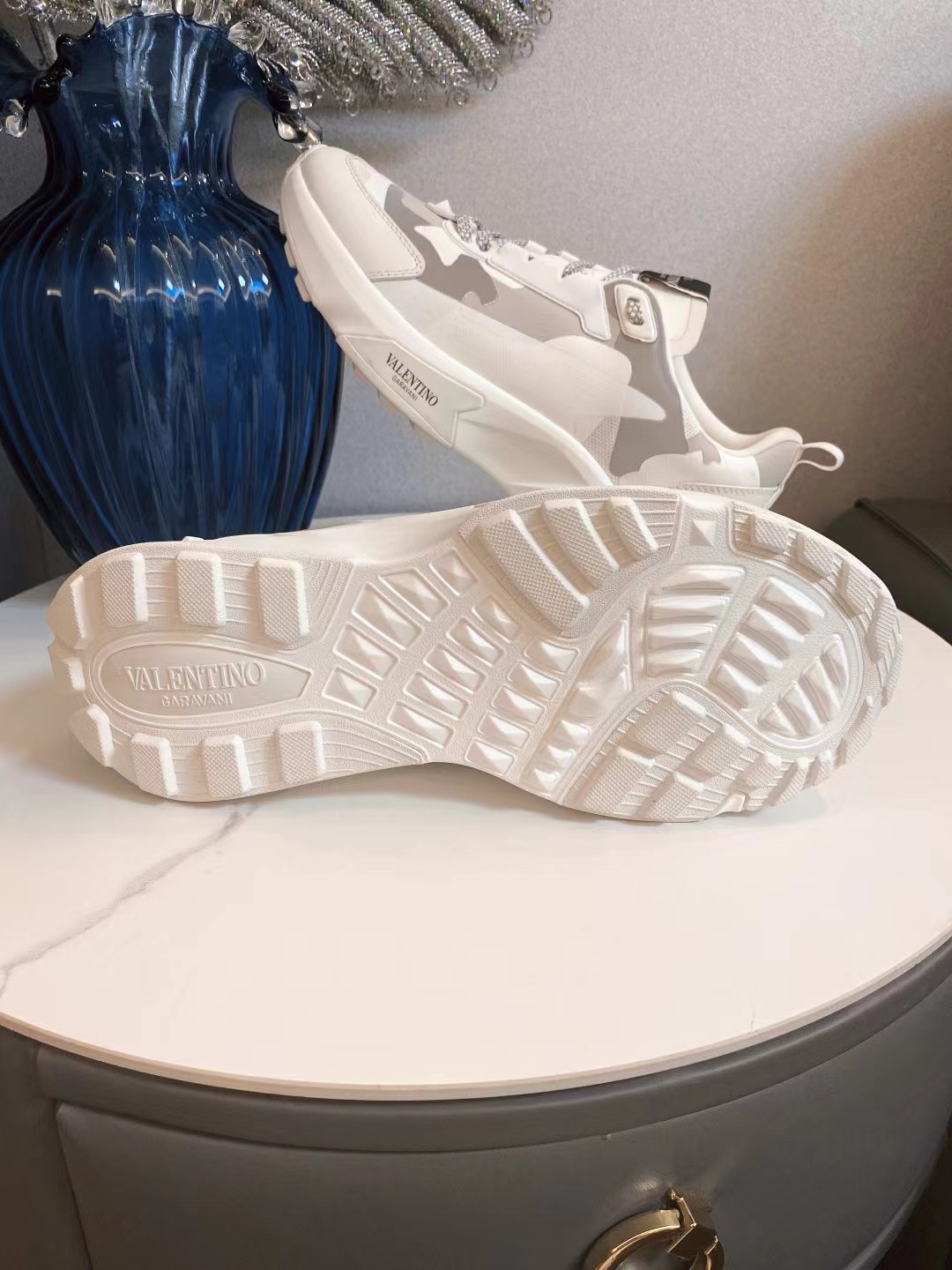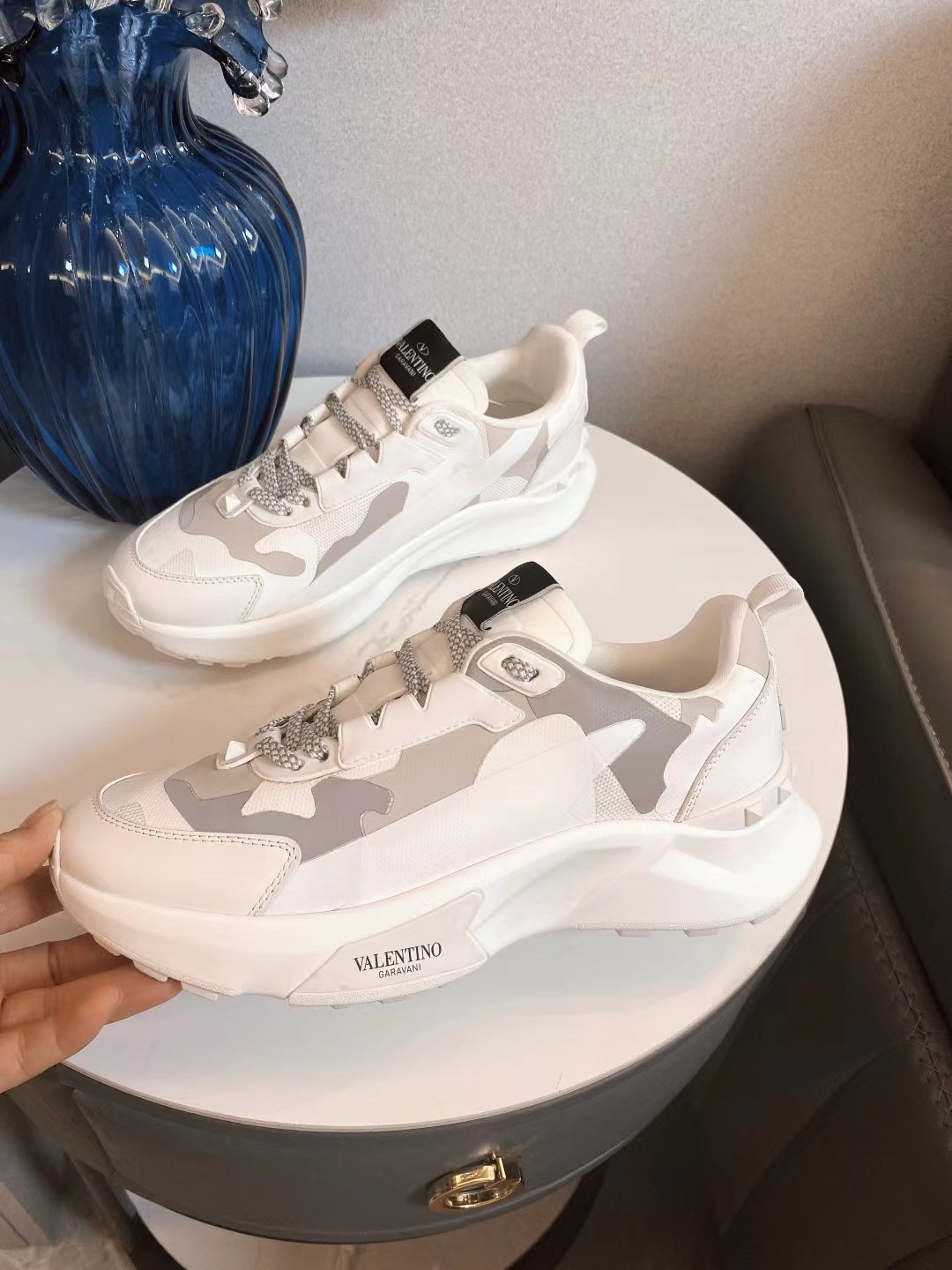 這款鞋子是AAAAA 1:1 質量(非常棒). 使用了和原版一模一樣的材料. 商標部分也保持了和瓦倫蒂諾/Valentino一樣. 圖片拍攝是實物鞋子拍攝, 您所收到的實物保證和我們圖片一模一樣.