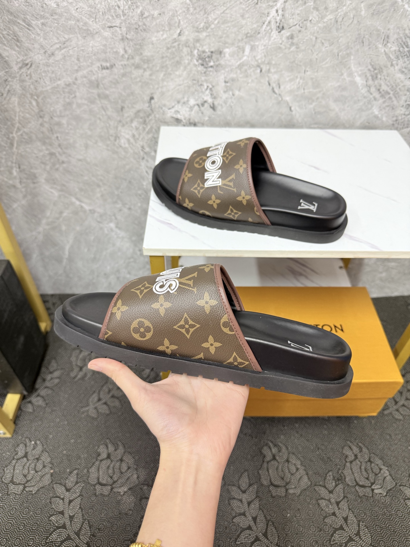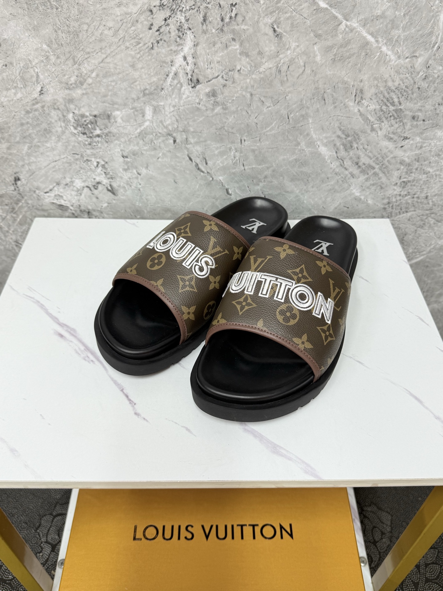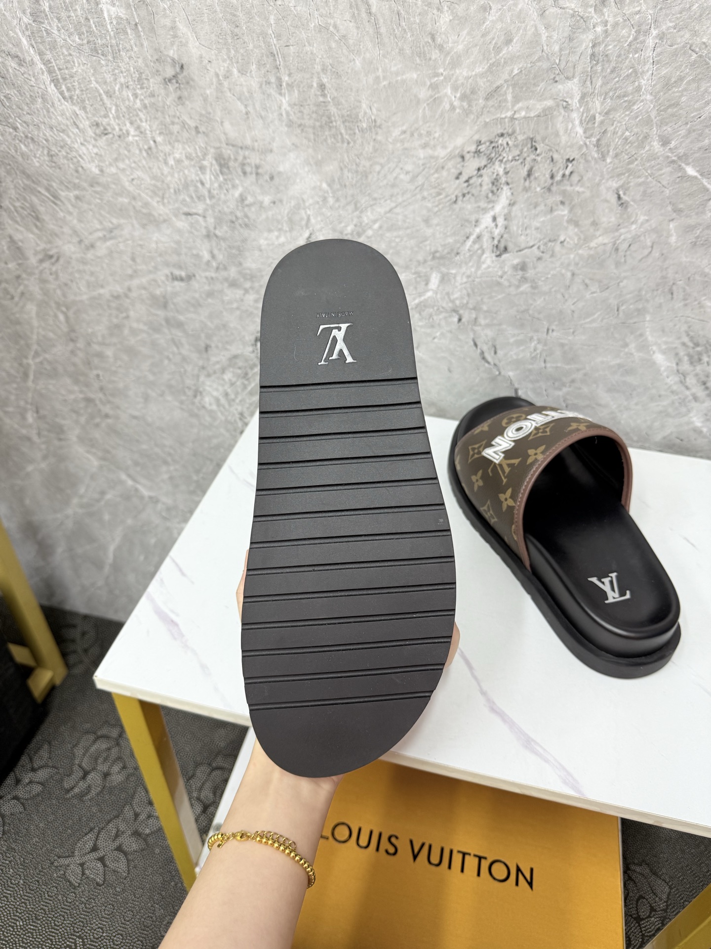 這款鞋子是AAAAA 1:1 質量(非常棒). 使用了和原版一模一樣的材料. 商標部分也保持了和路易威登/Louis Vuitton一樣. 圖片拍攝是實物鞋子拍攝, 您所收到的實物保證和我們圖片一模一樣.