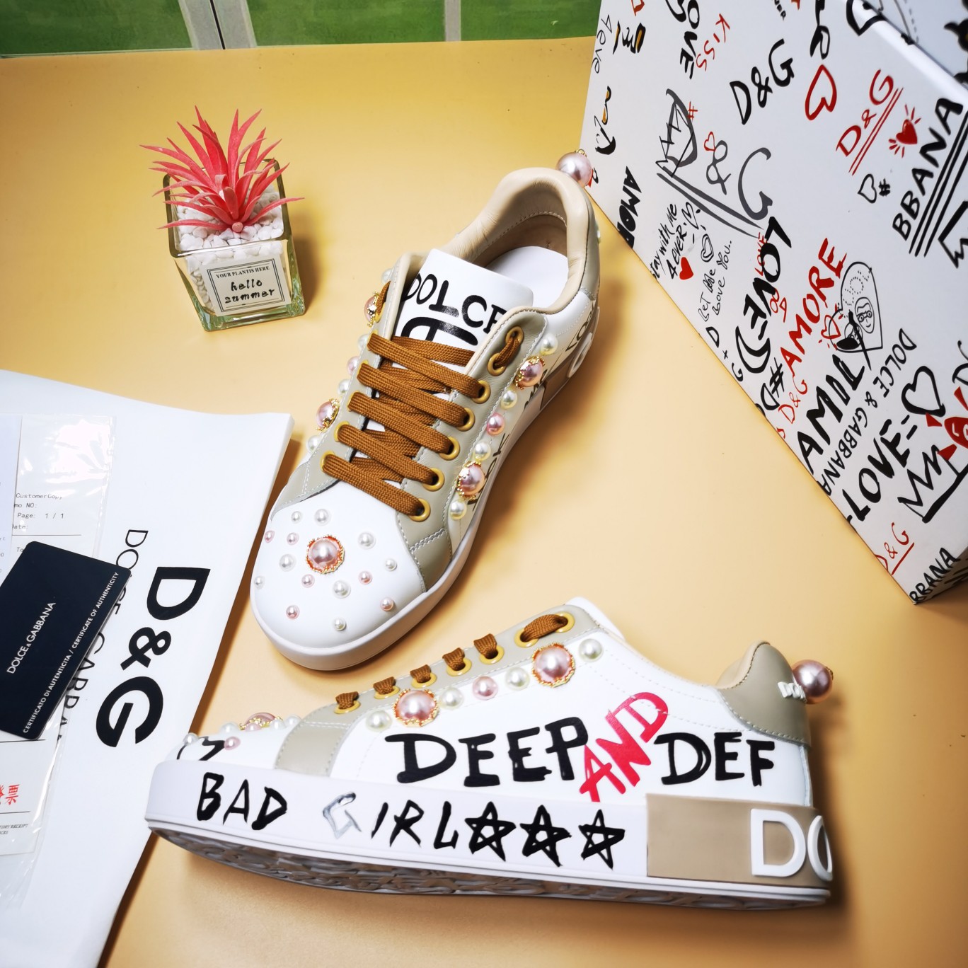 這款鞋子是AAAAA 1:1 質量(非常棒). 使用了和原版一模一樣的材料. 商標部分也保持了和杜嘉班納/Dolce&Gabbana一樣. 圖片拍攝是實物鞋子拍攝, 您所收到的實物保證和我們圖片一模一樣.
