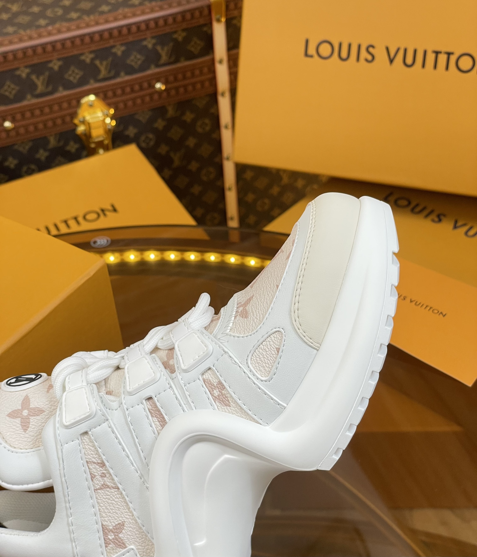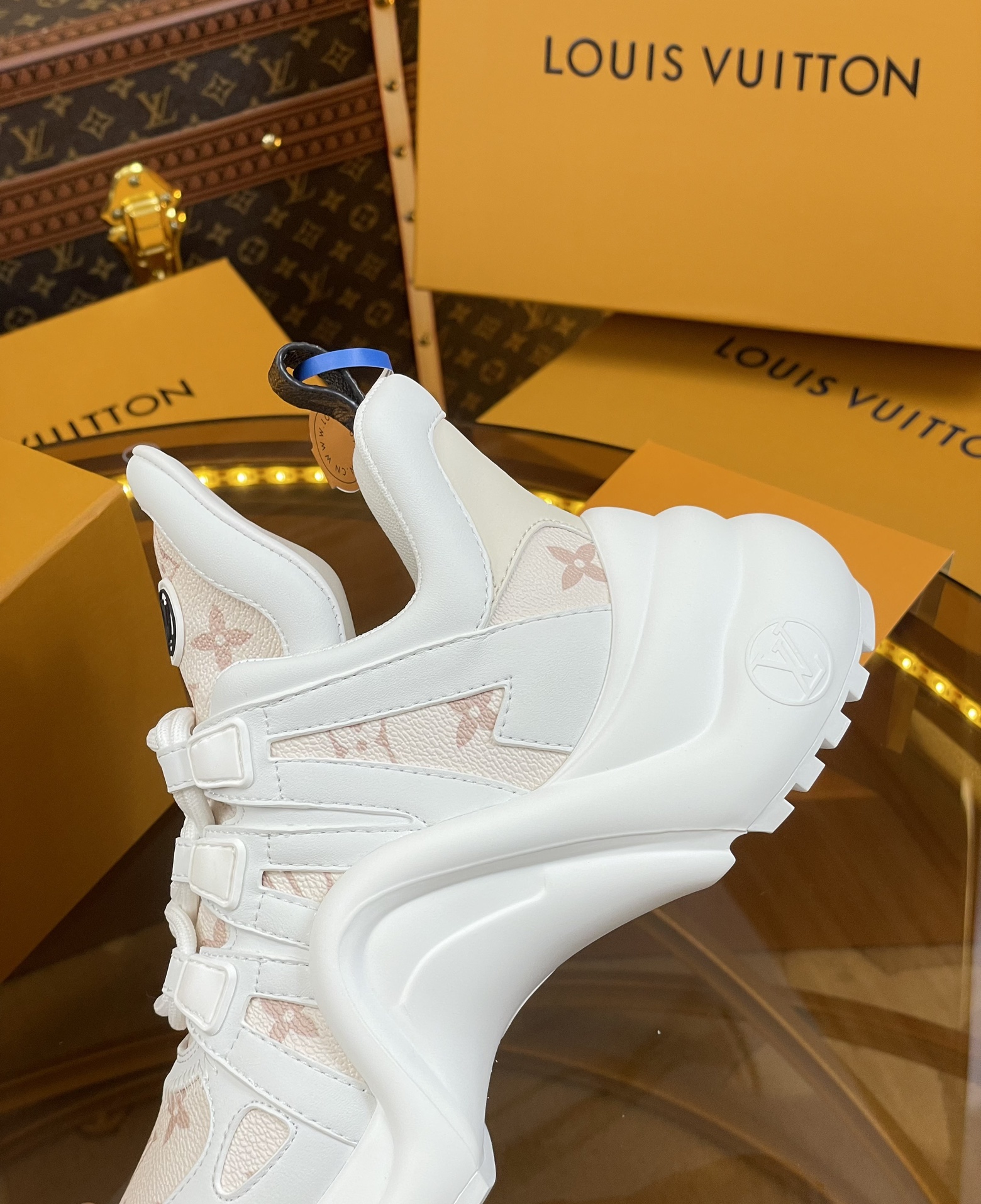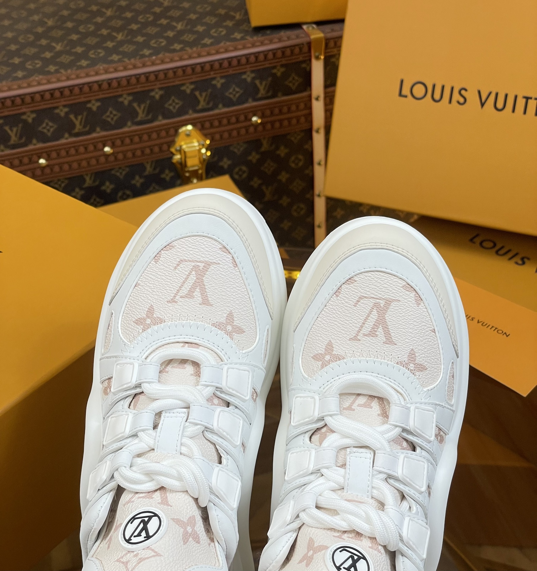 這款鞋子是AAAAA 1:1 質量(非常棒). 使用了和原版一模一樣的材料. 商標部分也保持了和路易威登/Louis Vuitton一樣. 圖片拍攝是實物鞋子拍攝, 您所收到的實物保證和我們圖片一模一樣.