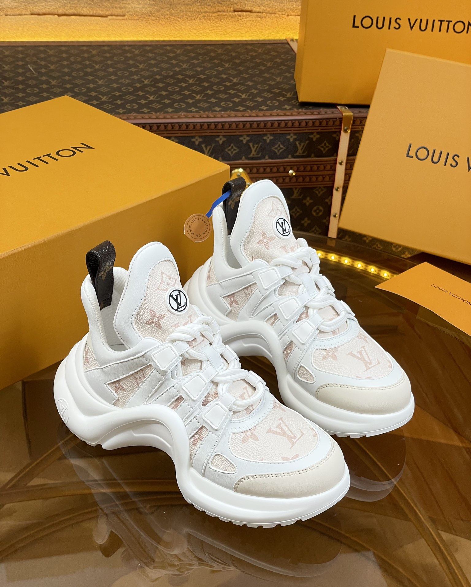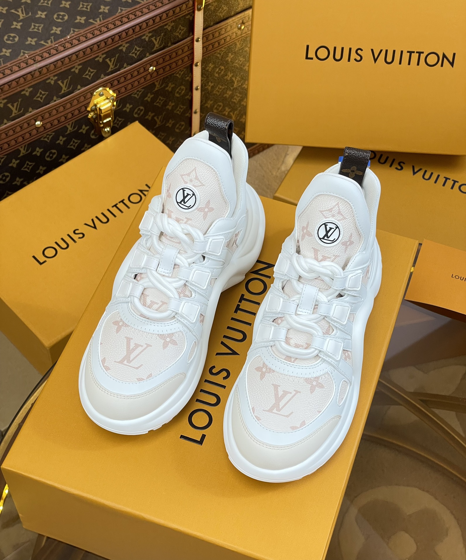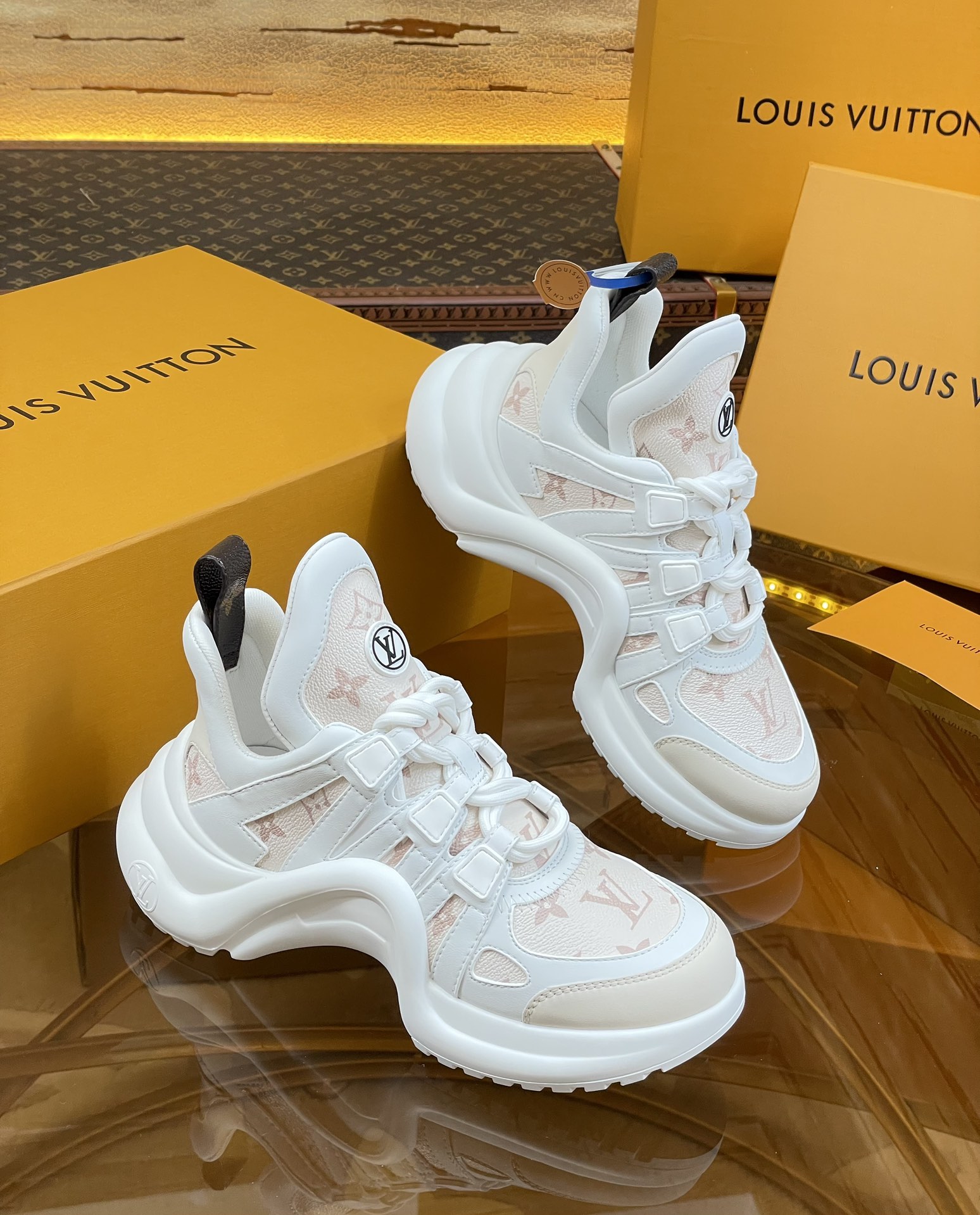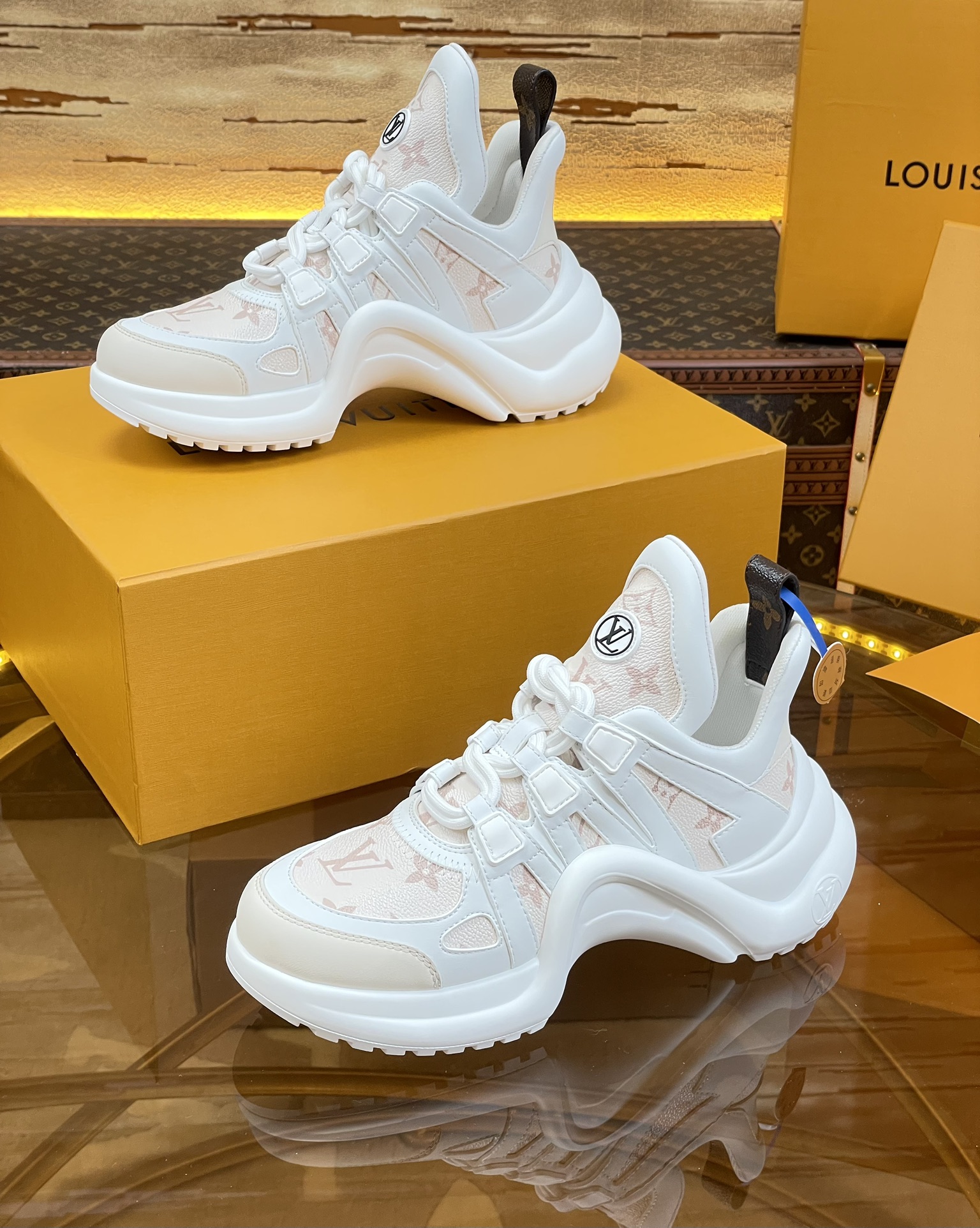 這款鞋子是AAAAA 1:1 質量(非常棒). 使用了和原版一模一樣的材料. 商標部分也保持了和路易威登/Louis Vuitton一樣. 圖片拍攝是實物鞋子拍攝, 您所收到的實物保證和我們圖片一模一樣.