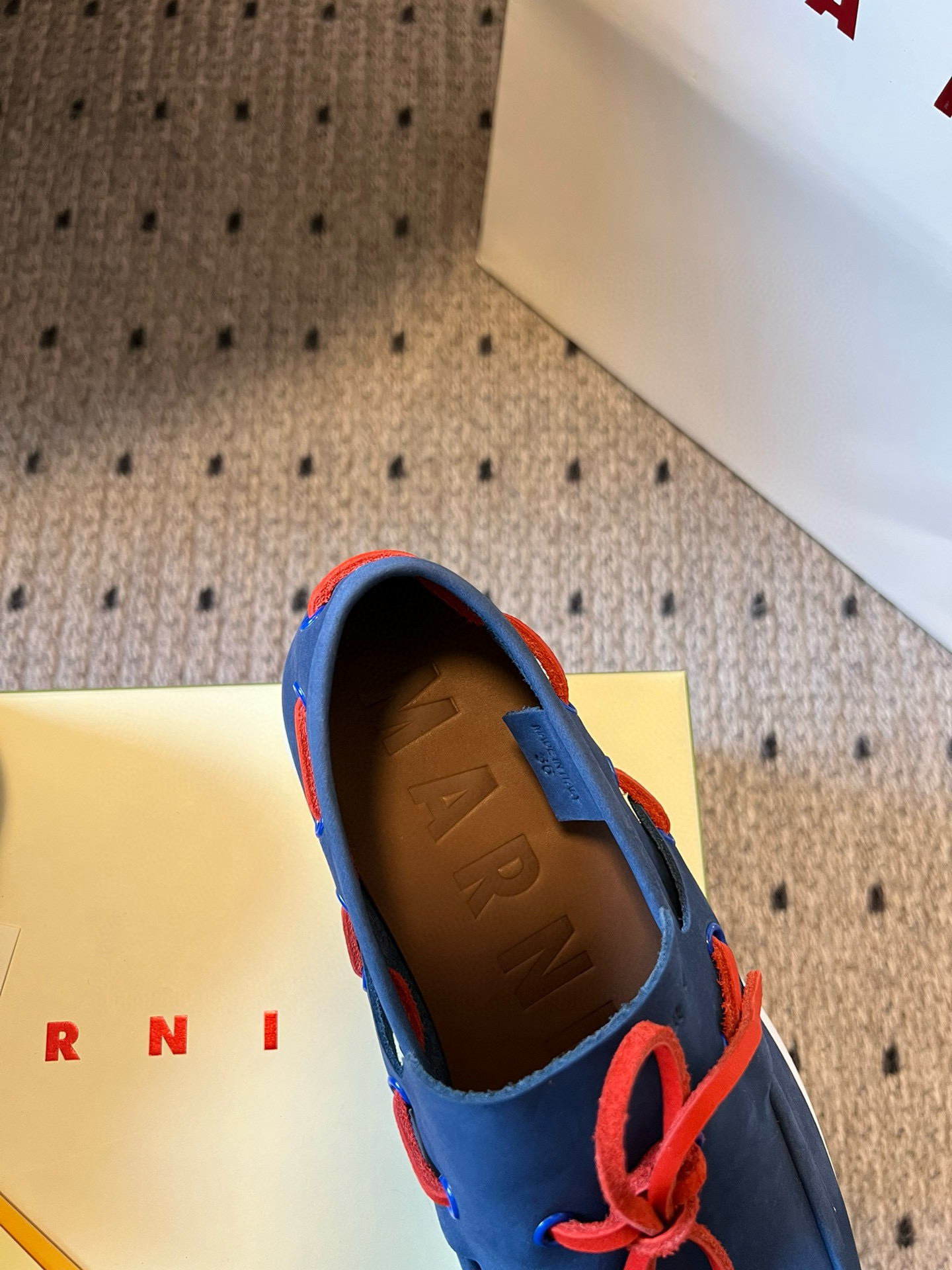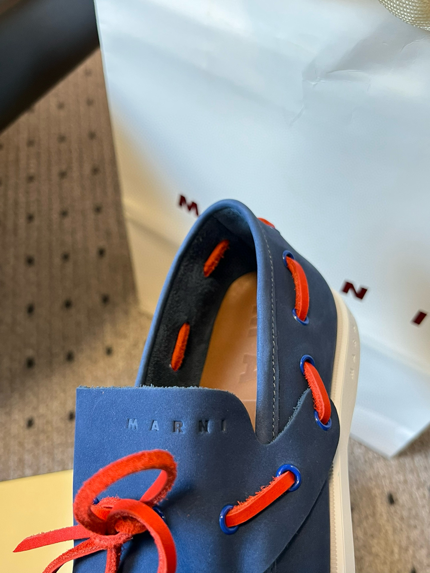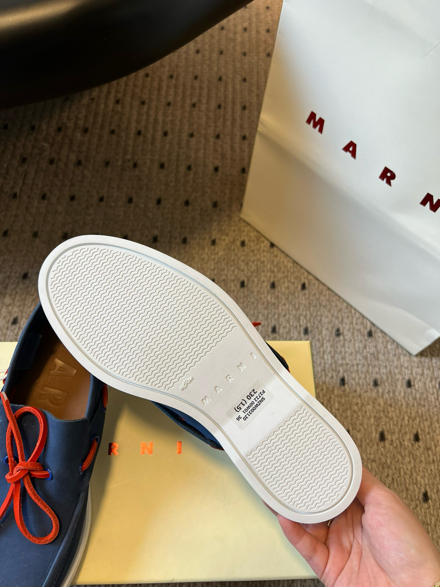 這款鞋子是AAAAA 1:1 質量(非常棒). 使用了和原版一模一樣的材料. 商標部分也保持了和馬爾尼/Marni一樣. 圖片拍攝是實物鞋子拍攝, 您所收到的實物保證和我們圖片一模一樣.