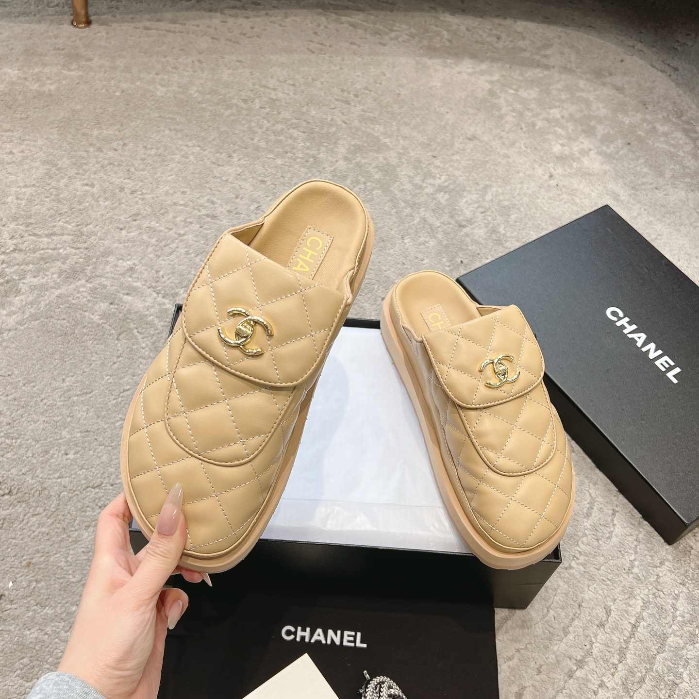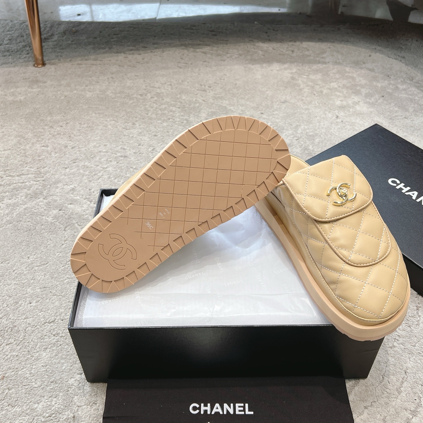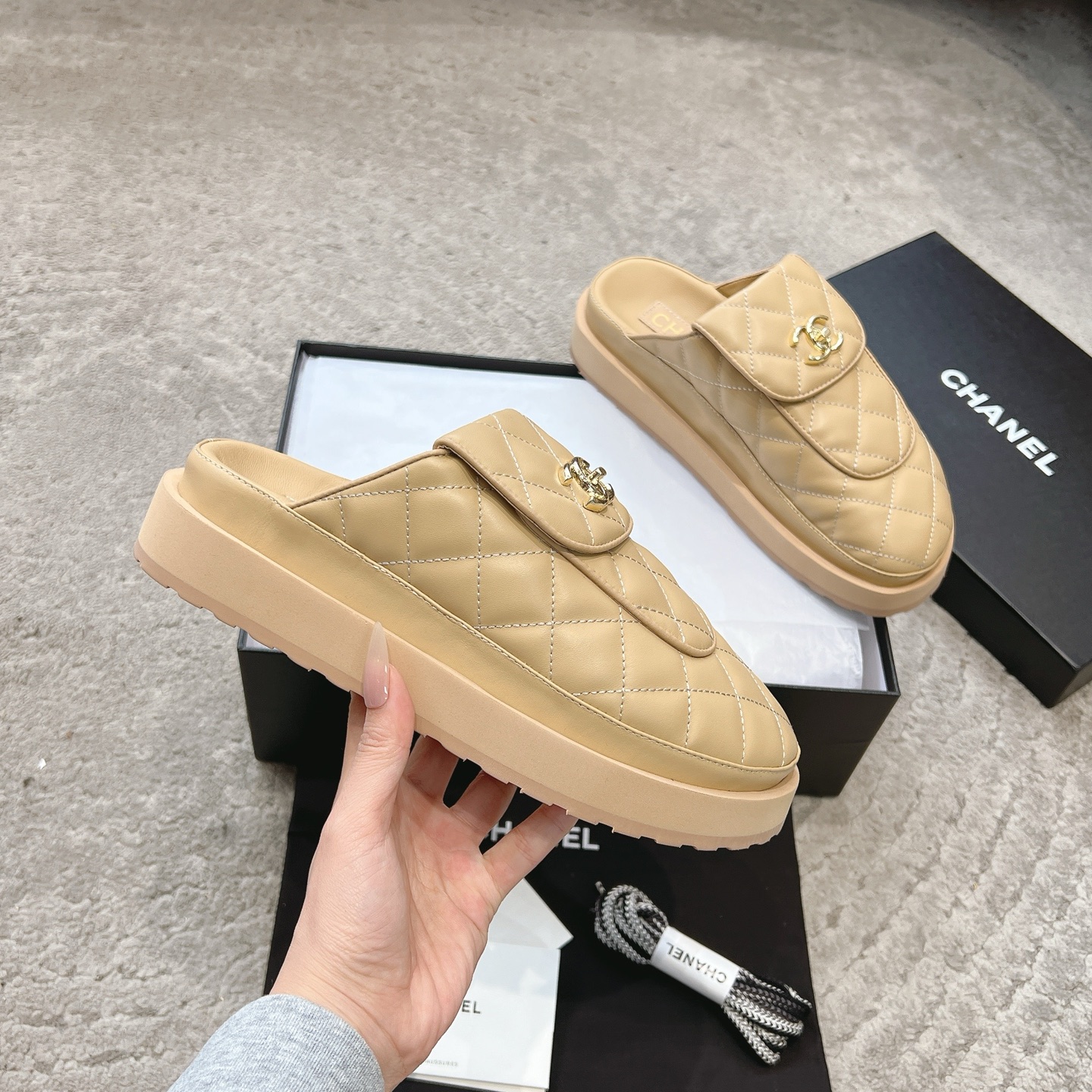 這款鞋子是AAAAA 1:1 質量(非常棒). 使用了和原版一模一樣的材料. 商標部分也保持了和香奈兒/Chanel一樣. 圖片拍攝是實物鞋子拍攝, 您所收到的實物保證和我們圖片一模一樣.