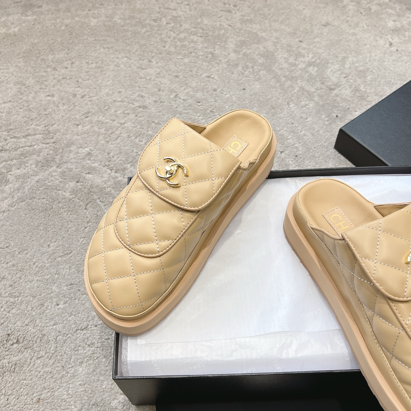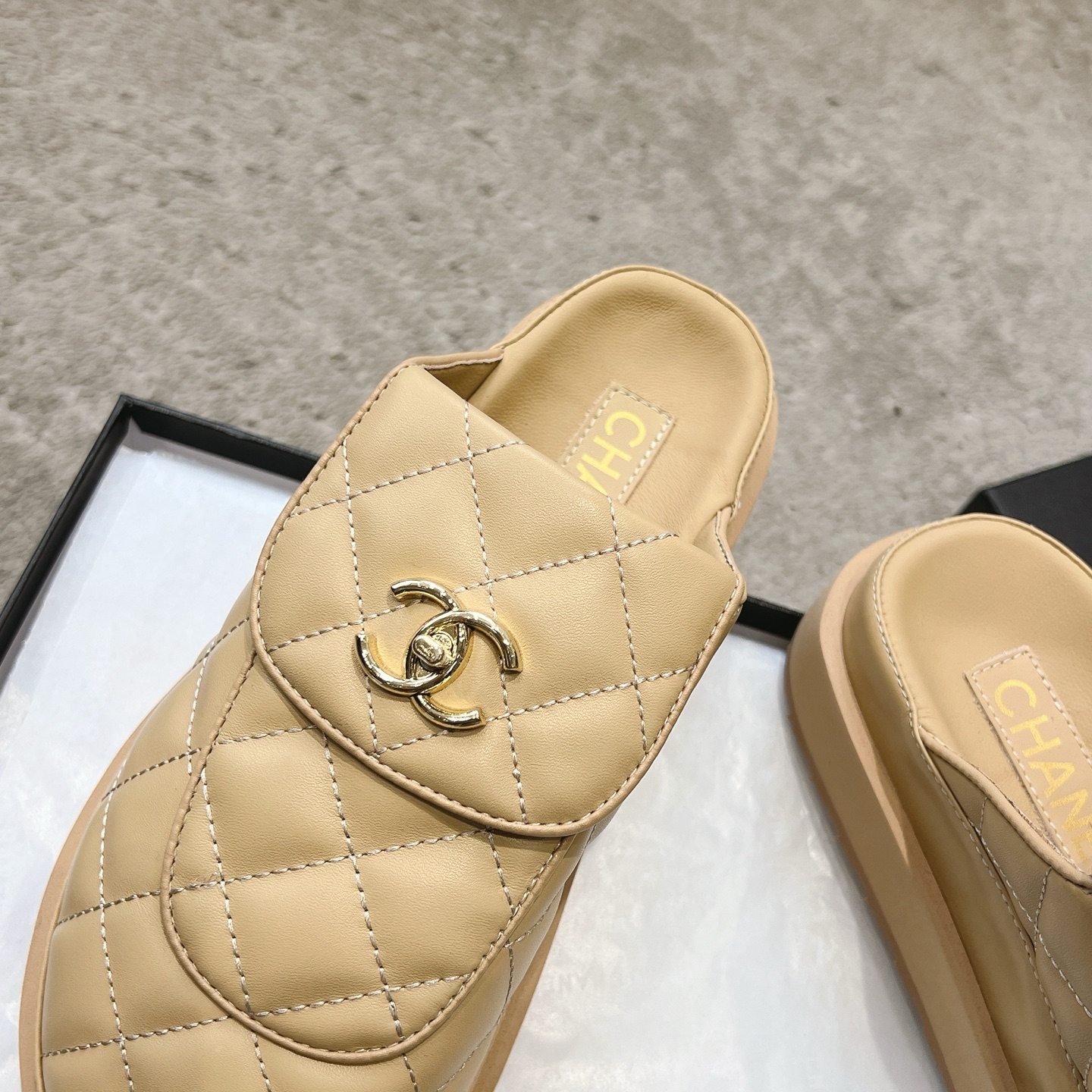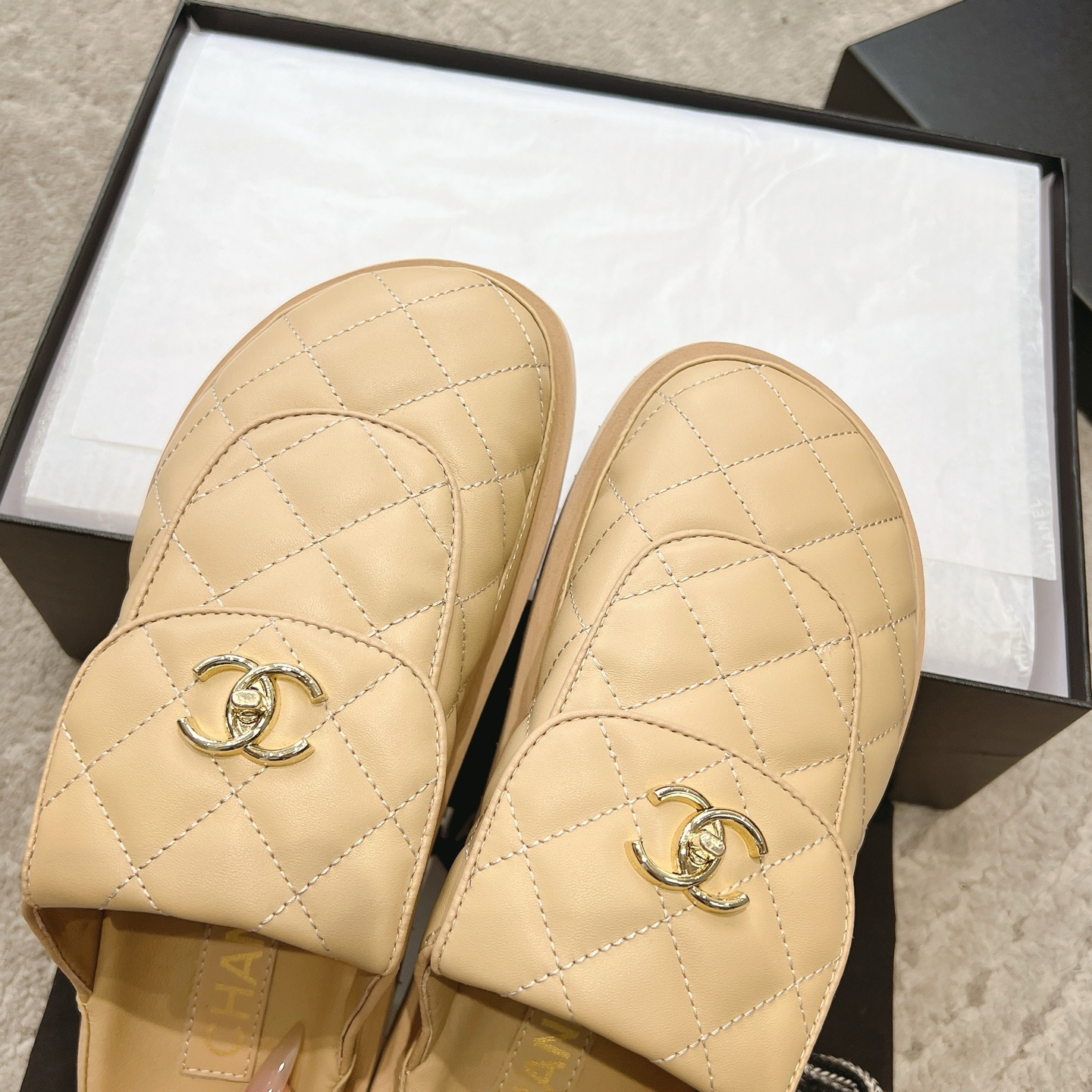 這款鞋子是AAAAA 1:1 質量(非常棒). 使用了和原版一模一樣的材料. 商標部分也保持了和香奈兒/Chanel一樣. 圖片拍攝是實物鞋子拍攝, 您所收到的實物保證和我們圖片一模一樣.