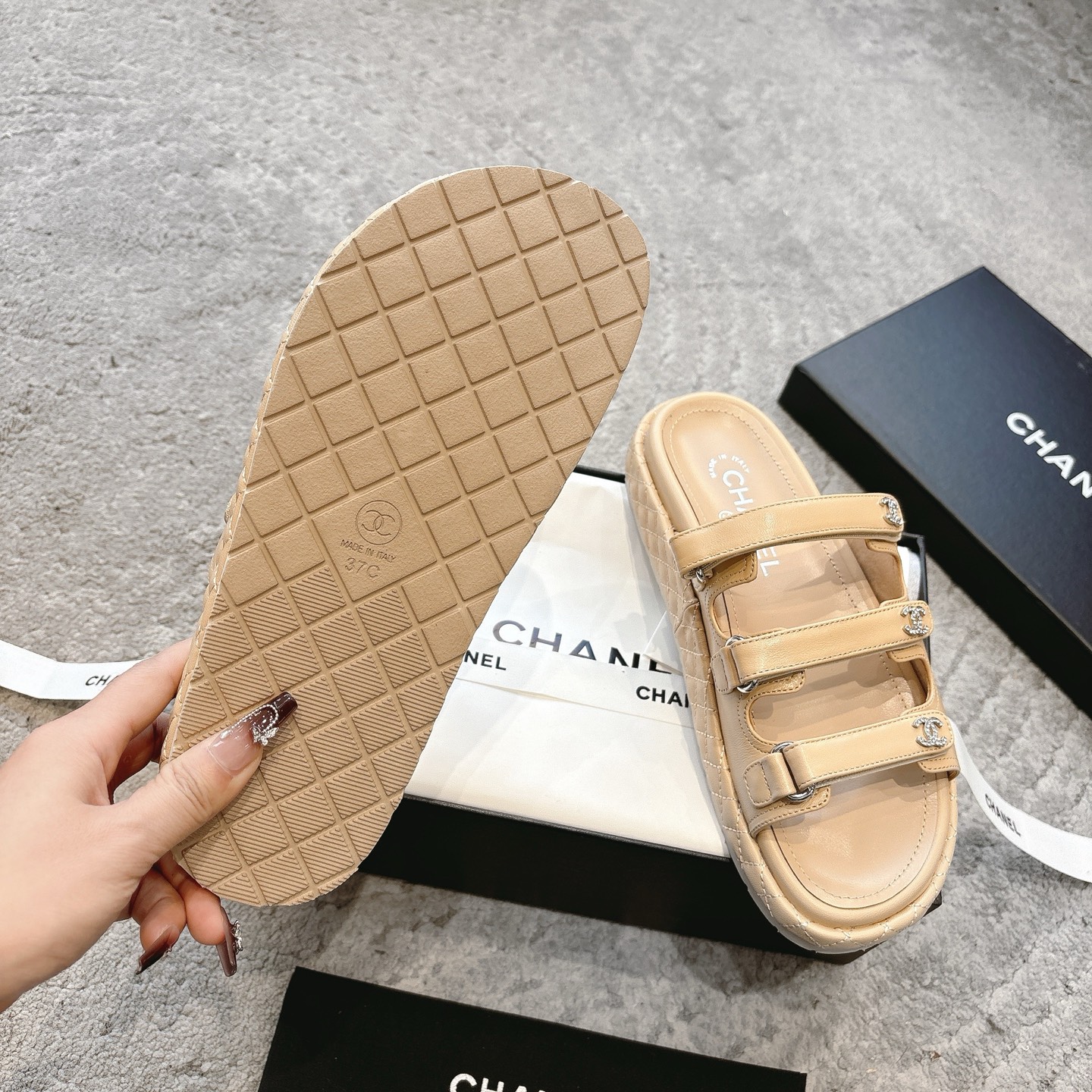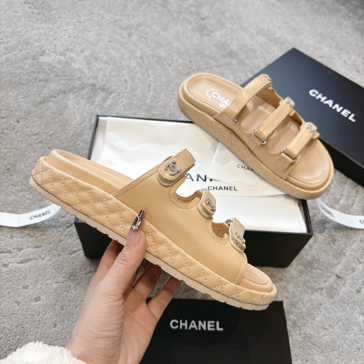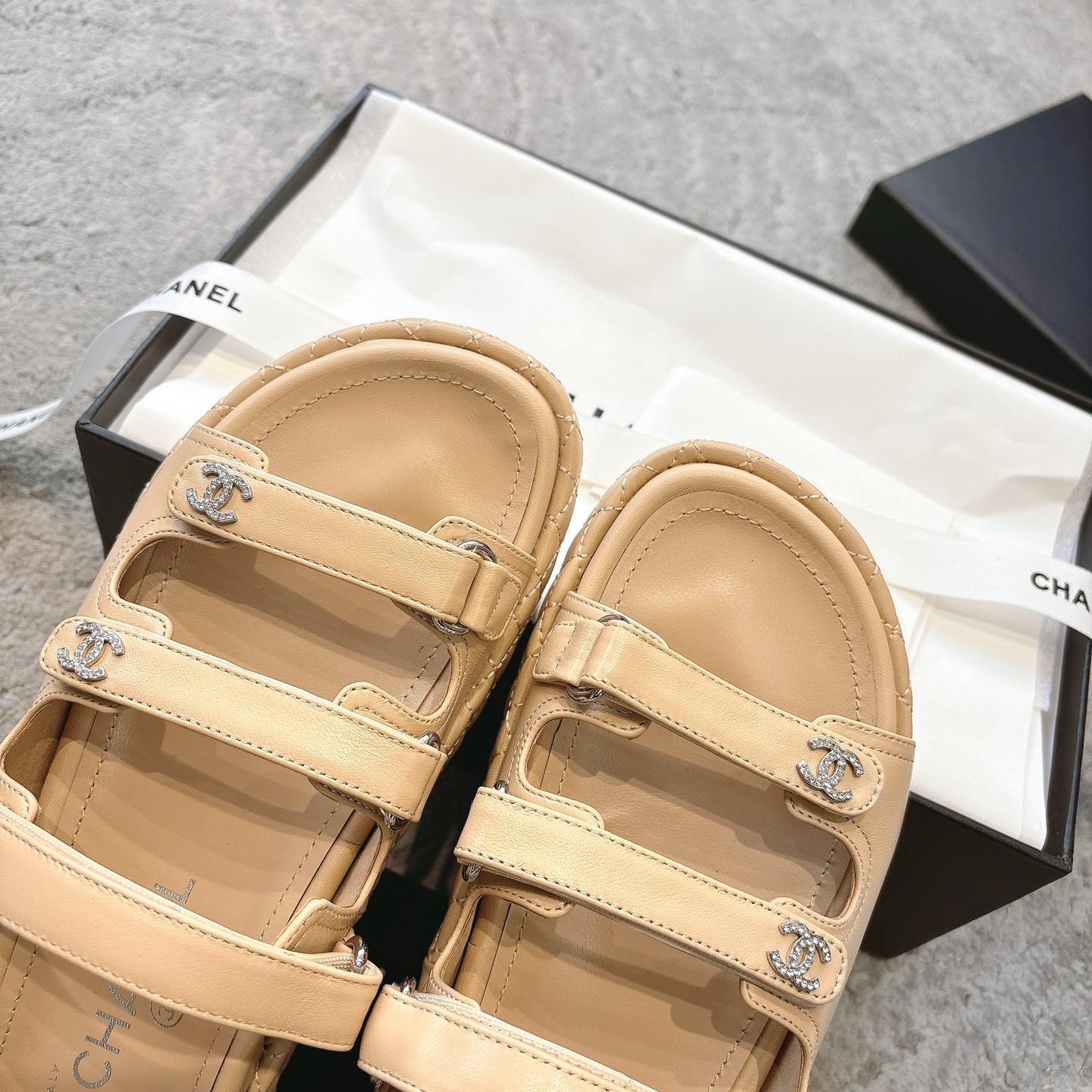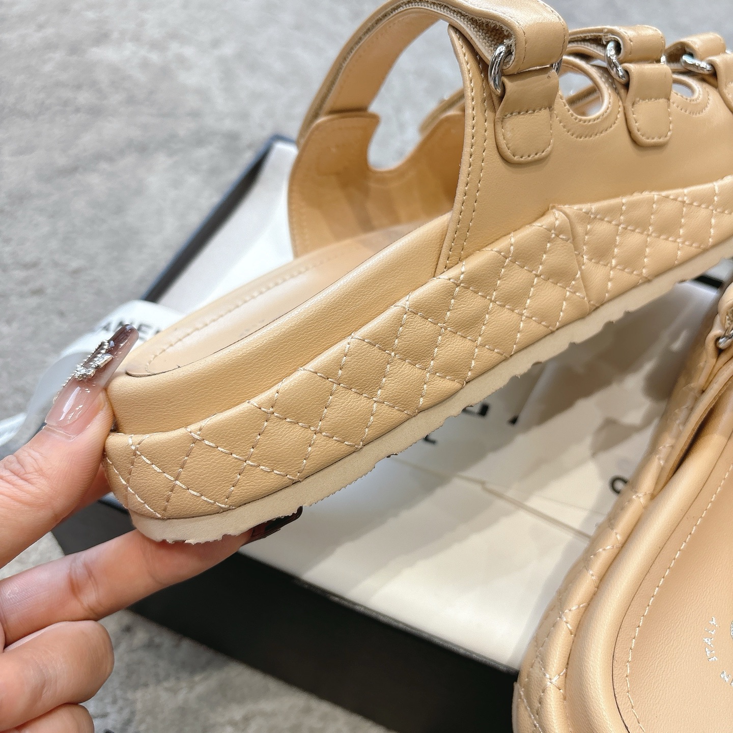 這款鞋子是AAAAA 1:1 質量(非常棒). 使用了和原版一模一樣的材料. 商標部分也保持了和香奈兒/Chanel一樣. 圖片拍攝是實物鞋子拍攝, 您所收到的實物保證和我們圖片一模一樣.