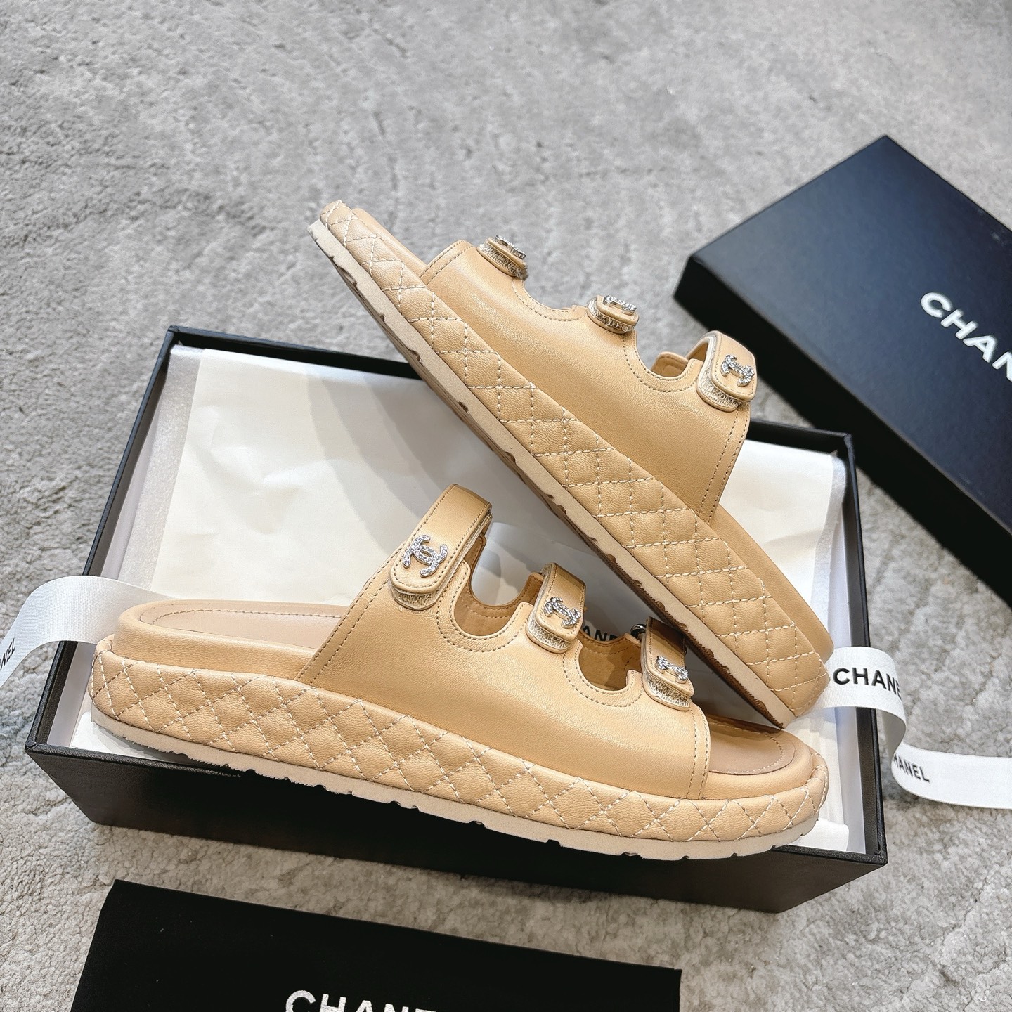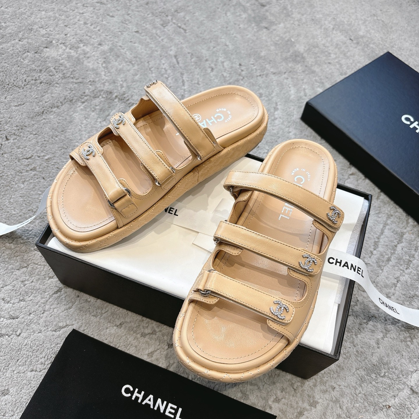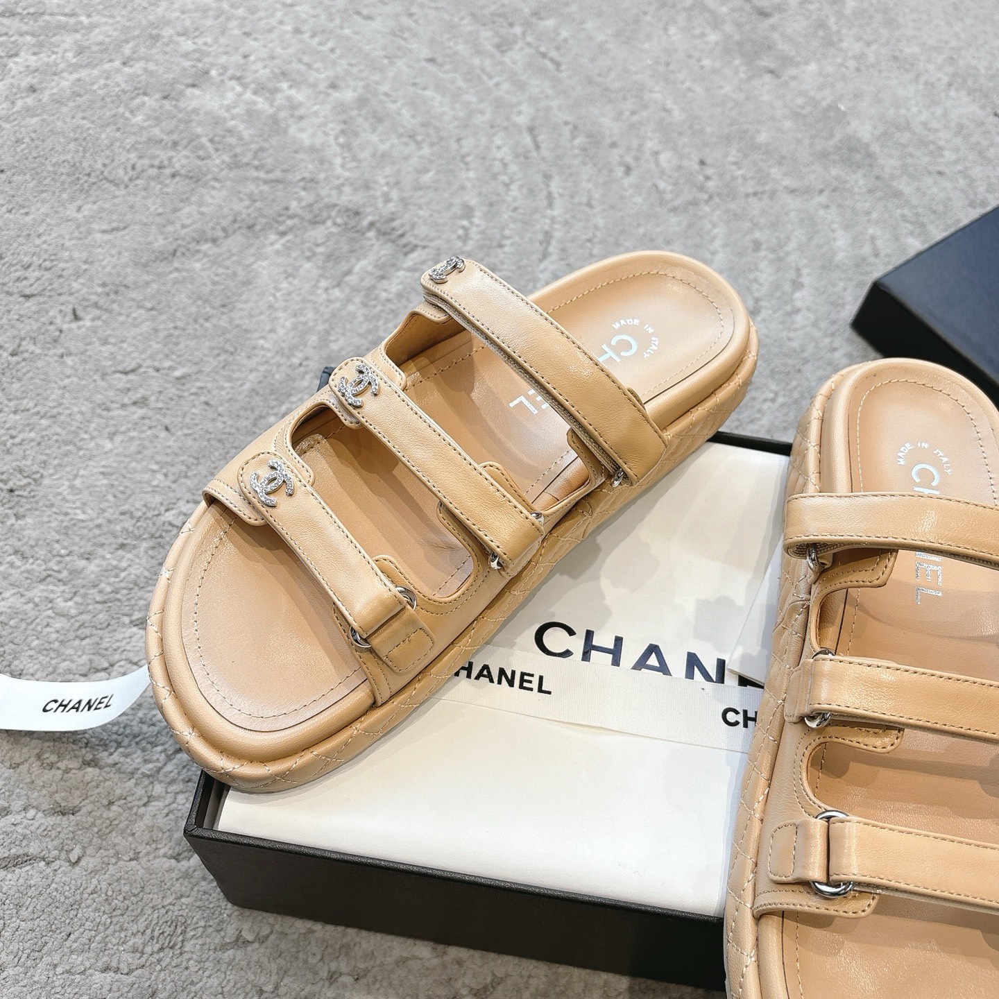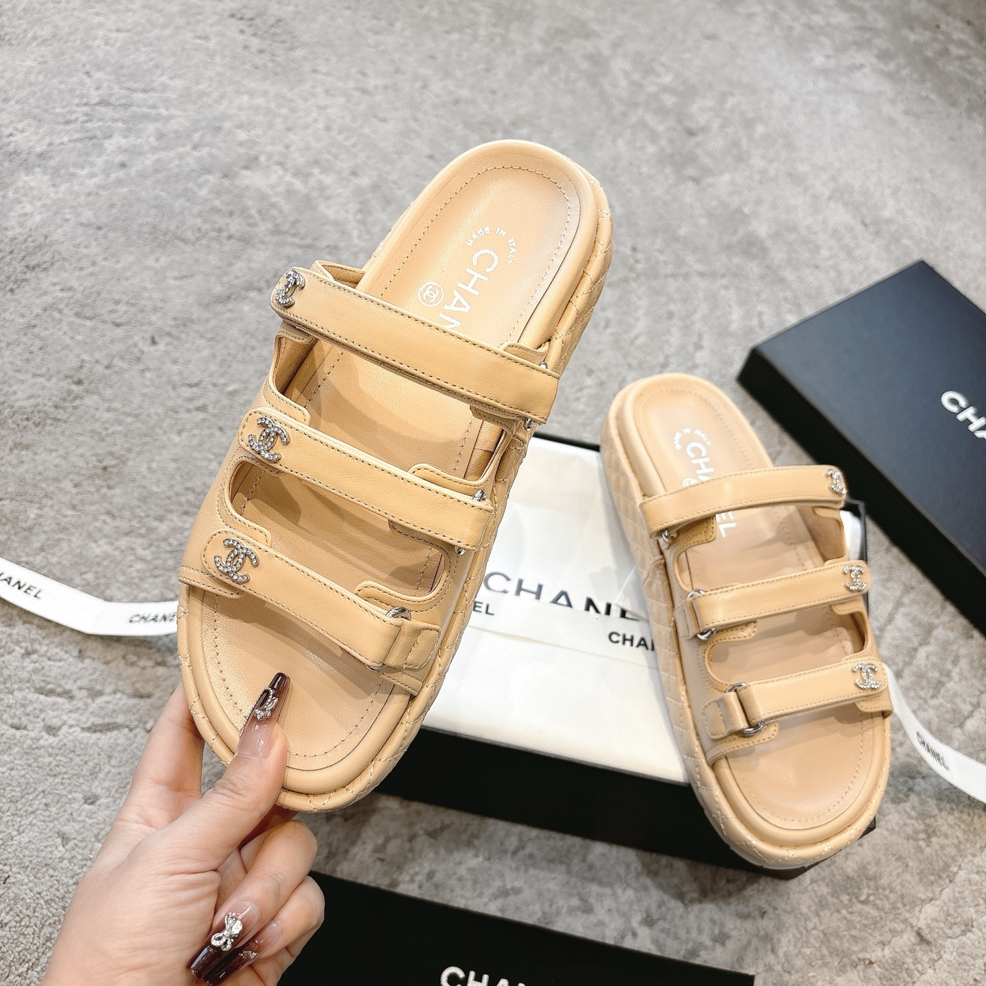 這款鞋子是AAAAA 1:1 質量(非常棒). 使用了和原版一模一樣的材料. 商標部分也保持了和香奈兒/Chanel一樣. 圖片拍攝是實物鞋子拍攝, 您所收到的實物保證和我們圖片一模一樣.
