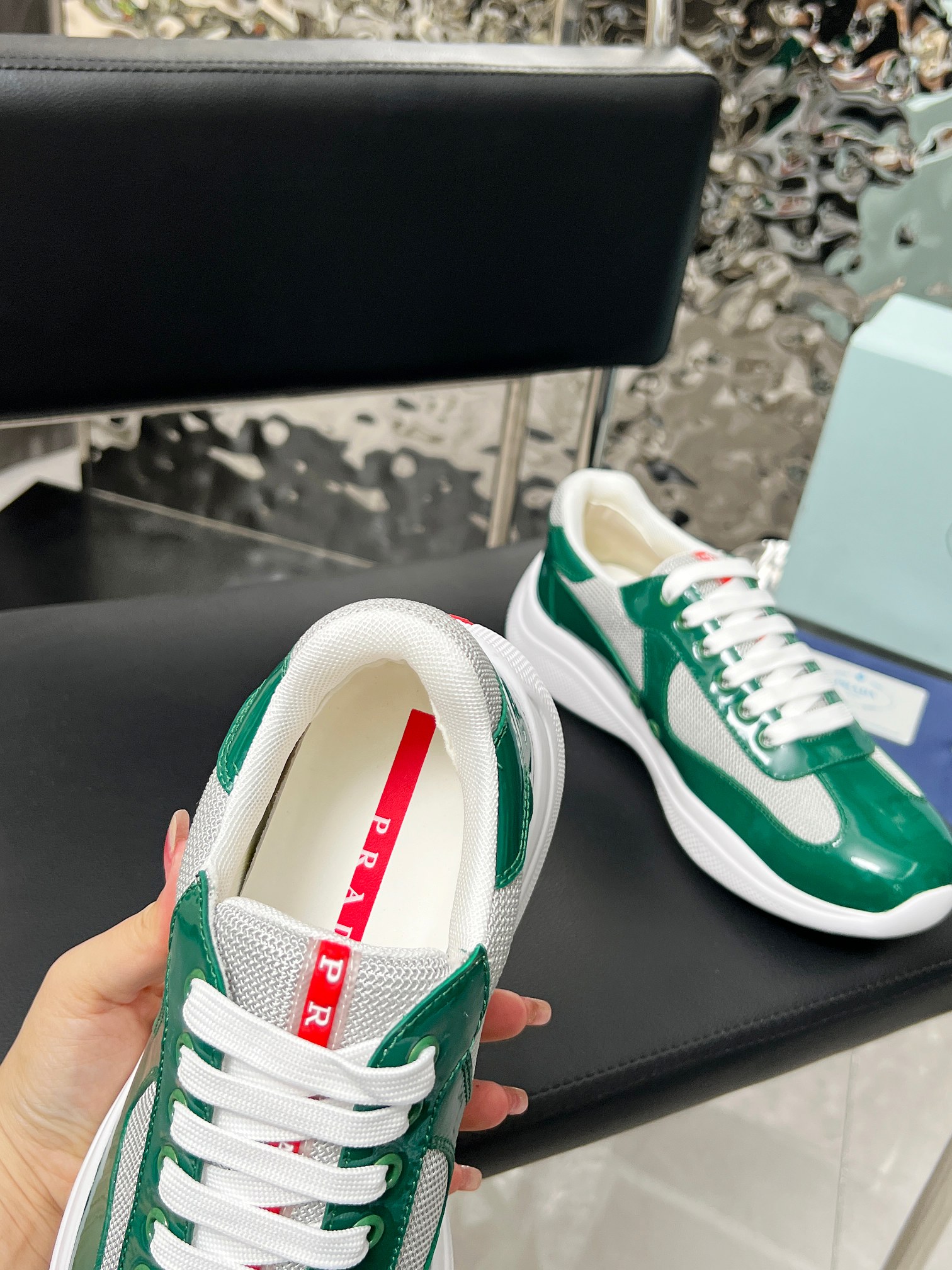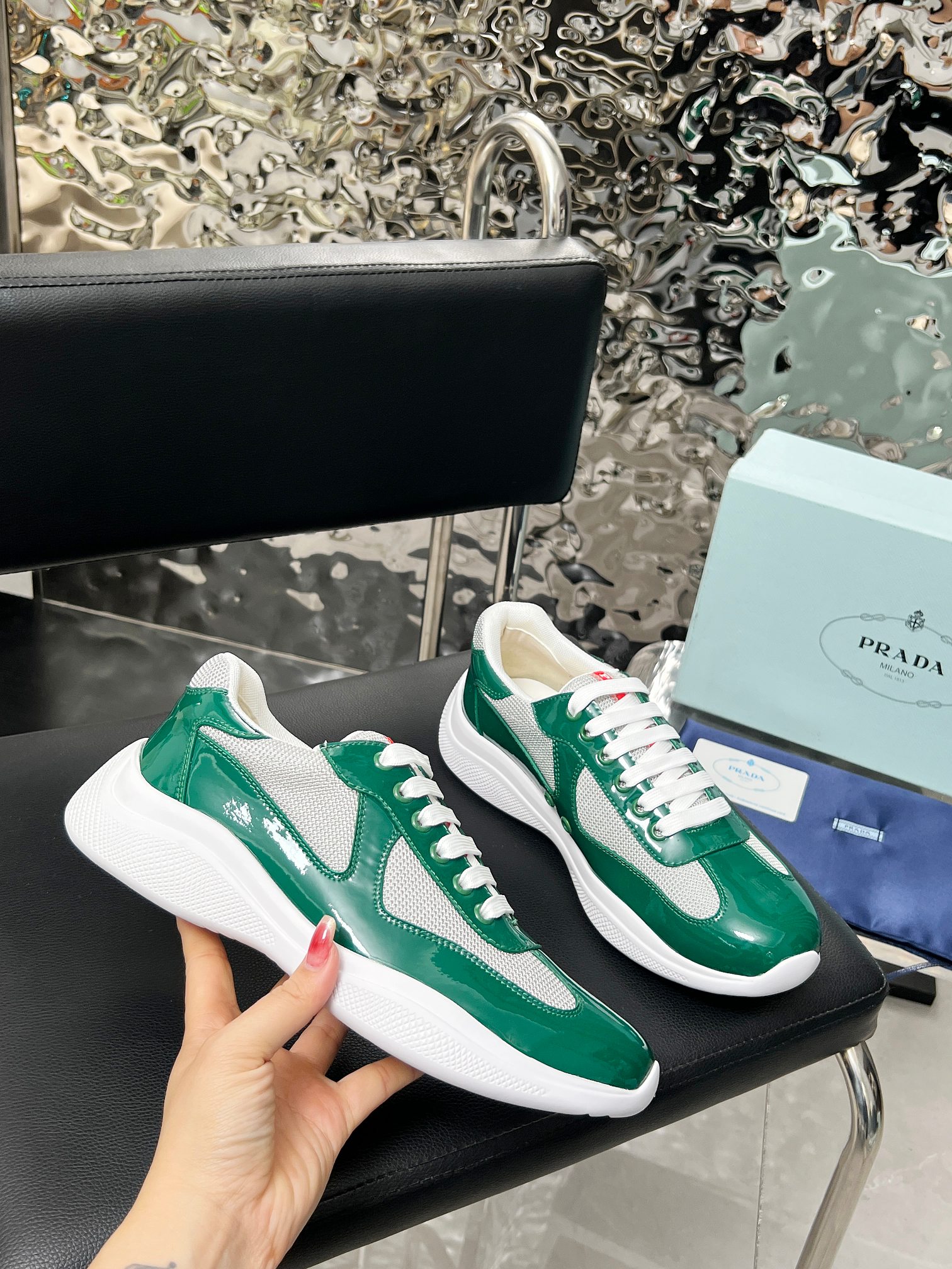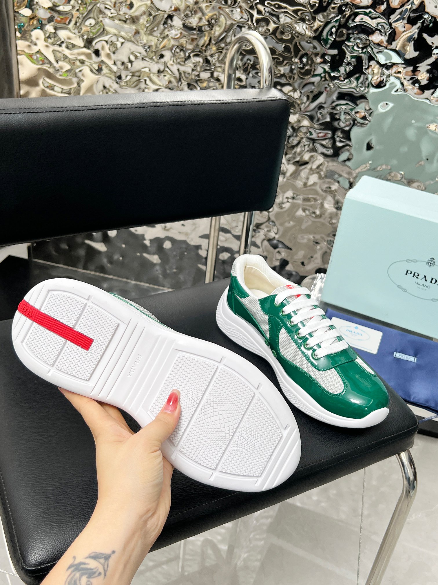 這款鞋子是AAAAA 1:1 質量(非常棒). 使用了和原版一模一樣的材料. 商標部分也保持了和普拉達/Prada一樣. 圖片拍攝是實物鞋子拍攝, 您所收到的實物保證和我們圖片一模一樣.