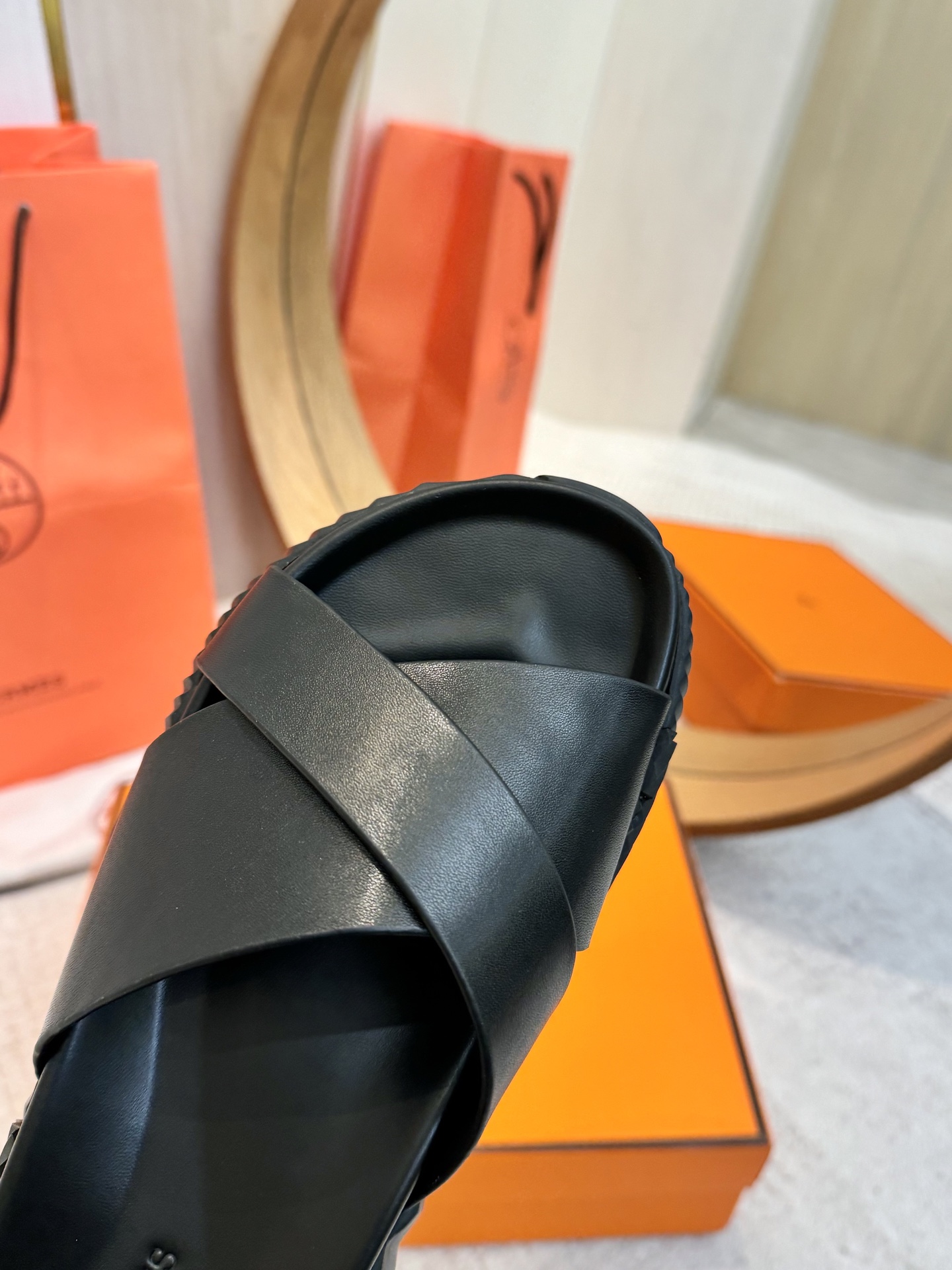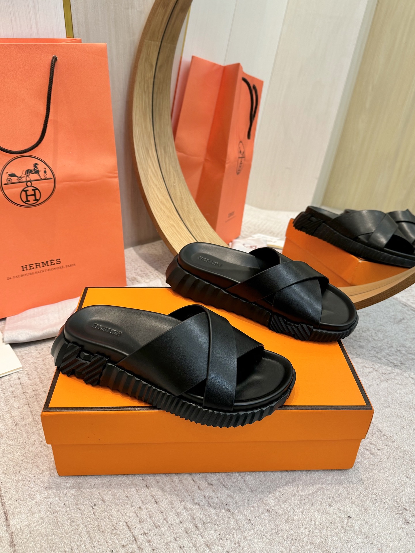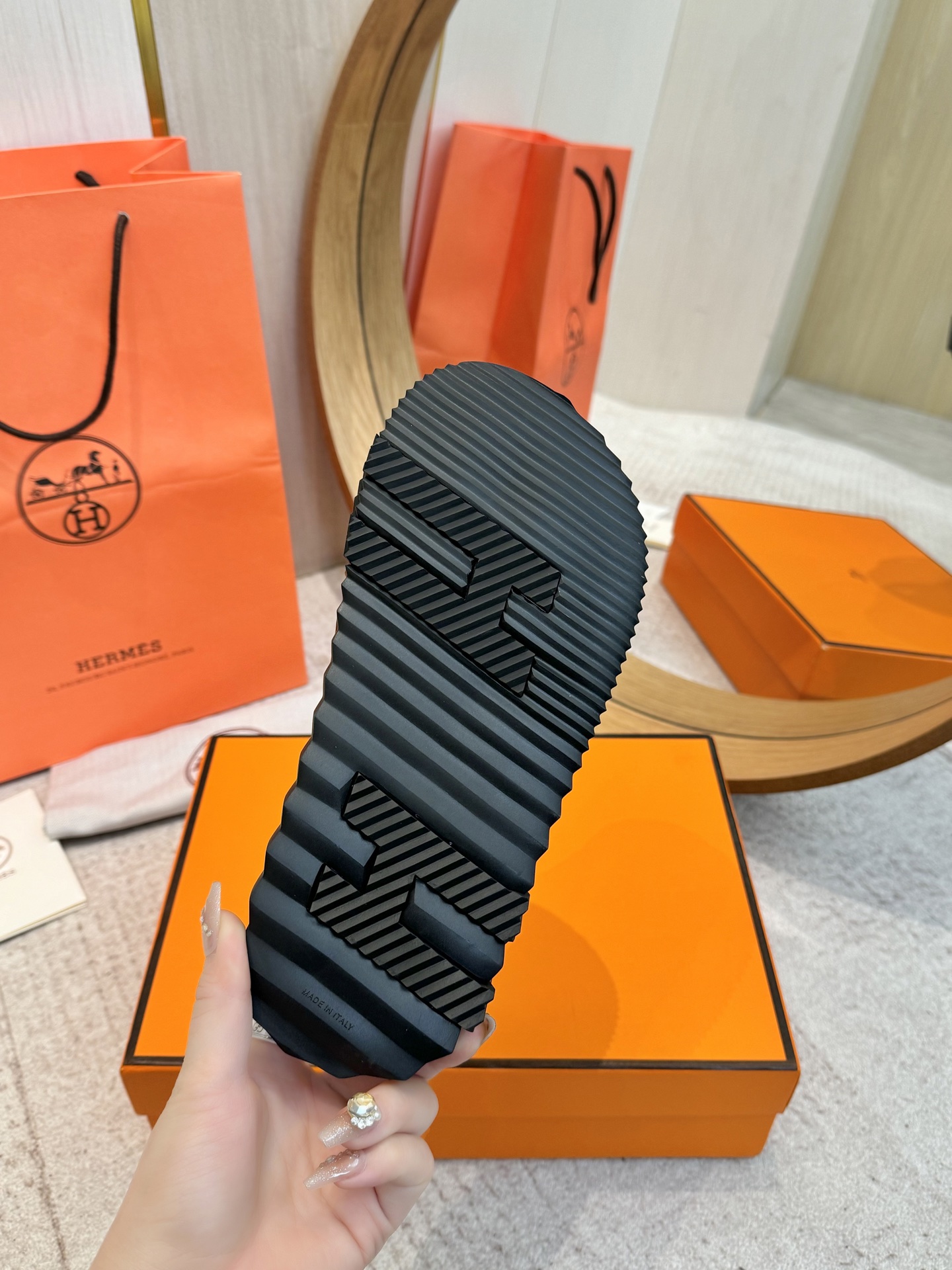 這款鞋子是AAAAA 1:1 質量(非常棒). 使用了和原版一模一樣的材料. 商標部分也保持了和愛馬仕/Hermes一樣. 圖片拍攝是實物鞋子拍攝, 您所收到的實物保證和我們圖片一模一樣.