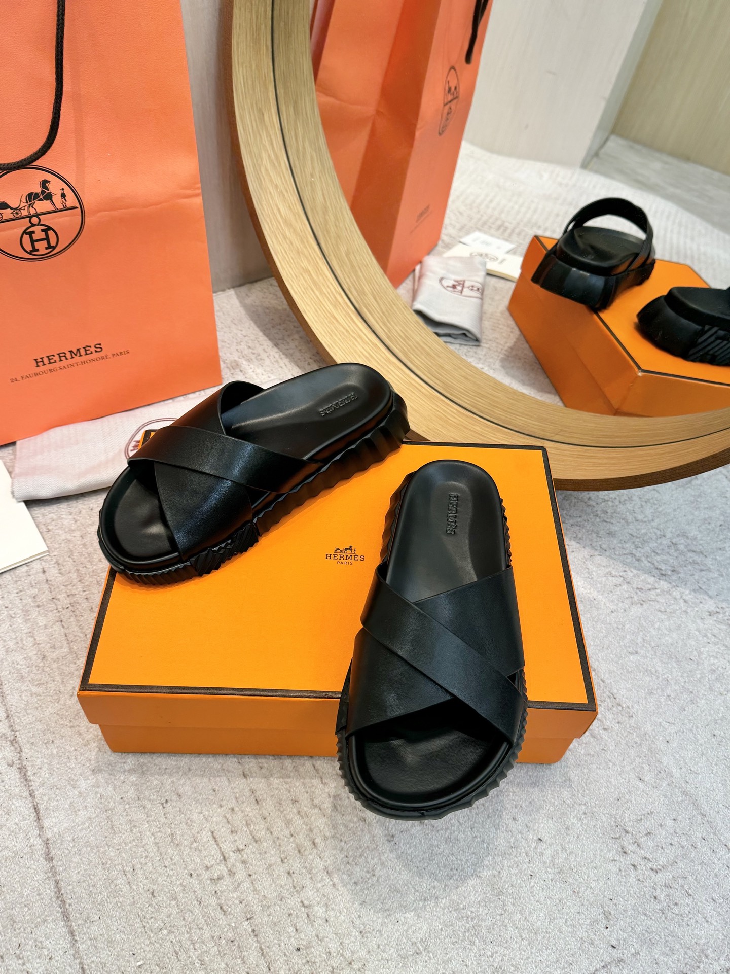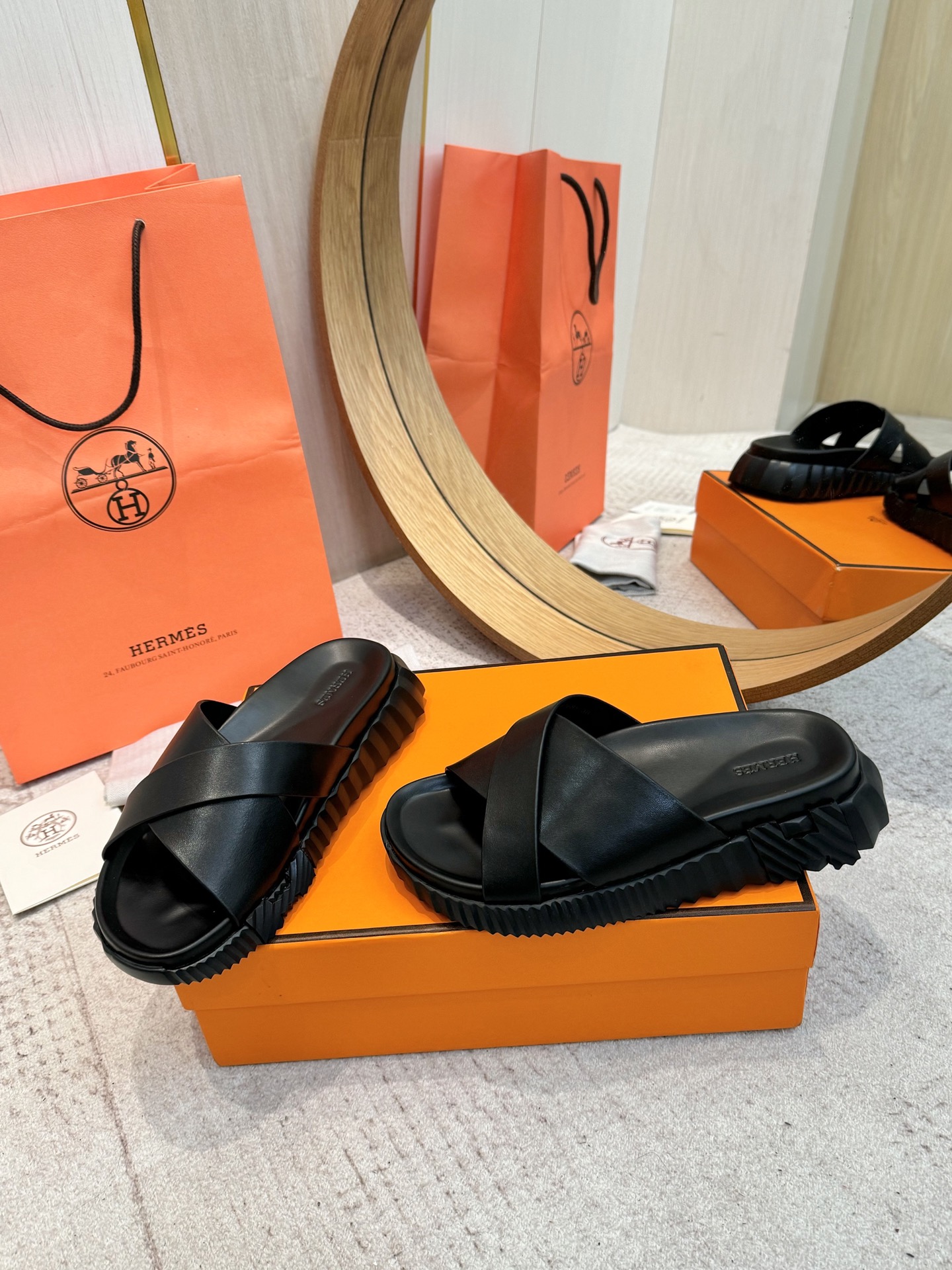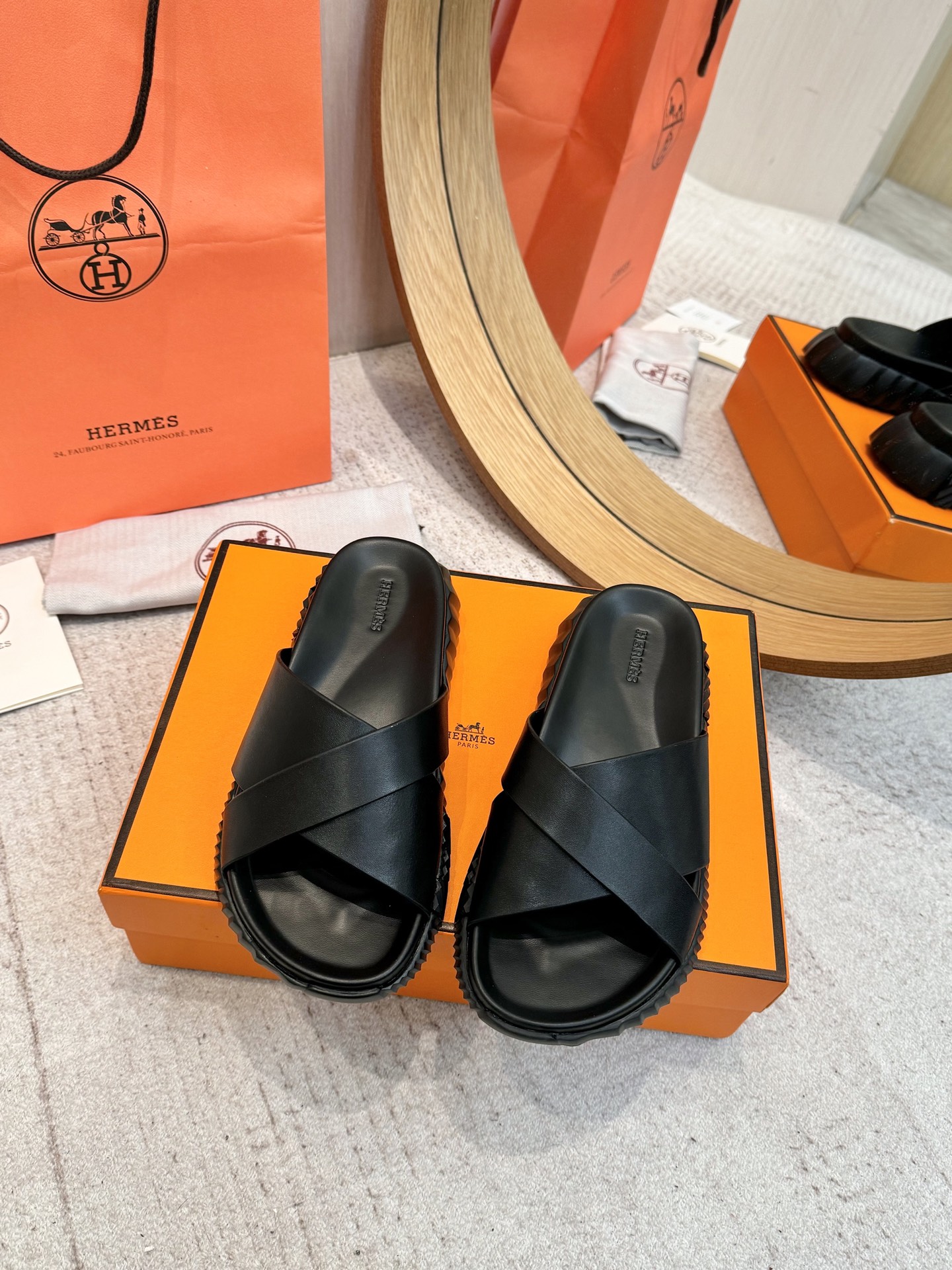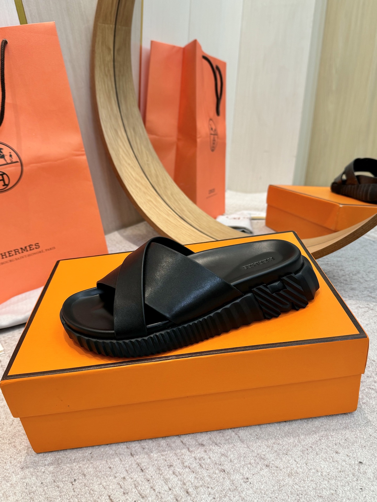 這款鞋子是AAAAA 1:1 質量(非常棒). 使用了和原版一模一樣的材料. 商標部分也保持了和愛馬仕/Hermes一樣. 圖片拍攝是實物鞋子拍攝, 您所收到的實物保證和我們圖片一模一樣.