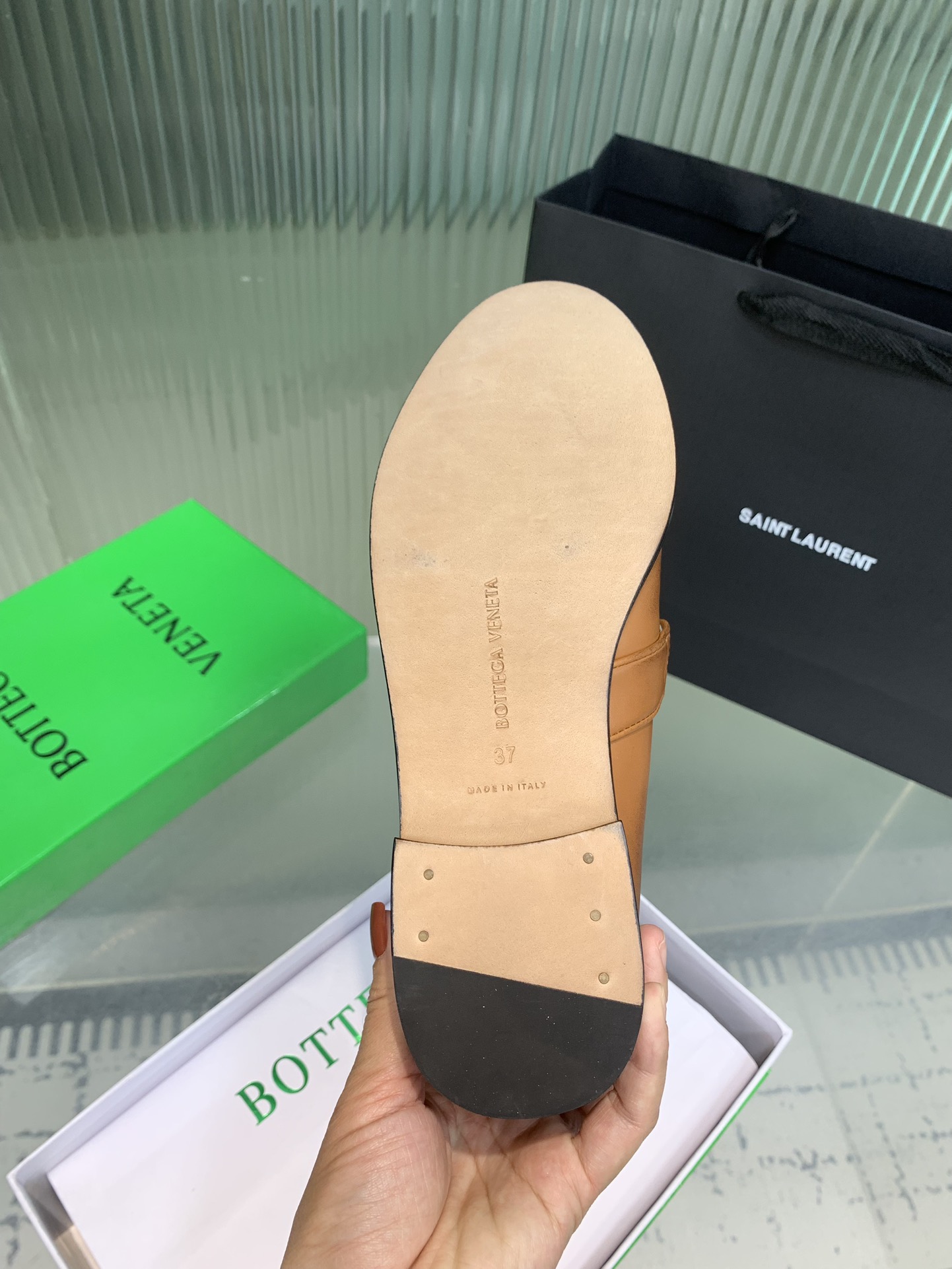 這款鞋子是AAAAA 1:1 質量(非常棒). 使用了和原版一模一樣的材料. 商標部分也保持了和葆蝶家/Bottega Veneta一樣. 圖片拍攝是實物鞋子拍攝, 您所收到的實物保證和我們圖片一模一樣.