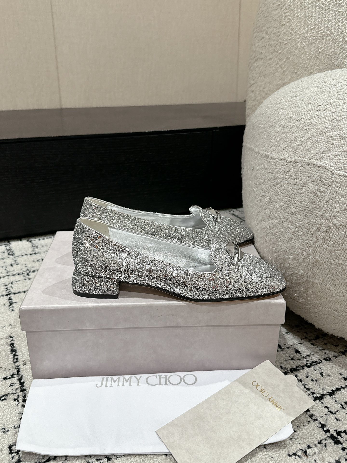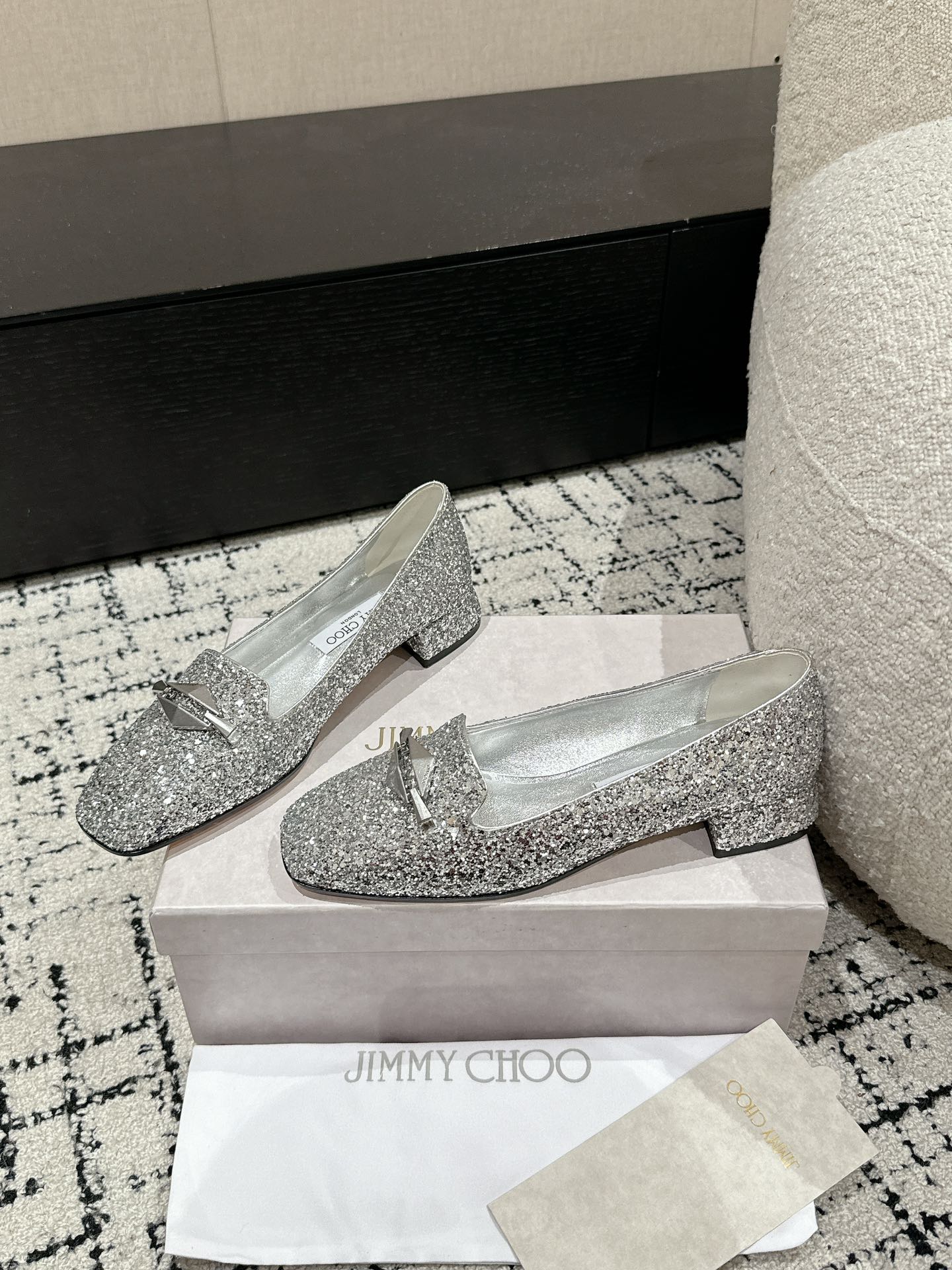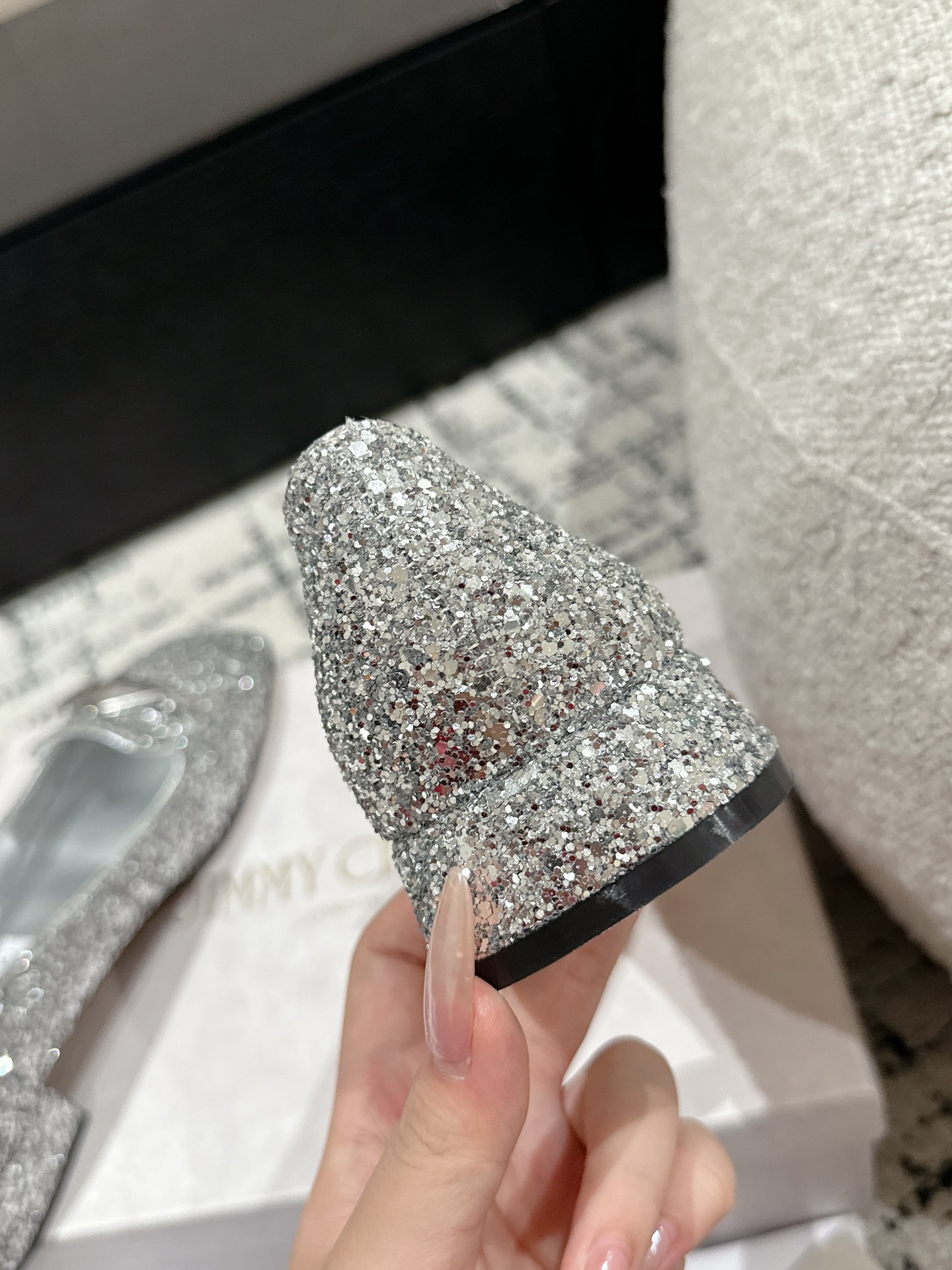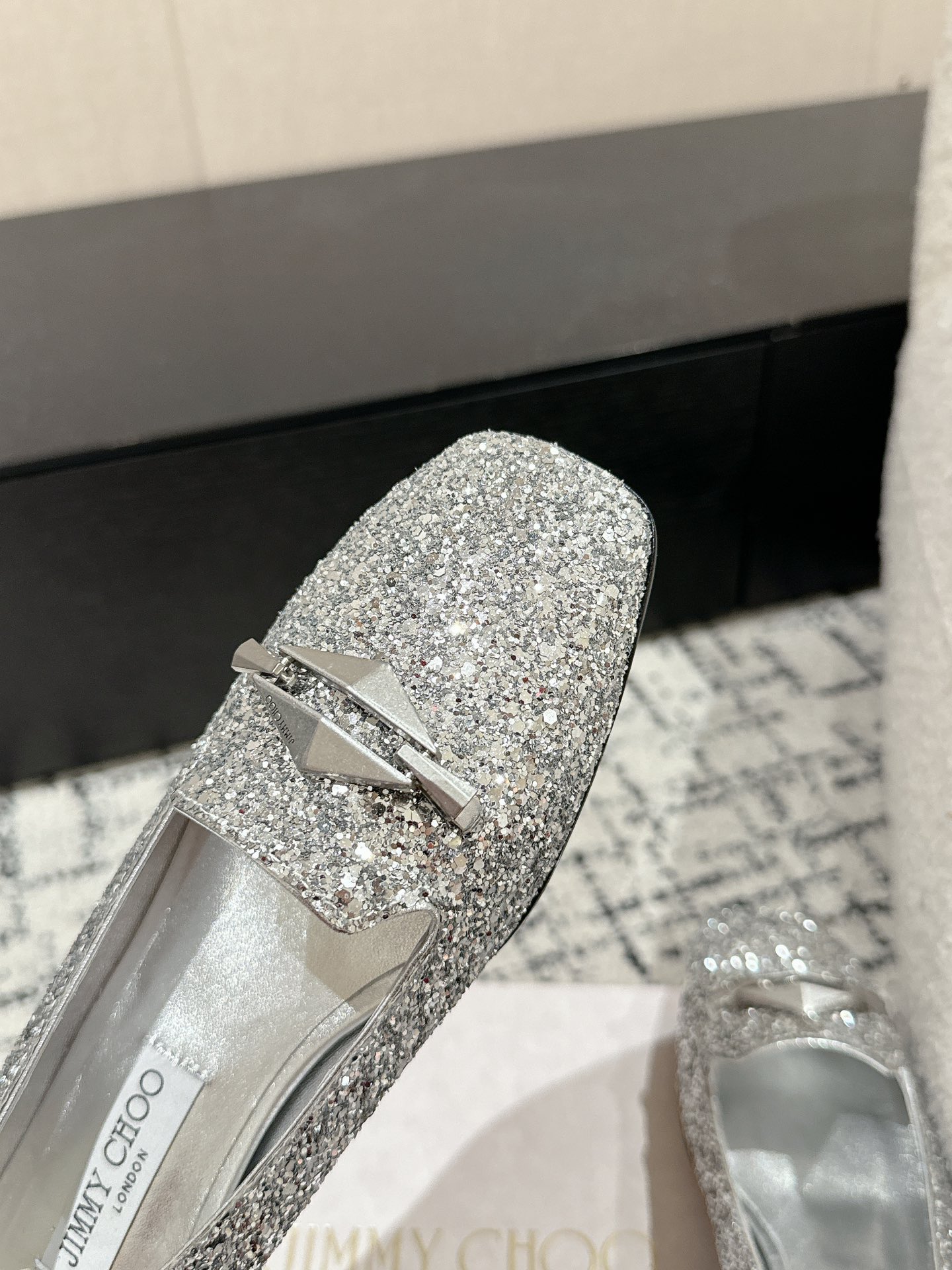 這款鞋子是AAAAA 1:1 質量(非常棒). 使用了和原版一模一樣的材料. 商標部分也保持了和吉米喬/JIMMY CHOO一樣. 圖片拍攝是實物鞋子拍攝, 您所收到的實物保證和我們圖片一模一樣.