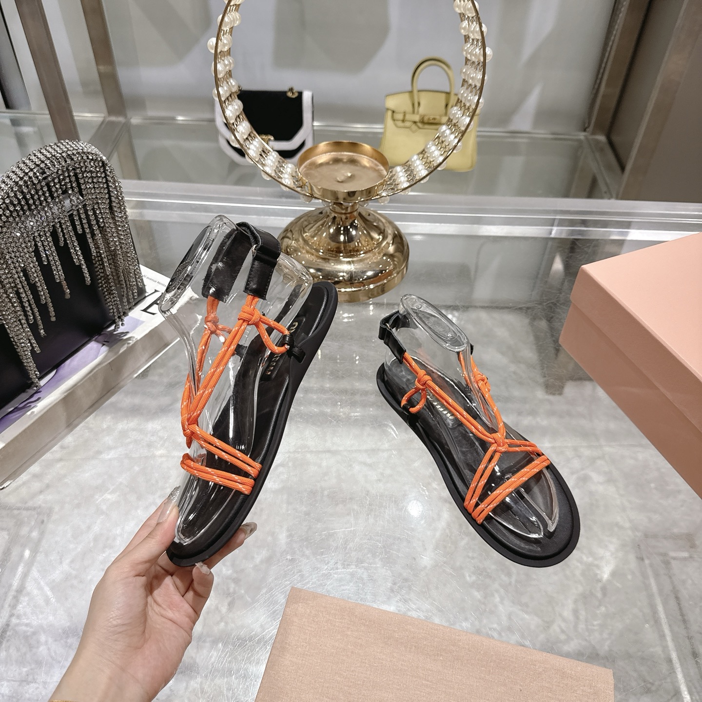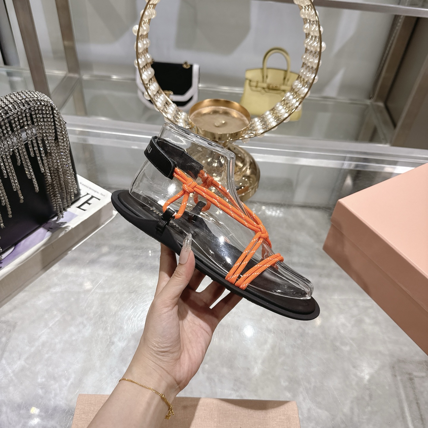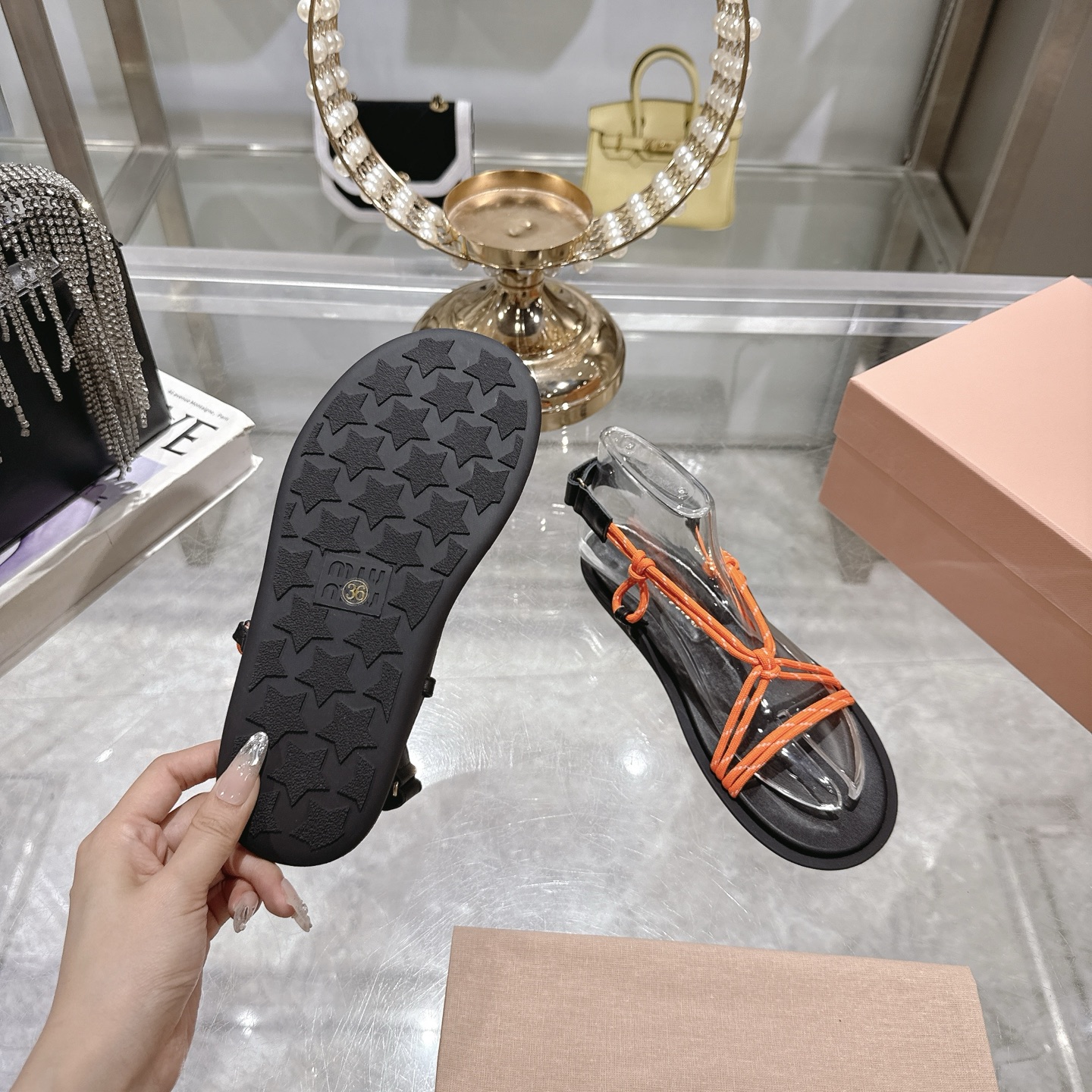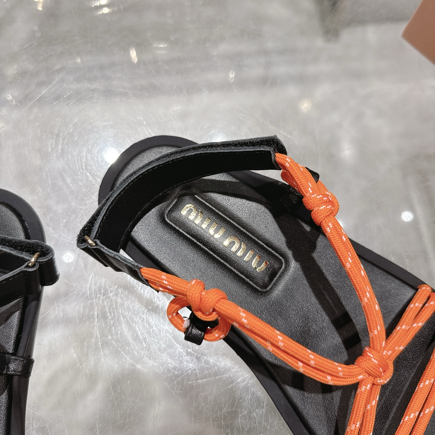 這款鞋子是AAAAA 1:1 質量(非常棒). 使用了和原版一模一樣的材料. 商標部分也保持了和繆繆/Miu Miu一樣. 圖片拍攝是實物鞋子拍攝, 您所收到的實物保證和我們圖片一模一樣.
