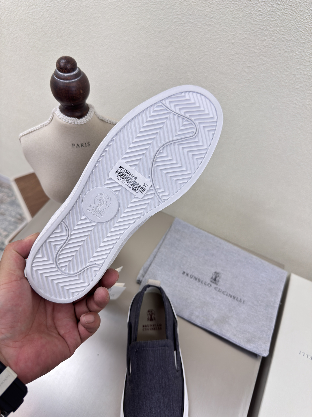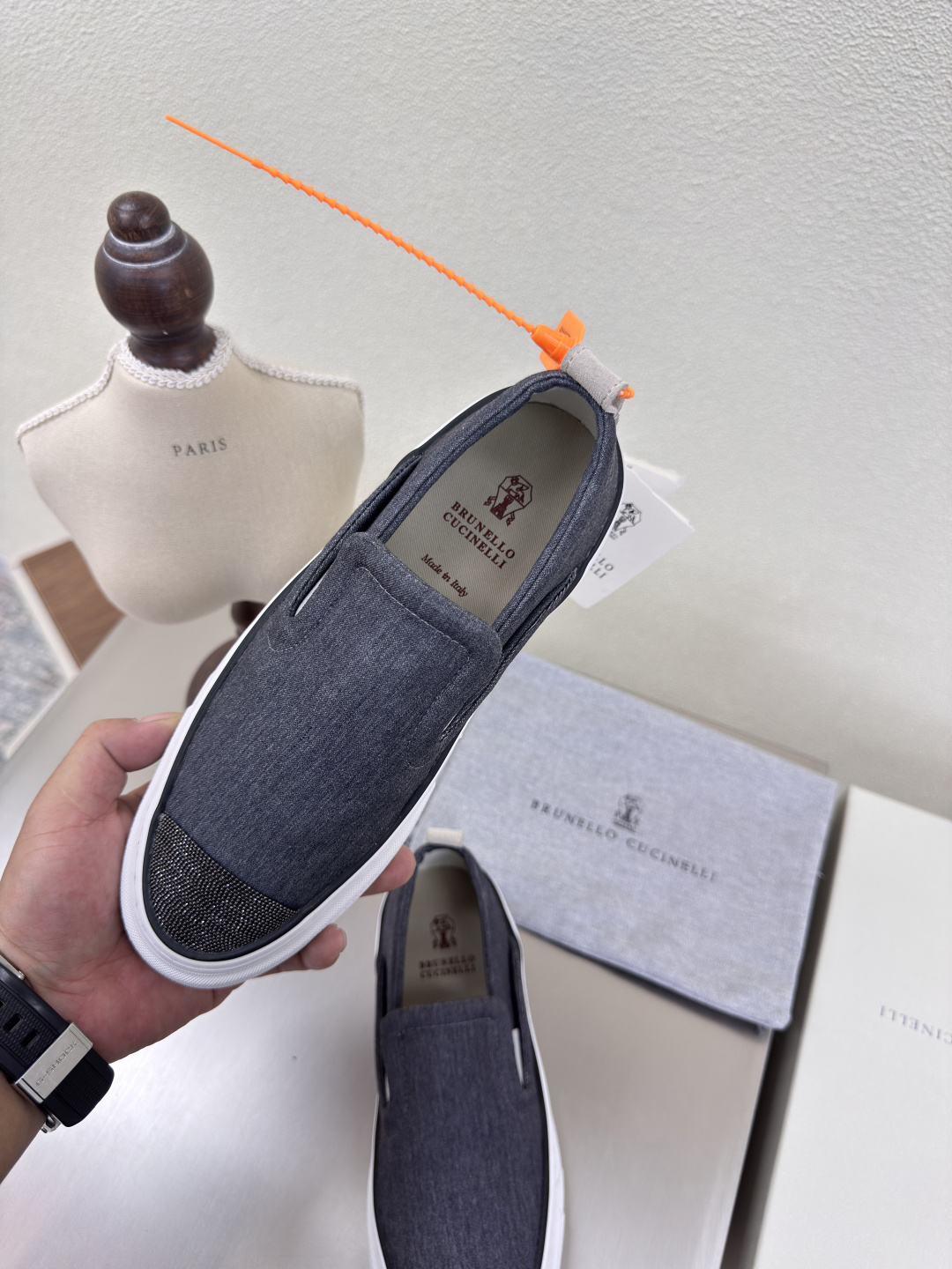這款鞋子是AAAAA 1:1 質量(非常棒). 使用了和原版一模一樣的材料. 商標部分也保持了和Brunello Cucinelli一樣. 圖片拍攝是實物鞋子拍攝, 您所收到的實物保證和我們圖片一模一樣.