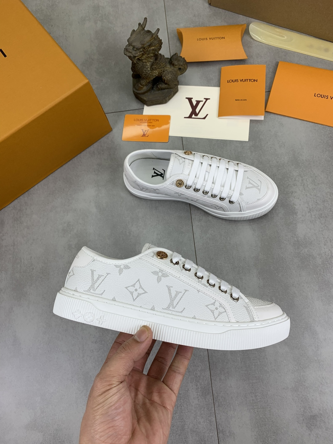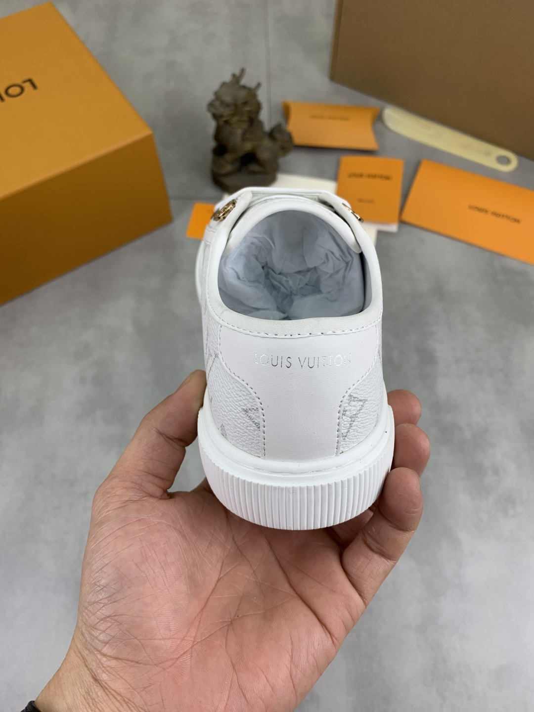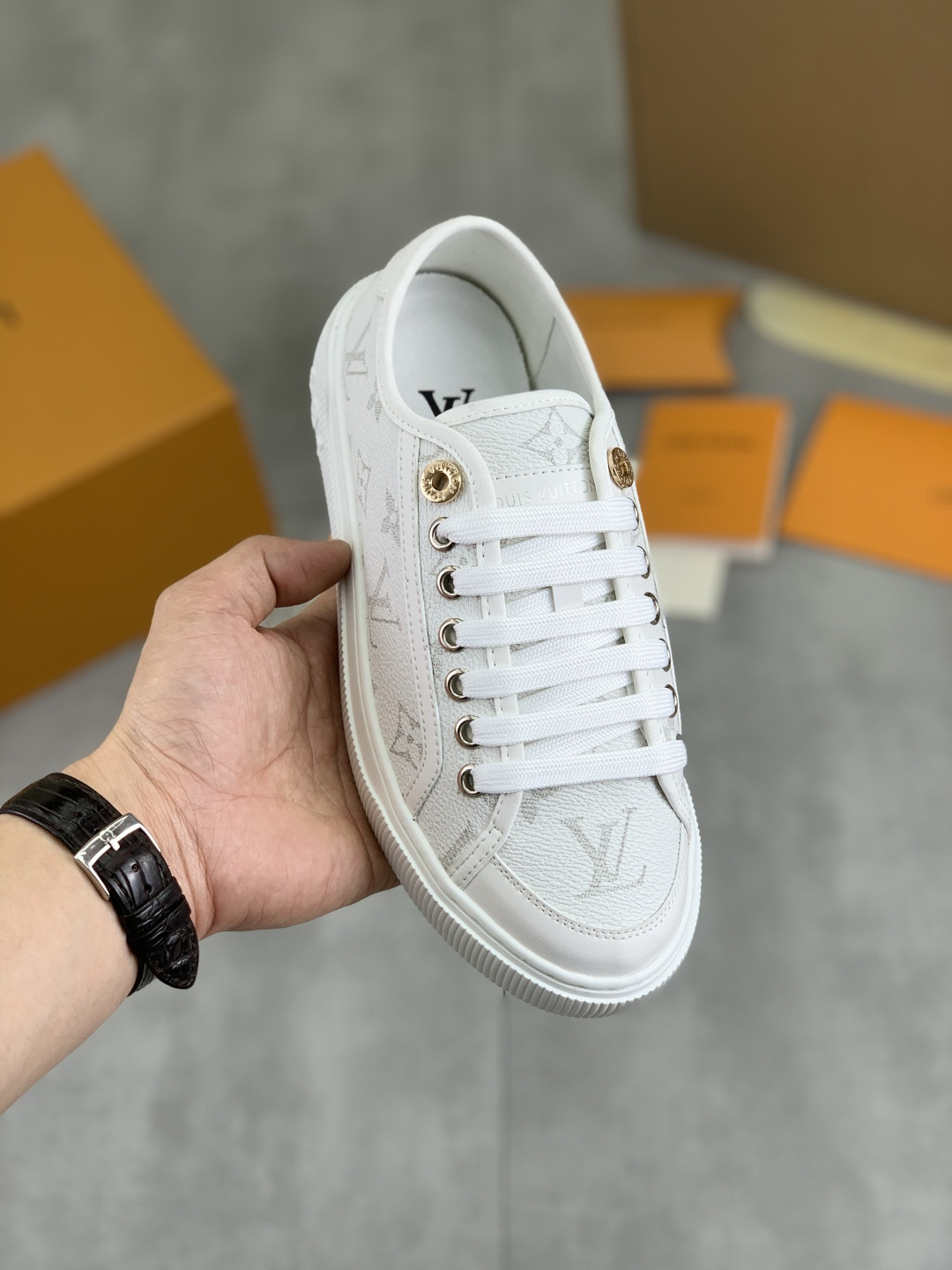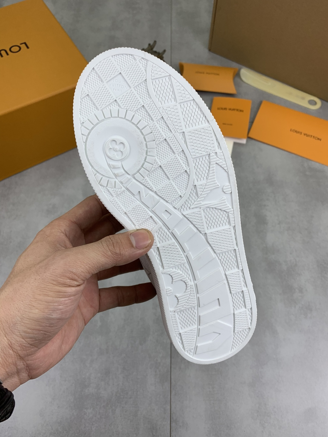 這款鞋子是AAAAA 1:1 質量(非常棒). 使用了和原版一模一樣的材料. 商標部分也保持了和路易威登/Louis Vuitton一樣. 圖片拍攝是實物鞋子拍攝, 您所收到的實物保證和我們圖片一模一樣.