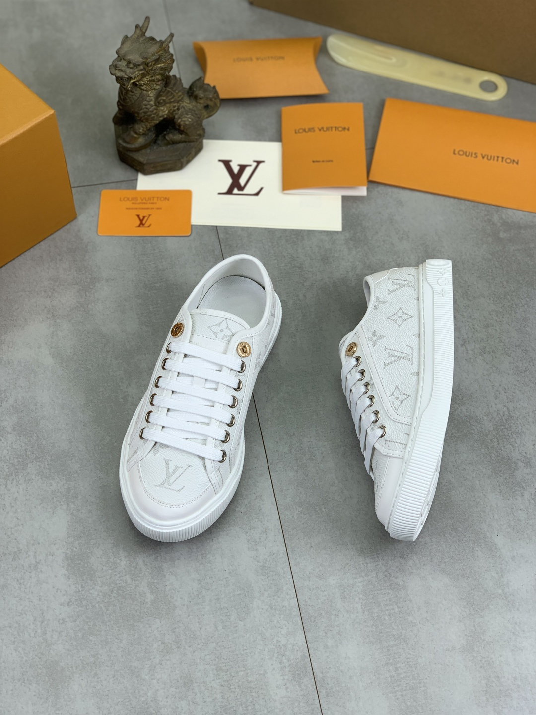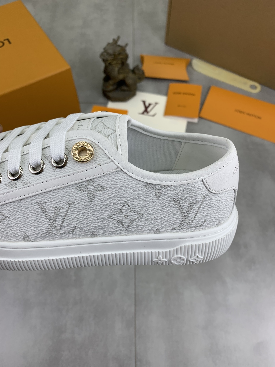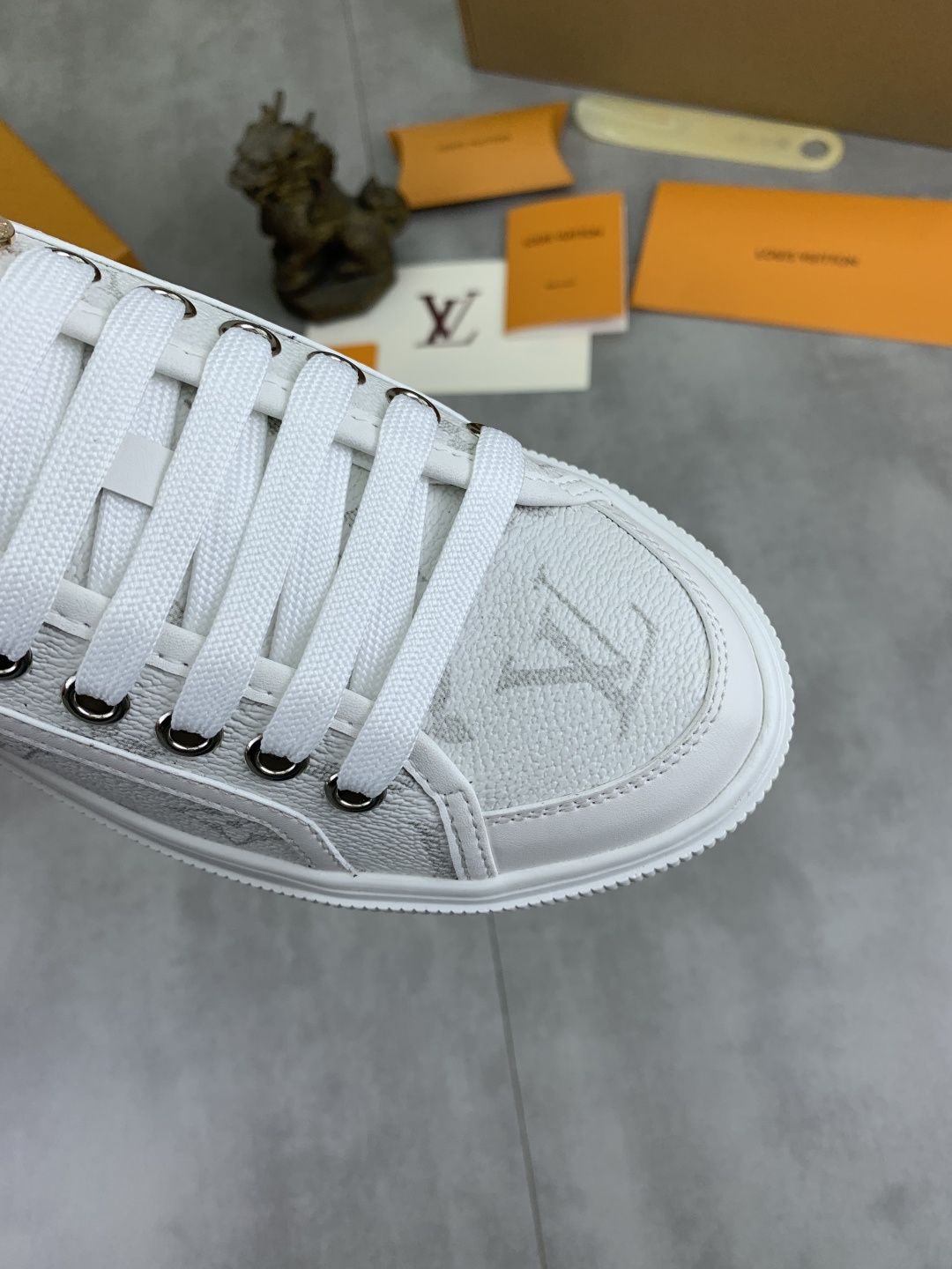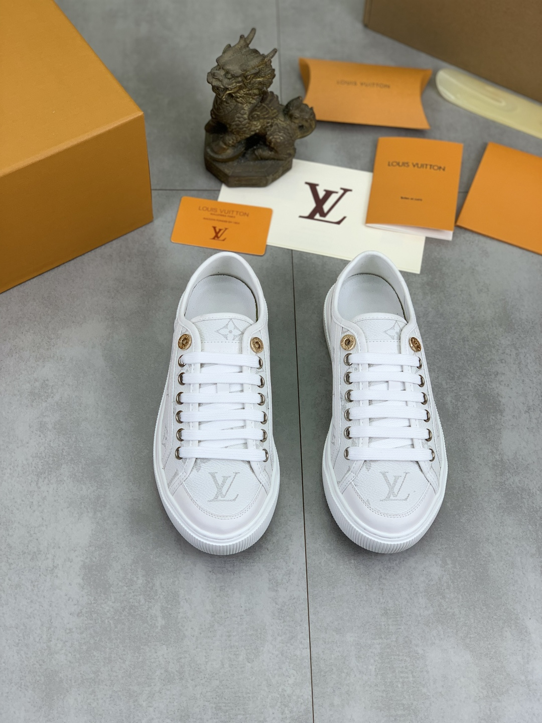這款鞋子是AAAAA 1:1 質量(非常棒). 使用了和原版一模一樣的材料. 商標部分也保持了和路易威登/Louis Vuitton一樣. 圖片拍攝是實物鞋子拍攝, 您所收到的實物保證和我們圖片一模一樣.