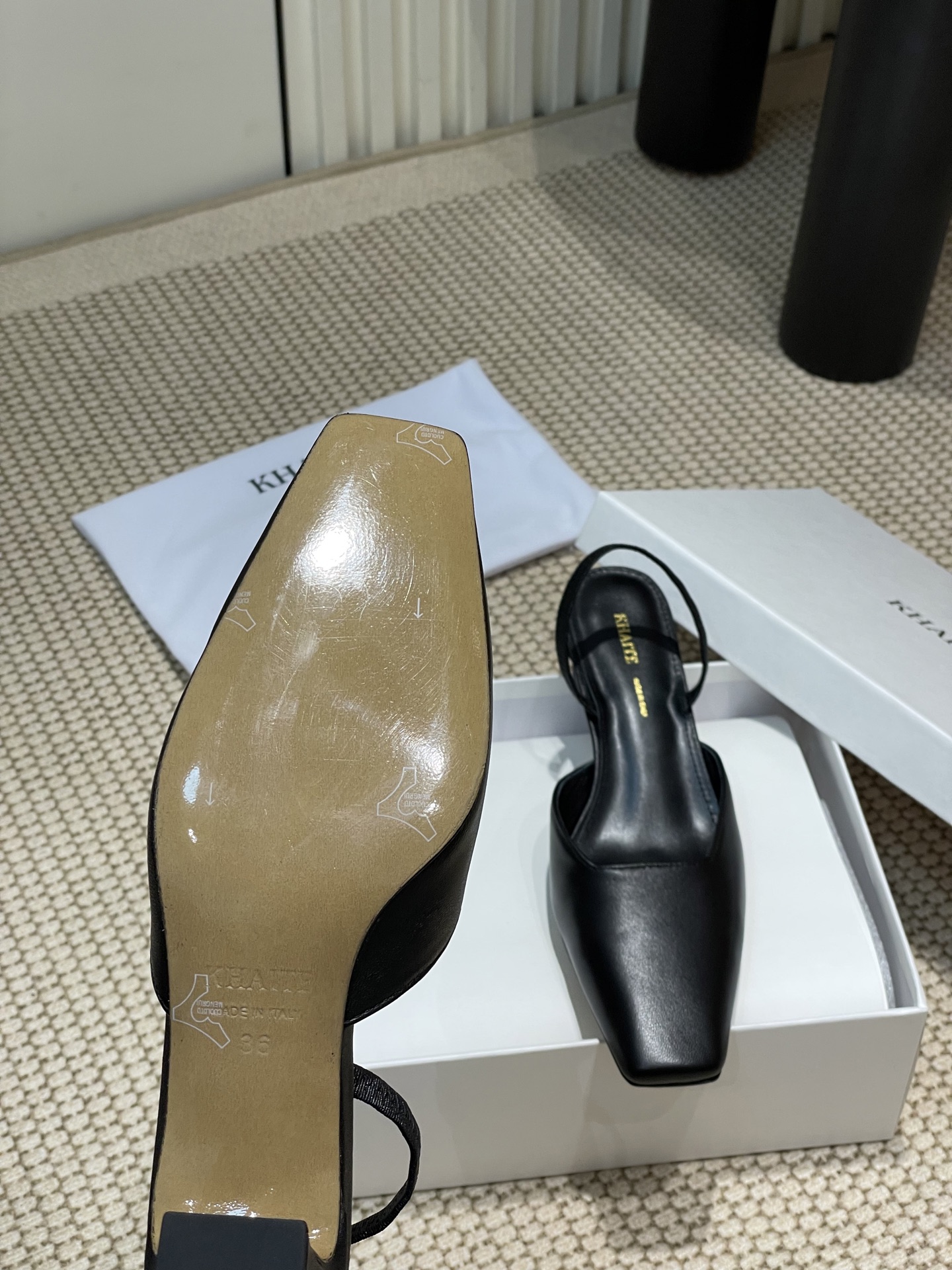 這款鞋子是AAAAA 1:1 質量(非常棒). 使用了和原版一模一樣的材料. 商標部分也保持了和Khaite一樣. 圖片拍攝是實物鞋子拍攝, 您所收到的實物保證和我們圖片一模一樣.