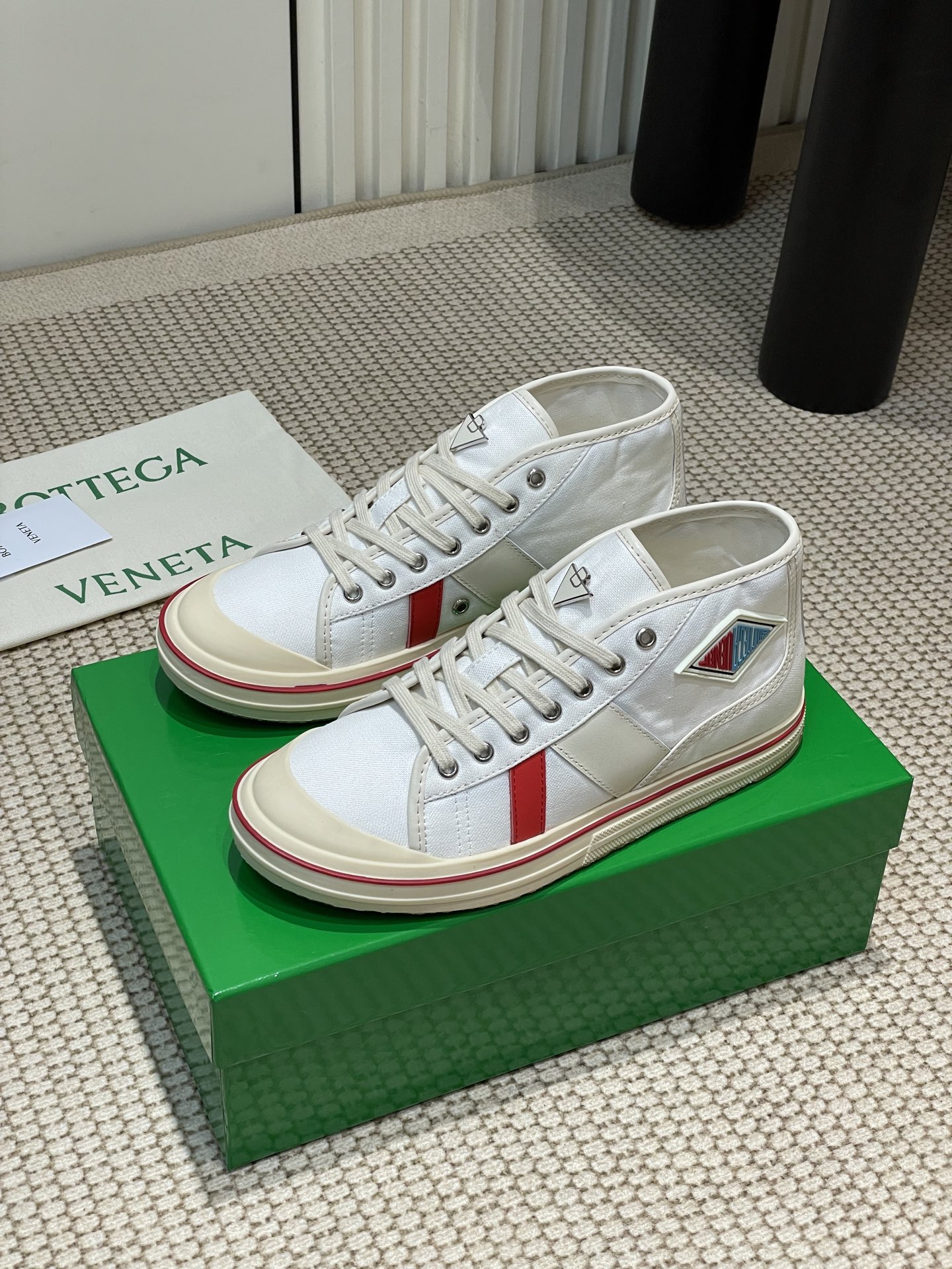 這款鞋子是AAAAA 1:1 質量(非常棒). 使用了和原版一模一樣的材料. 商標部分也保持了和葆蝶家/Bottega Veneta一樣. 圖片拍攝是實物鞋子拍攝, 您所收到的實物保證和我們圖片一模一樣.