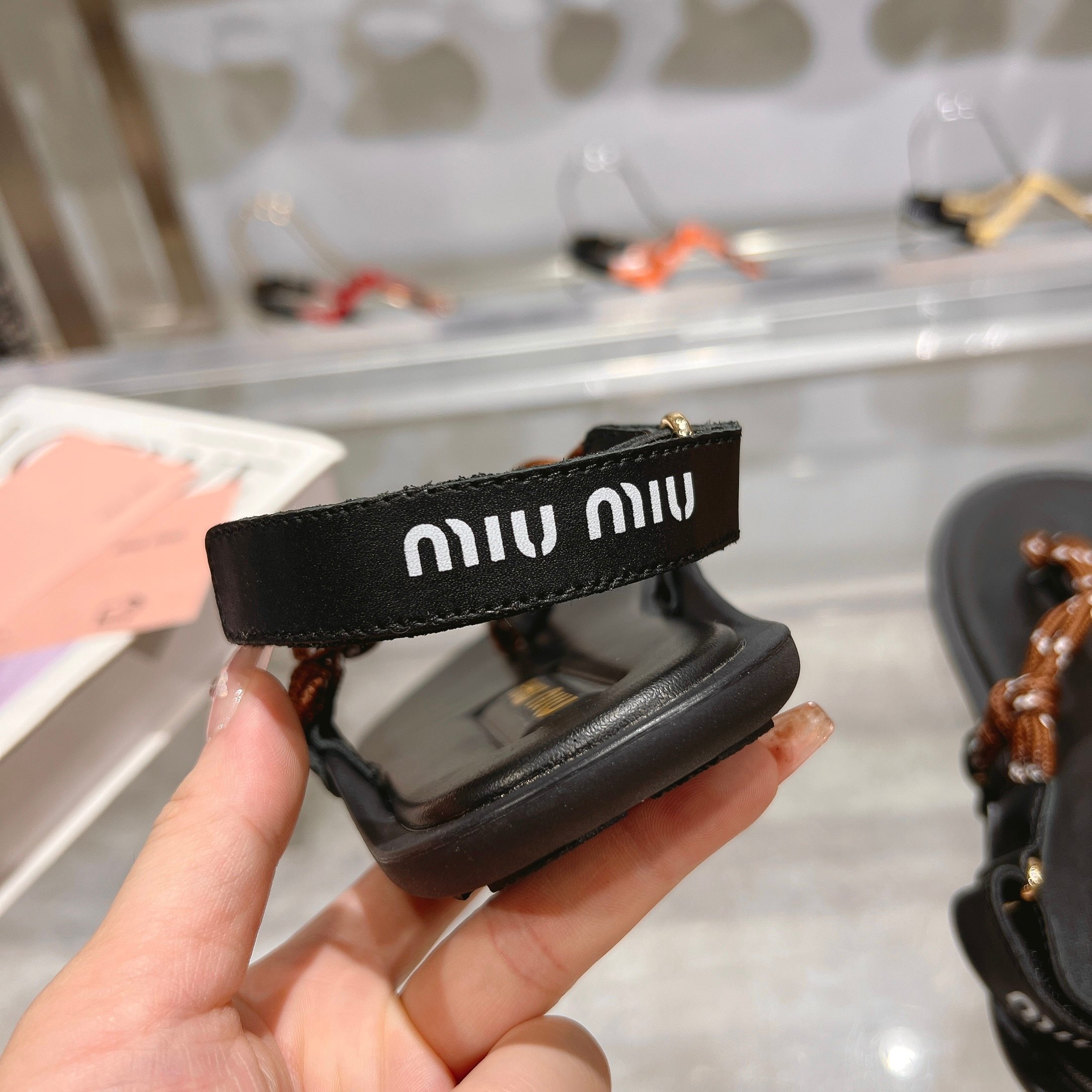 這款鞋子是AAAAA 1:1 質量(非常棒). 使用了和原版一模一樣的材料. 商標部分也保持了和繆繆/Miu Miu一樣. 圖片拍攝是實物鞋子拍攝, 您所收到的實物保證和我們圖片一模一樣.