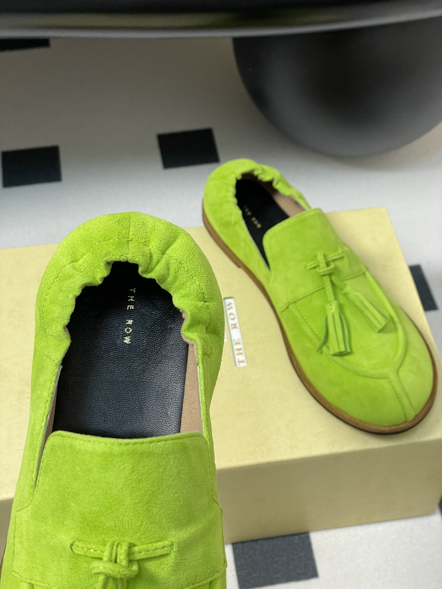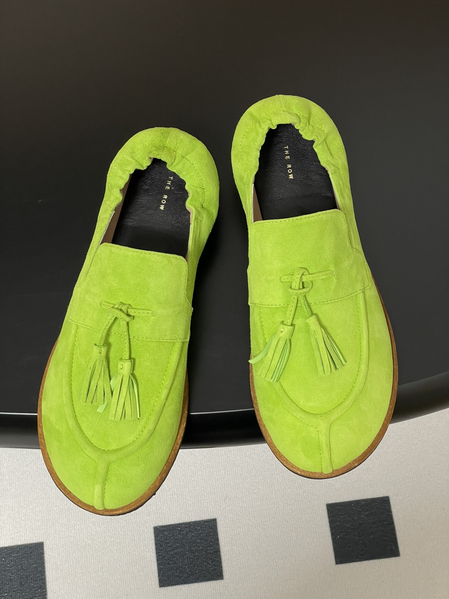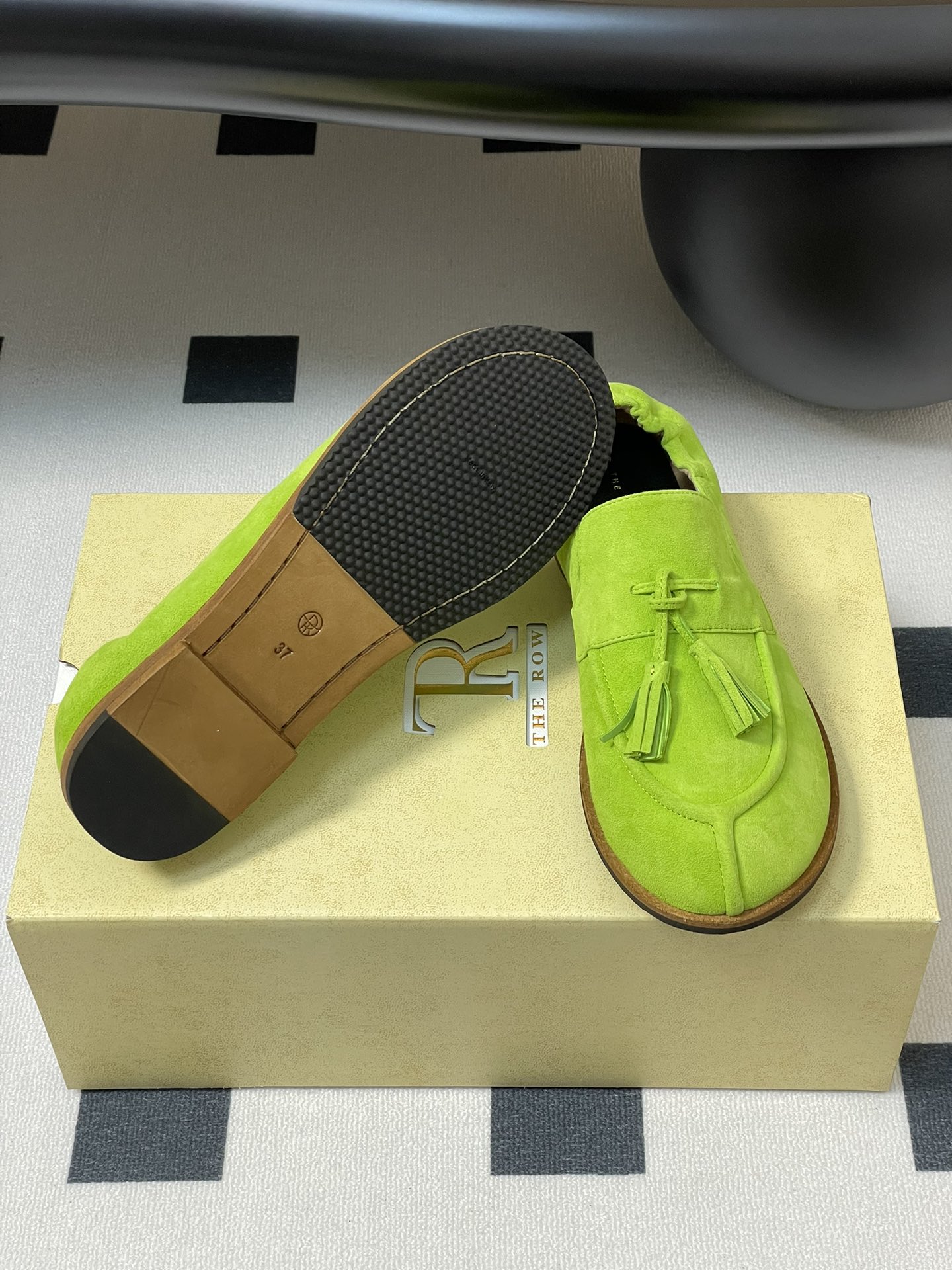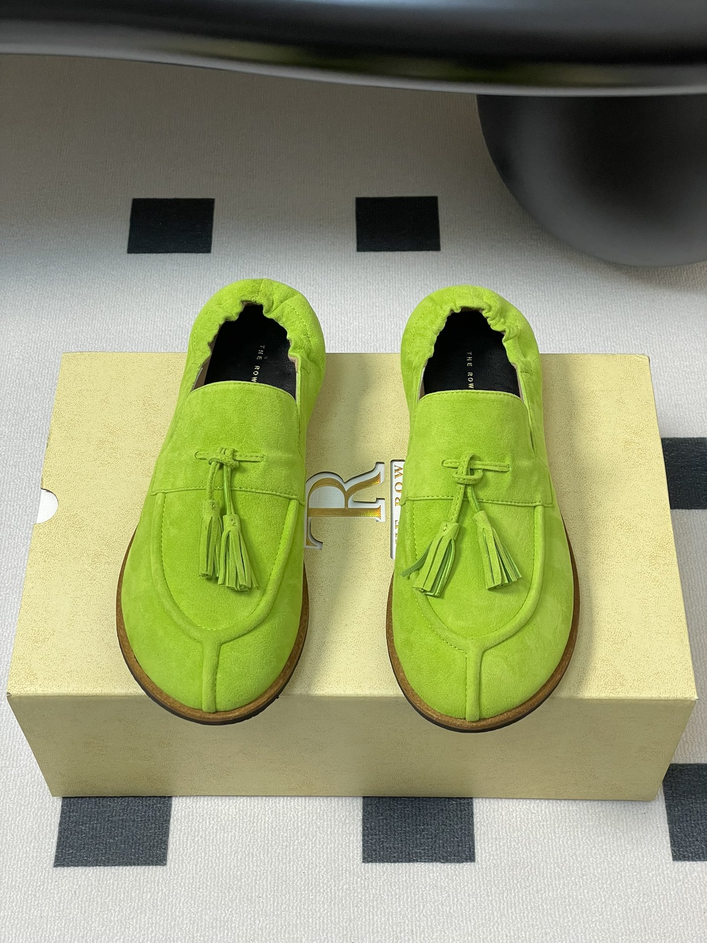 這款鞋子是AAAAA 1:1 質量(非常棒). 使用了和原版一模一樣的材料. 商標部分也保持了和The Row一樣. 圖片拍攝是實物鞋子拍攝, 您所收到的實物保證和我們圖片一模一樣.