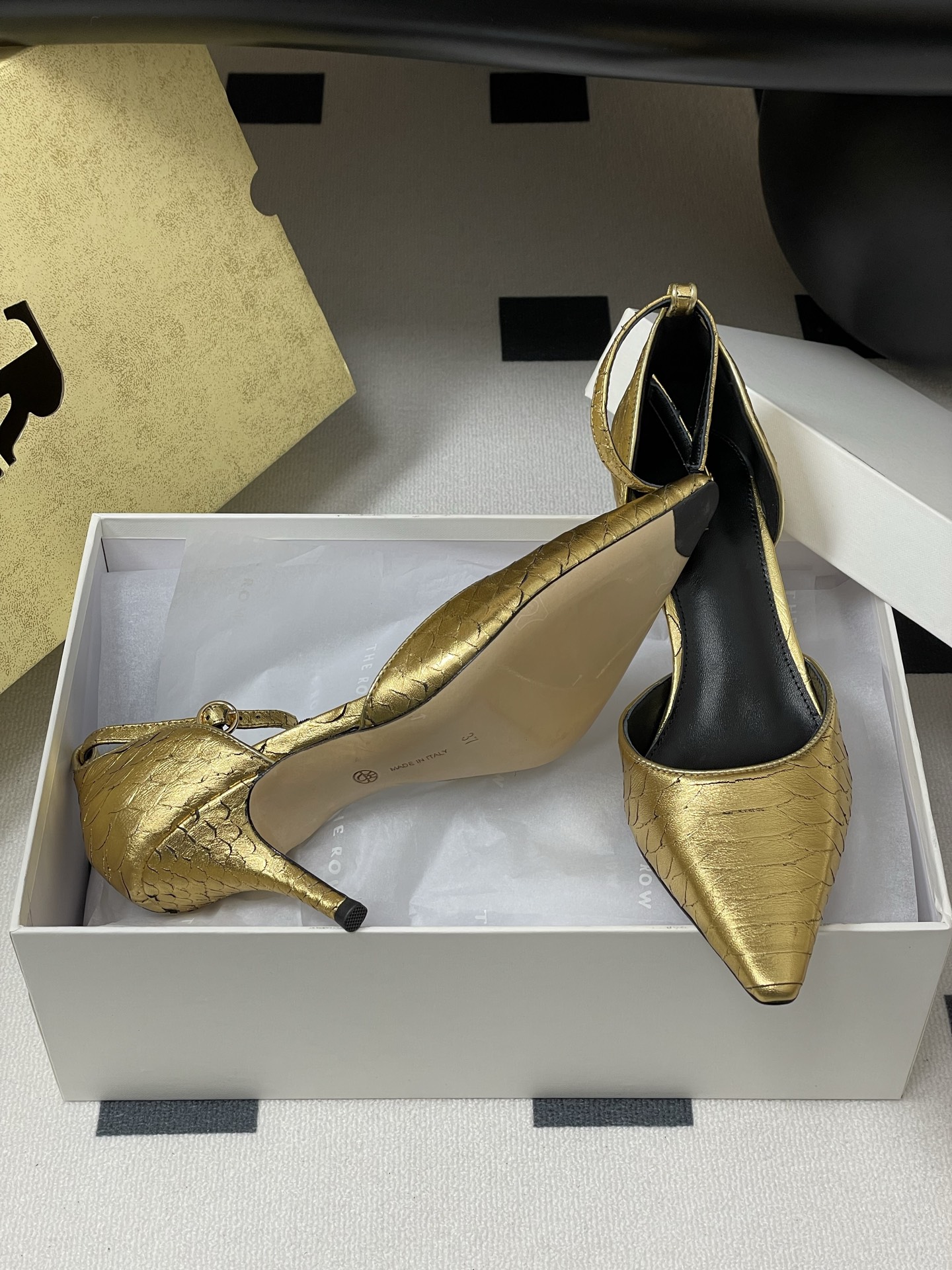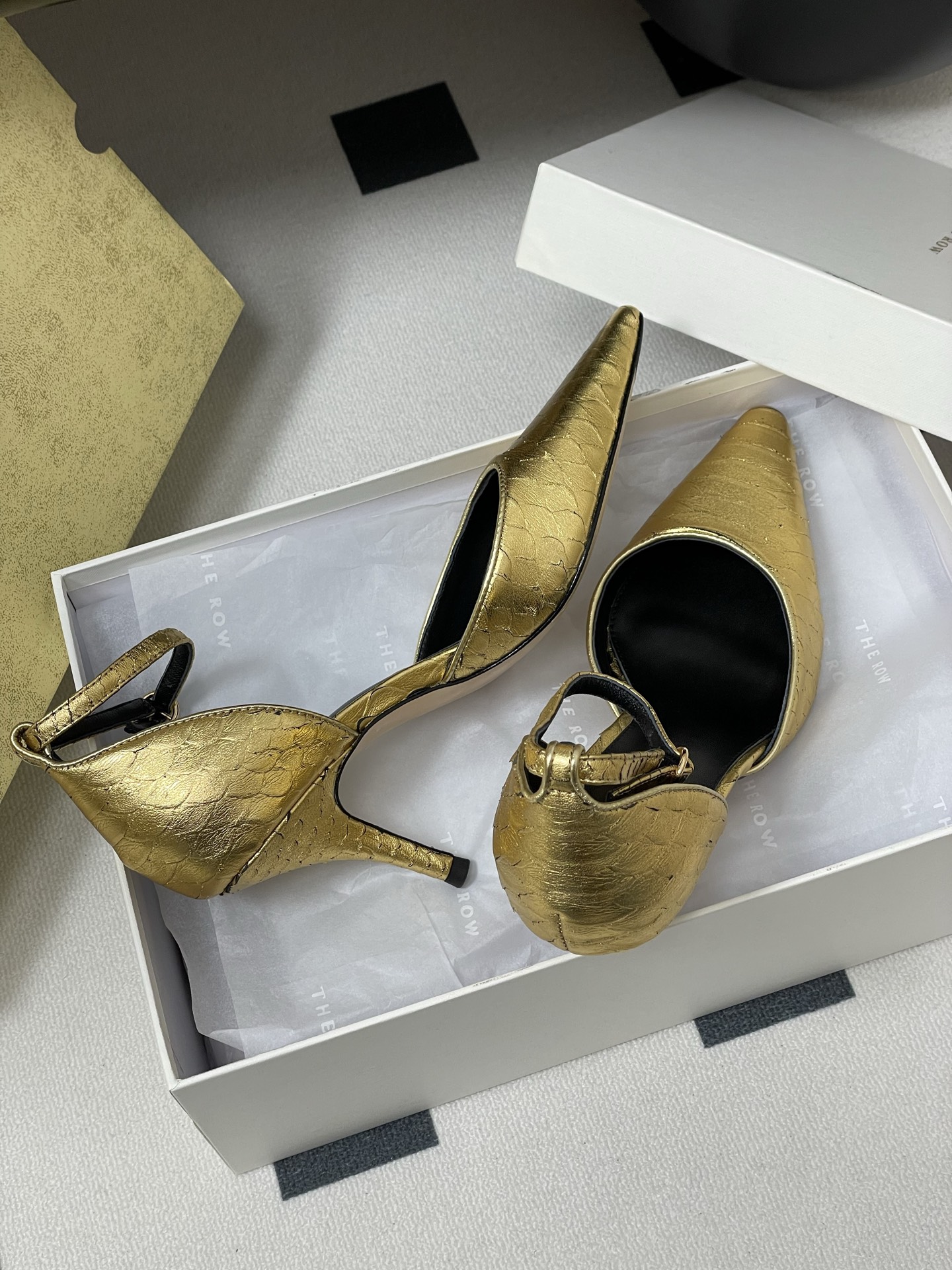 這款鞋子是AAAAA 1:1 質量(非常棒). 使用了和原版一模一樣的材料. 商標部分也保持了和The Row一樣. 圖片拍攝是實物鞋子拍攝, 您所收到的實物保證和我們圖片一模一樣.