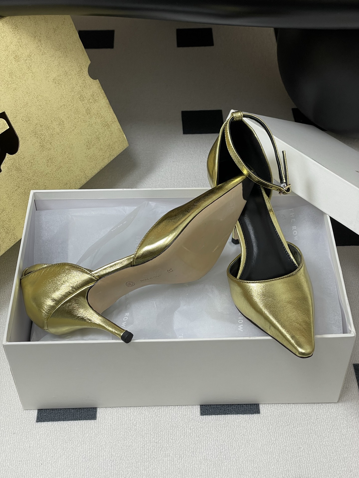 這款鞋子是AAAAA 1:1 質量(非常棒). 使用了和原版一模一樣的材料. 商標部分也保持了和The Row一樣. 圖片拍攝是實物鞋子拍攝, 您所收到的實物保證和我們圖片一模一樣.
