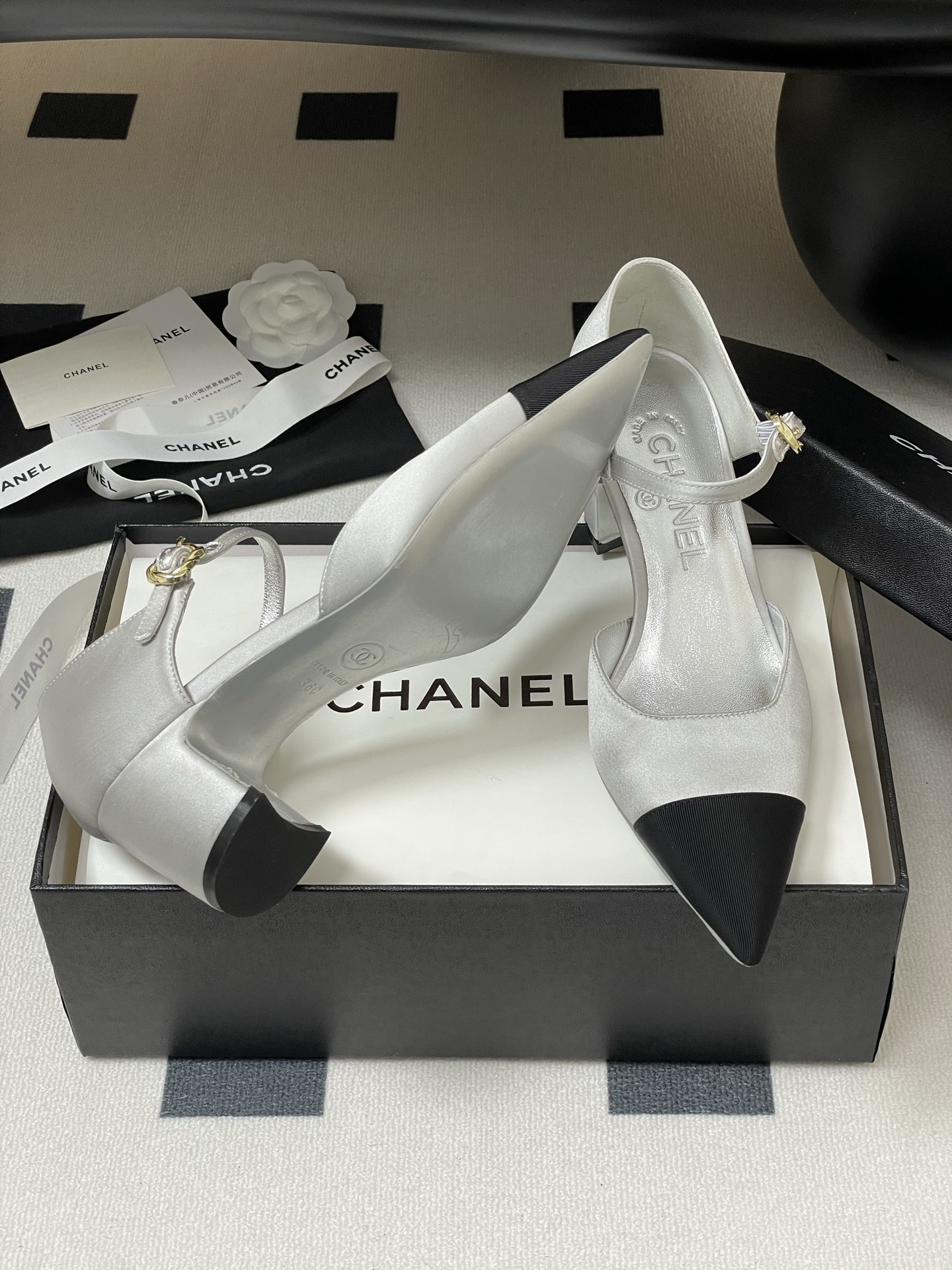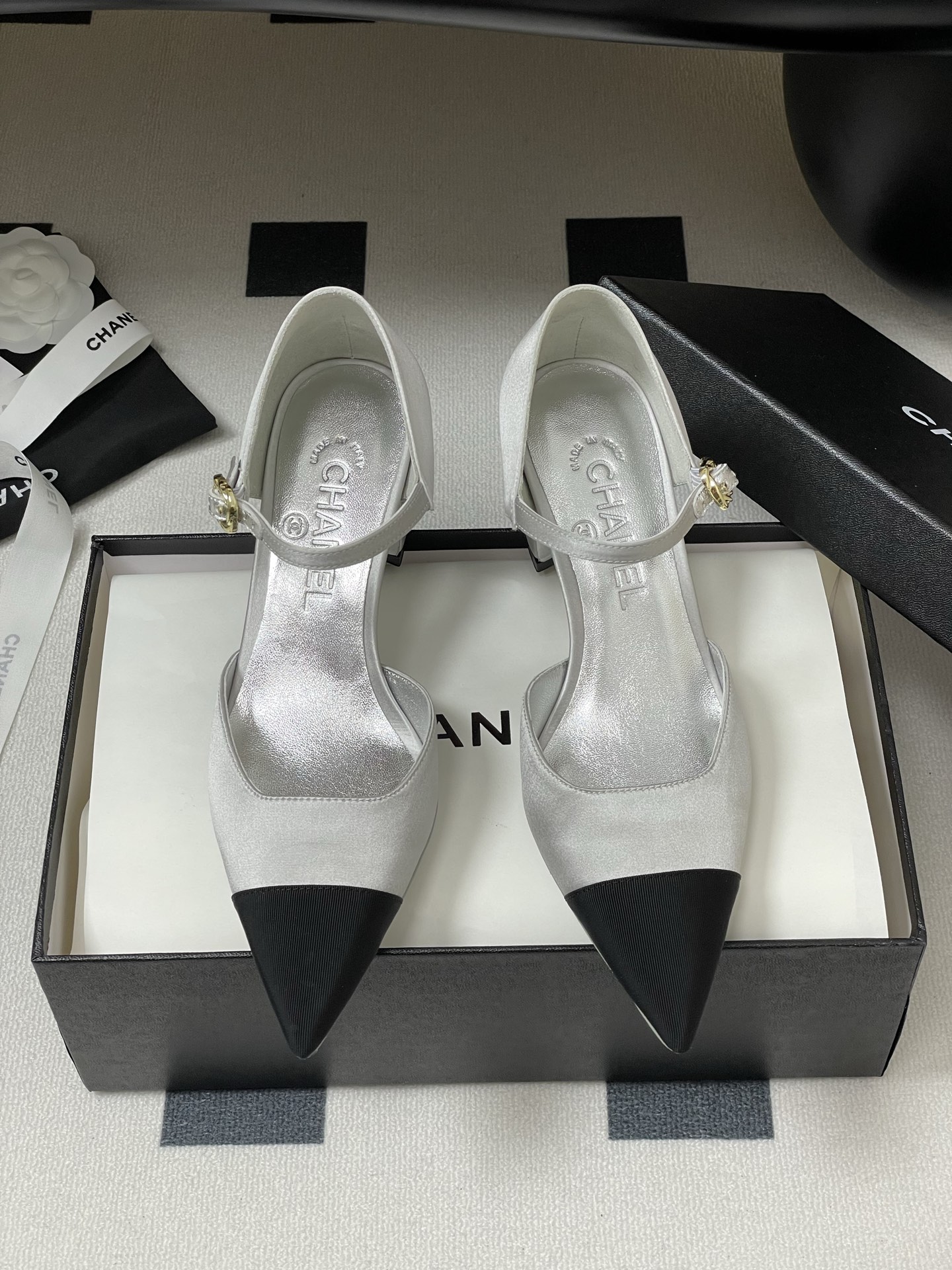 這款鞋子是AAAAA 1:1 質量(非常棒). 使用了和原版一模一樣的材料. 商標部分也保持了和香奈兒/Chanel一樣. 圖片拍攝是實物鞋子拍攝, 您所收到的實物保證和我們圖片一模一樣.