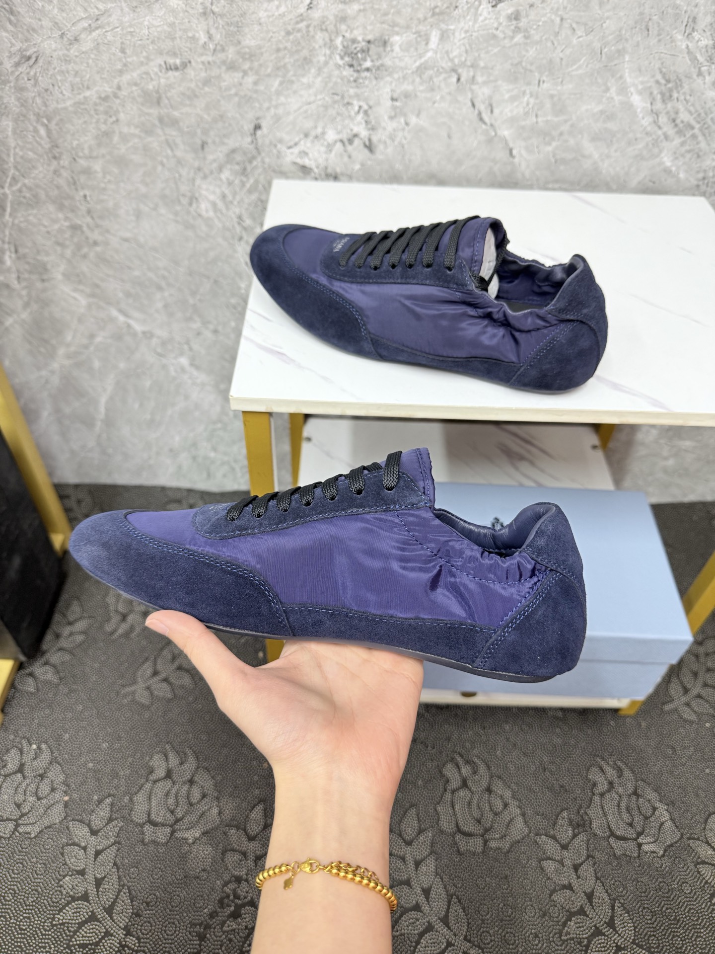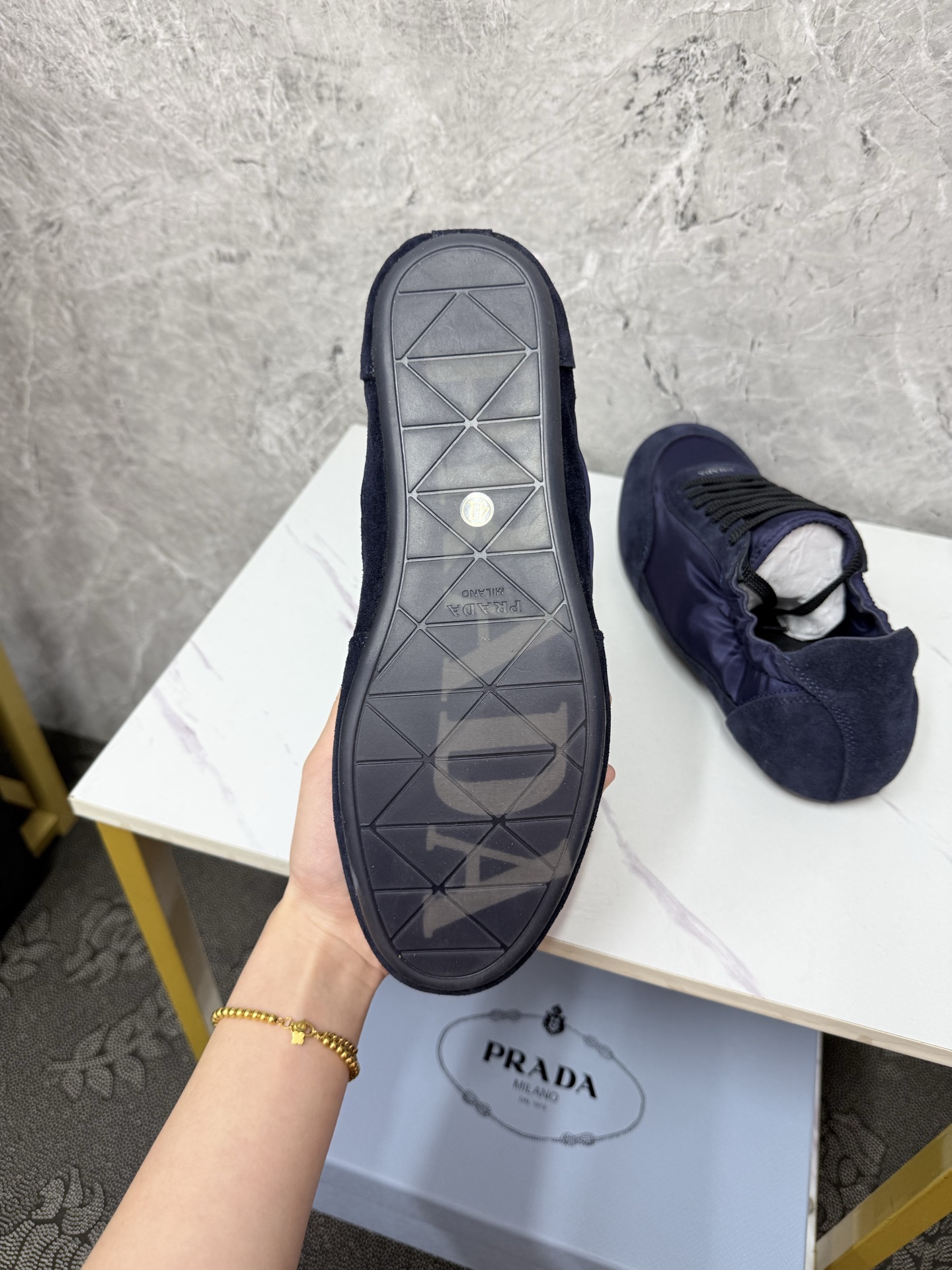 這款鞋子是AAAAA 1:1 質量(非常棒). 使用了和原版一模一樣的材料. 商標部分也保持了和普拉達/Prada一樣. 圖片拍攝是實物鞋子拍攝, 您所收到的實物保證和我們圖片一模一樣.