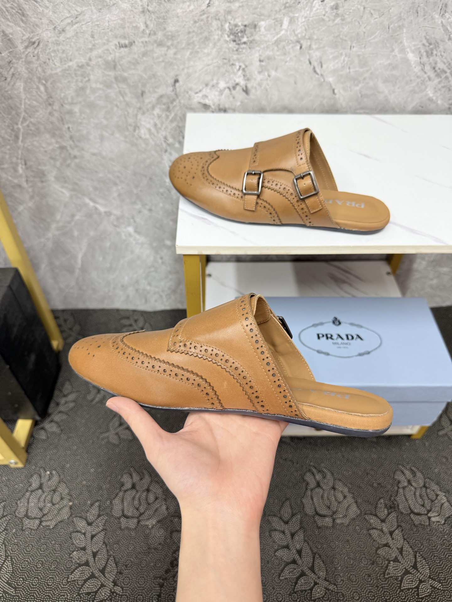 這款鞋子是AAAAA 1:1 質量(非常棒). 使用了和原版一模一樣的材料. 商標部分也保持了和普拉達/Prada一樣. 圖片拍攝是實物鞋子拍攝, 您所收到的實物保證和我們圖片一模一樣.