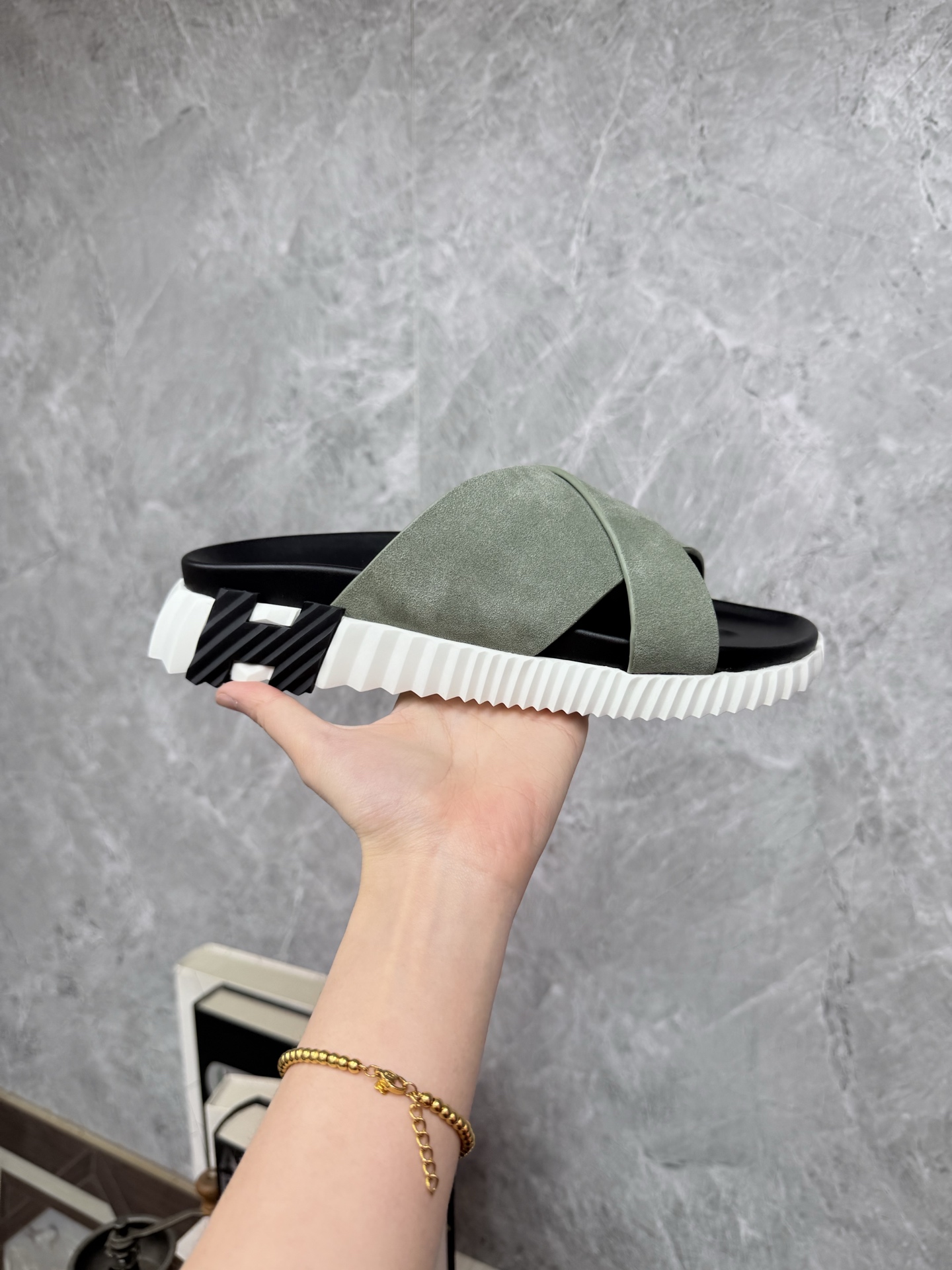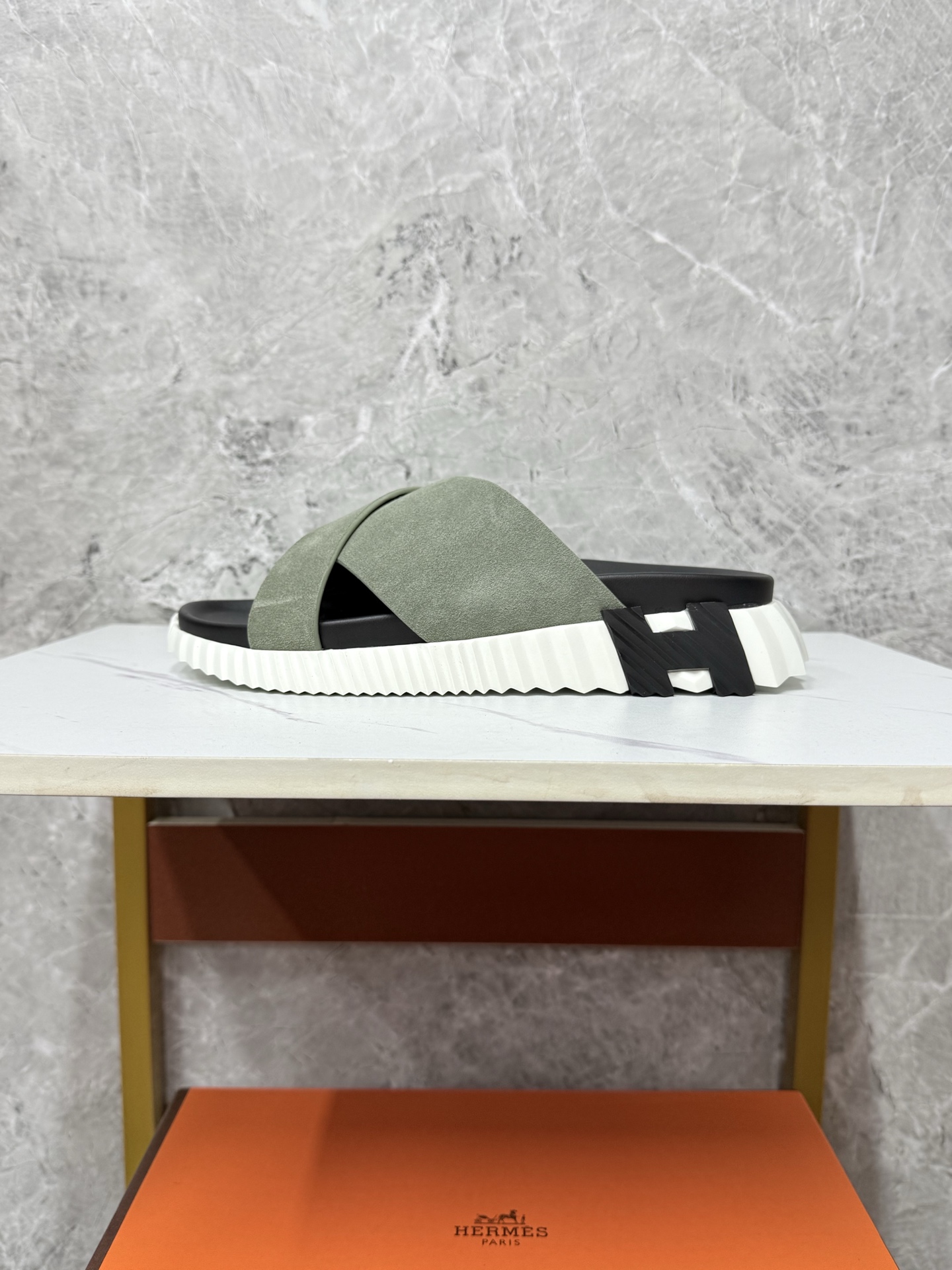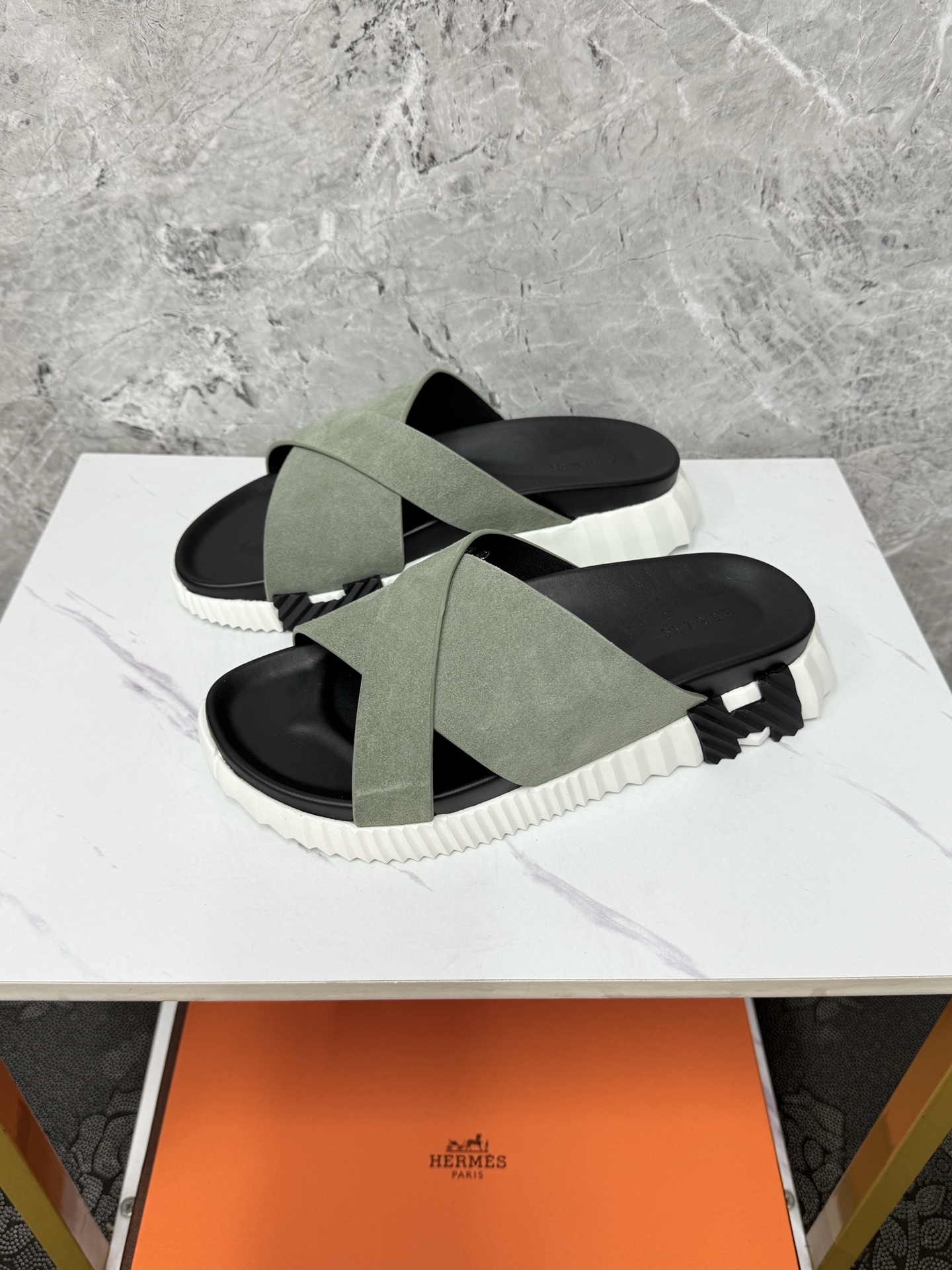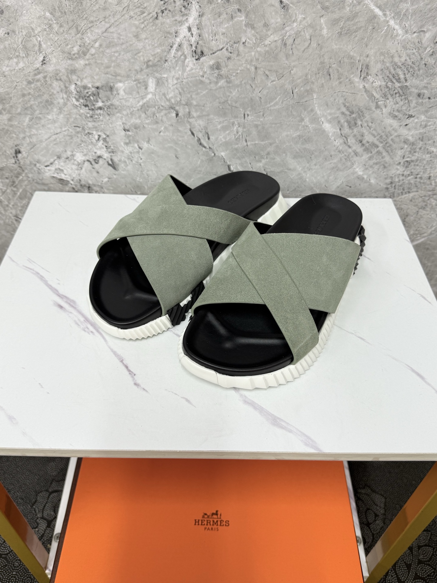 這款鞋子是AAAAA 1:1 質量(非常棒). 使用了和原版一模一樣的材料. 商標部分也保持了和愛馬仕/Hermes一樣. 圖片拍攝是實物鞋子拍攝, 您所收到的實物保證和我們圖片一模一樣.
