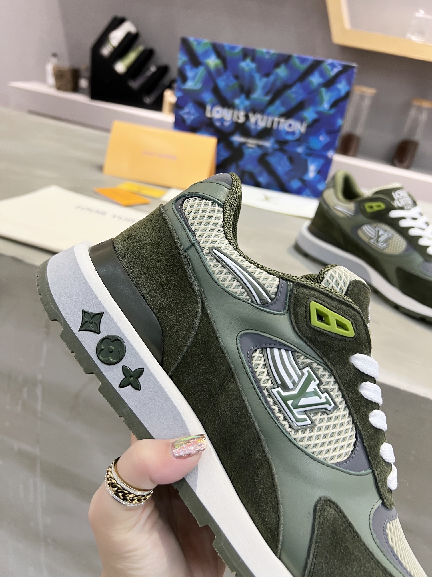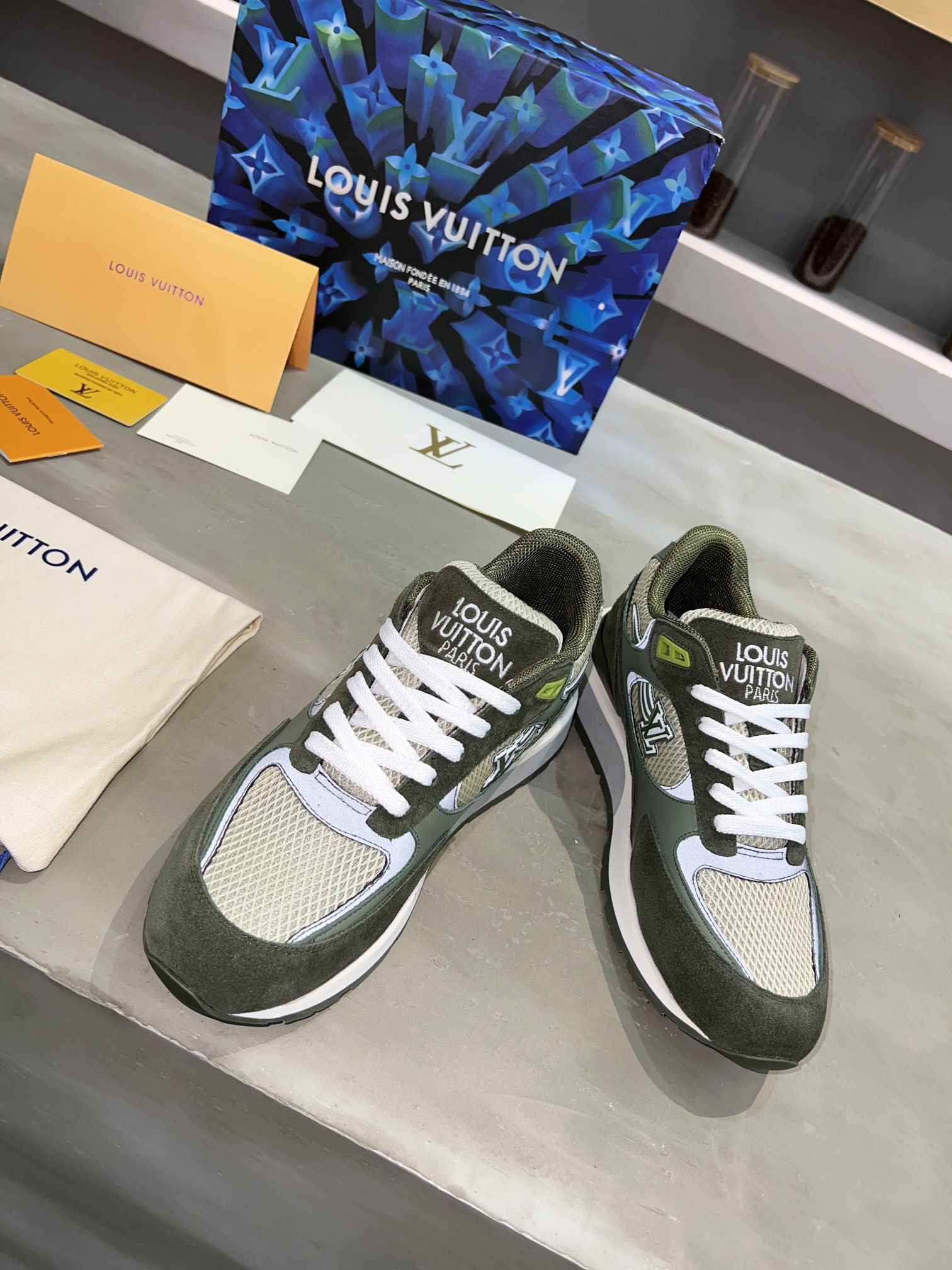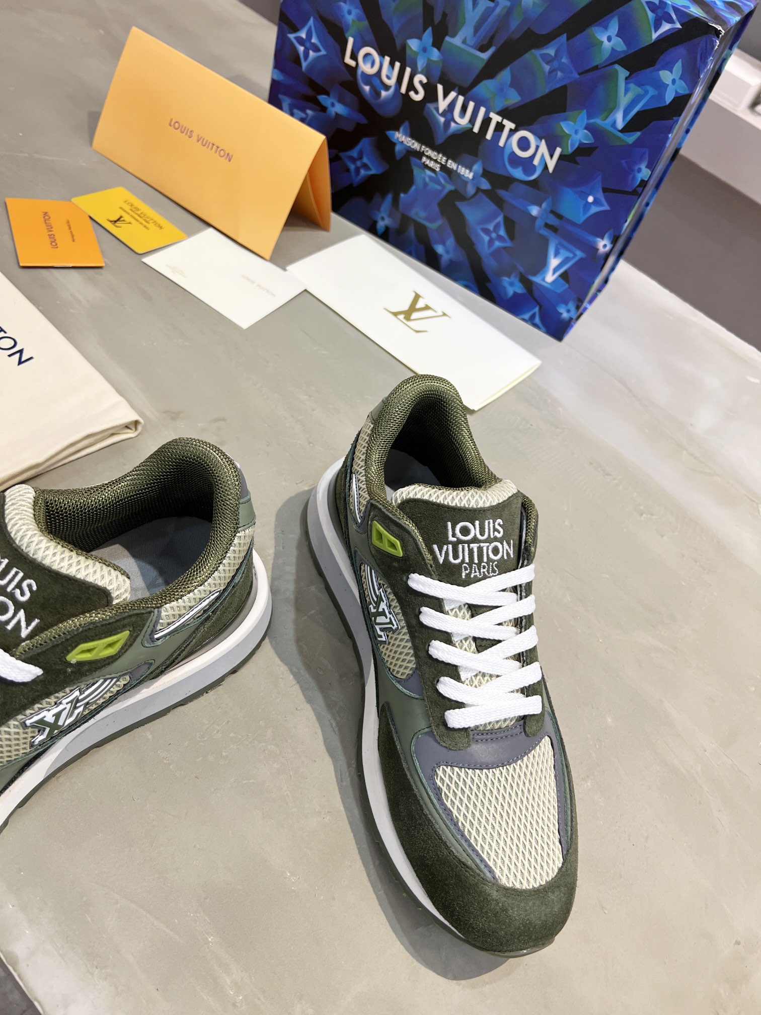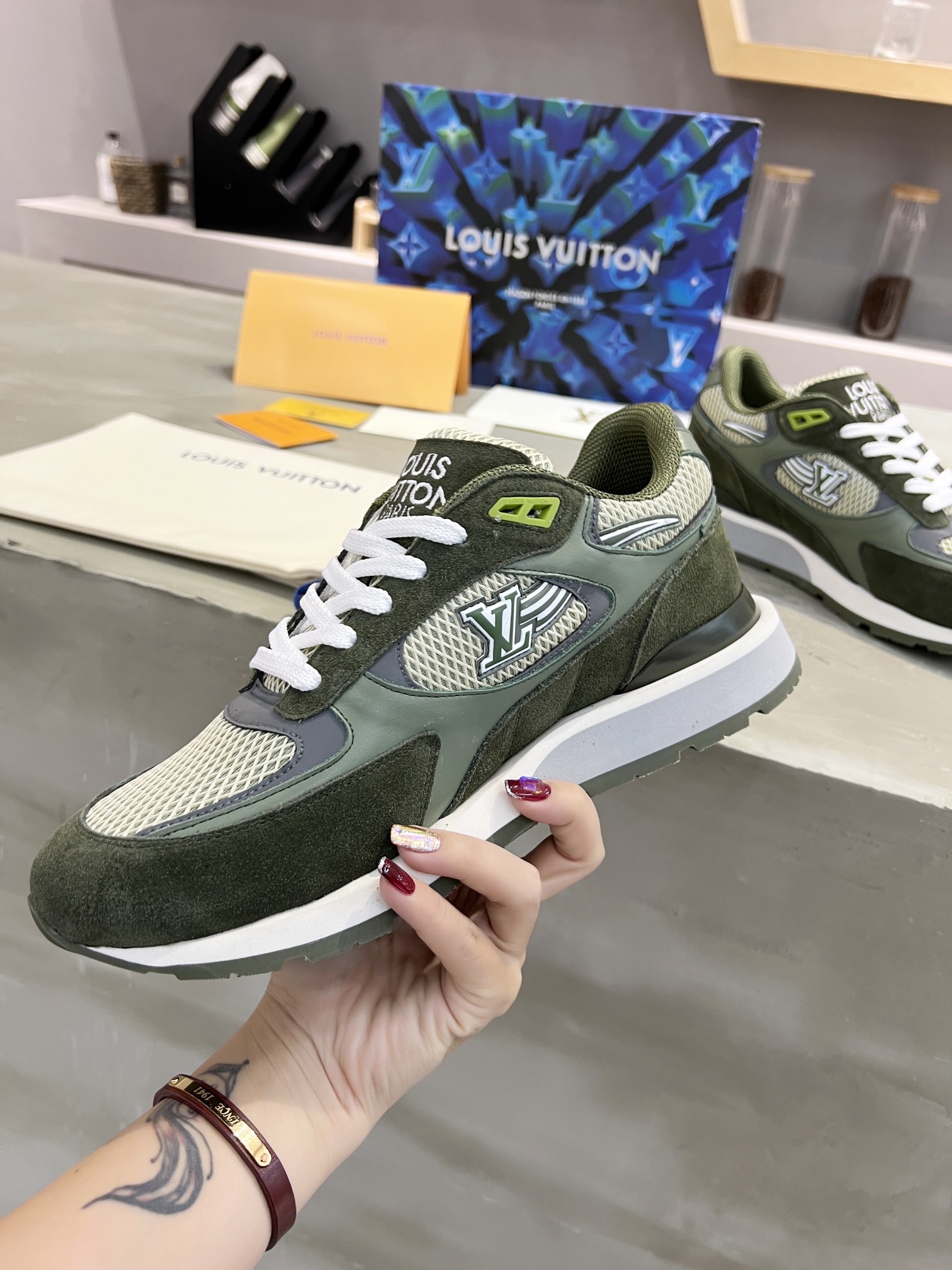 這款鞋子是AAAAA 1:1 質量(非常棒). 使用了和原版一模一樣的材料. 商標部分也保持了和路易威登/Louis Vuitton一樣. 圖片拍攝是實物鞋子拍攝, 您所收到的實物保證和我們圖片一模一樣.
