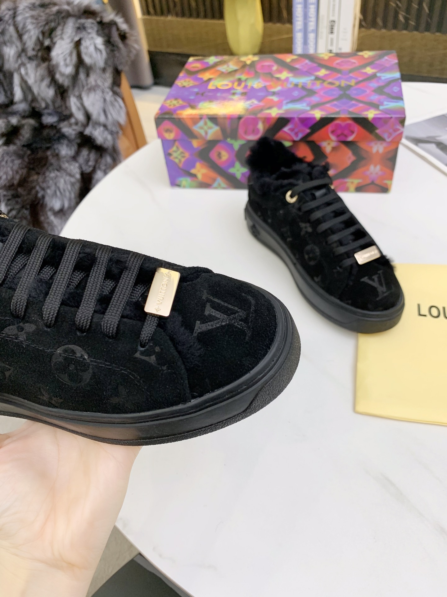 這款鞋子是AAAAA 1:1 質量(非常棒). 使用了和原版一模一樣的材料. 商標部分也保持了和路易威登/Louis Vuitton一樣. 圖片拍攝是實物鞋子拍攝, 您所收到的實物保證和我們圖片一模一樣.