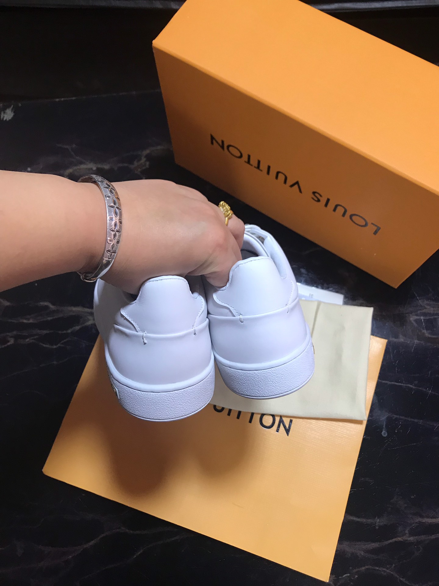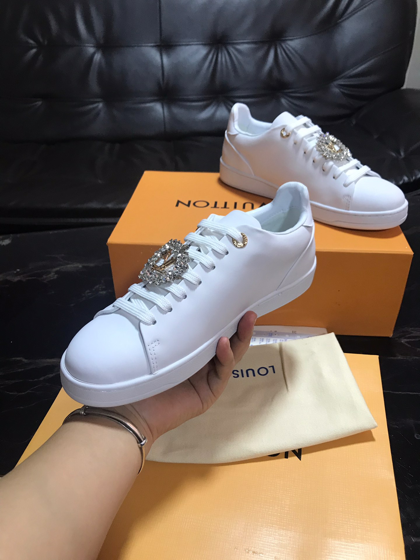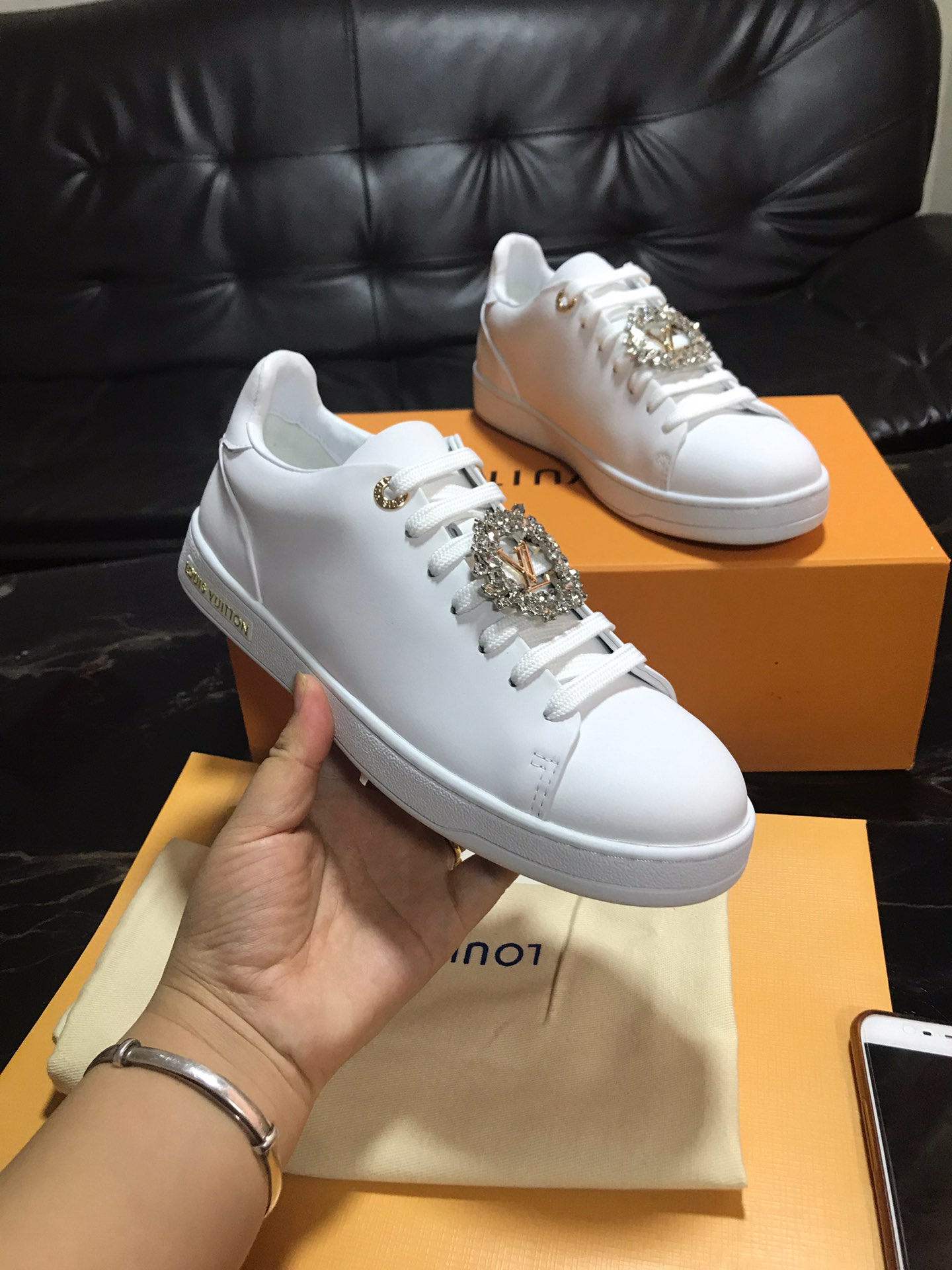 這款鞋子是AAAAA 1:1 質量(非常棒). 使用了和原版一模一樣的材料. 商標部分也保持了和路易威登/Louis Vuitton一樣. 圖片拍攝是實物鞋子拍攝, 您所收到的實物保證和我們圖片一模一樣.